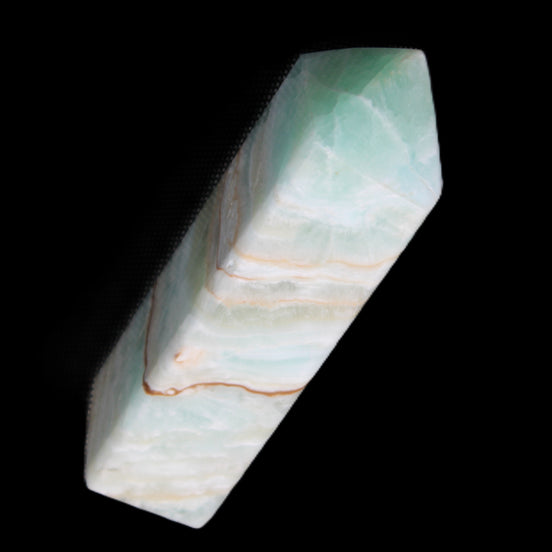 Pistachio Calcite obelisk 122mm 328g in sunlight - Rocks and Things Store Pistachio Calcite obelisk 122mm 328g in sunlight - Rocks and Things Store