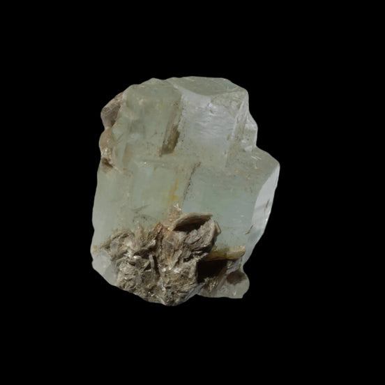 Blue Aquamarine stepped terminated crystal ladder with Muscovite from Afghanistan 26.4g Rocks and Things Blue Aquamarine stepped terminated crystal ladder with Muscovite from Afghanistan 26.4g in sunlight - Rocks and Things Store