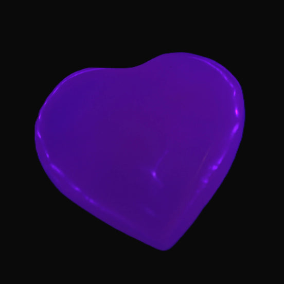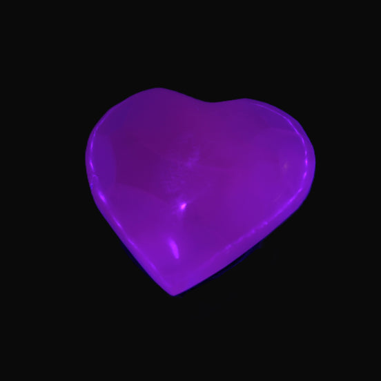 Pink Mangano Calcite hand-carved heart 42-45mm 50-55g Rocks and Things Mangano Calcite hand-carved heart 30-39g in UV light - Rocks and Things Store