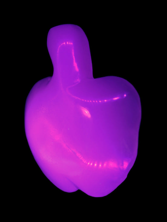 Mangano Calcite hand-carved apple 62-68g Rocks and Things Mangano Calcite apple 62-68g in UV light