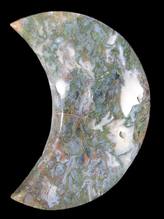 Moss Agate Moon 195*130*25mm 960g in sunshine Moss Agate Moon 195*130*25mm 960g in sunshine