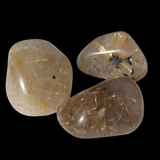 Golden Hair Rutile Quartz 3 tumbled crystals 23-25g in sunshine - Rocks and Things Store Golden Hair Rutile Quartz 3 tumbled crystals 23-25g in sunshine - Rocks and Things Store
