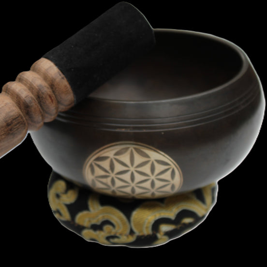 Tibetan cast Meditation Singing Bowl with mallet and silk mat 100mm 418g in sunlight - Rocks and Things Store Tibetan cast Meditation Singing Bowl with mallet and silk mat 100mm 418g in sunlight - Rocks and Things Store