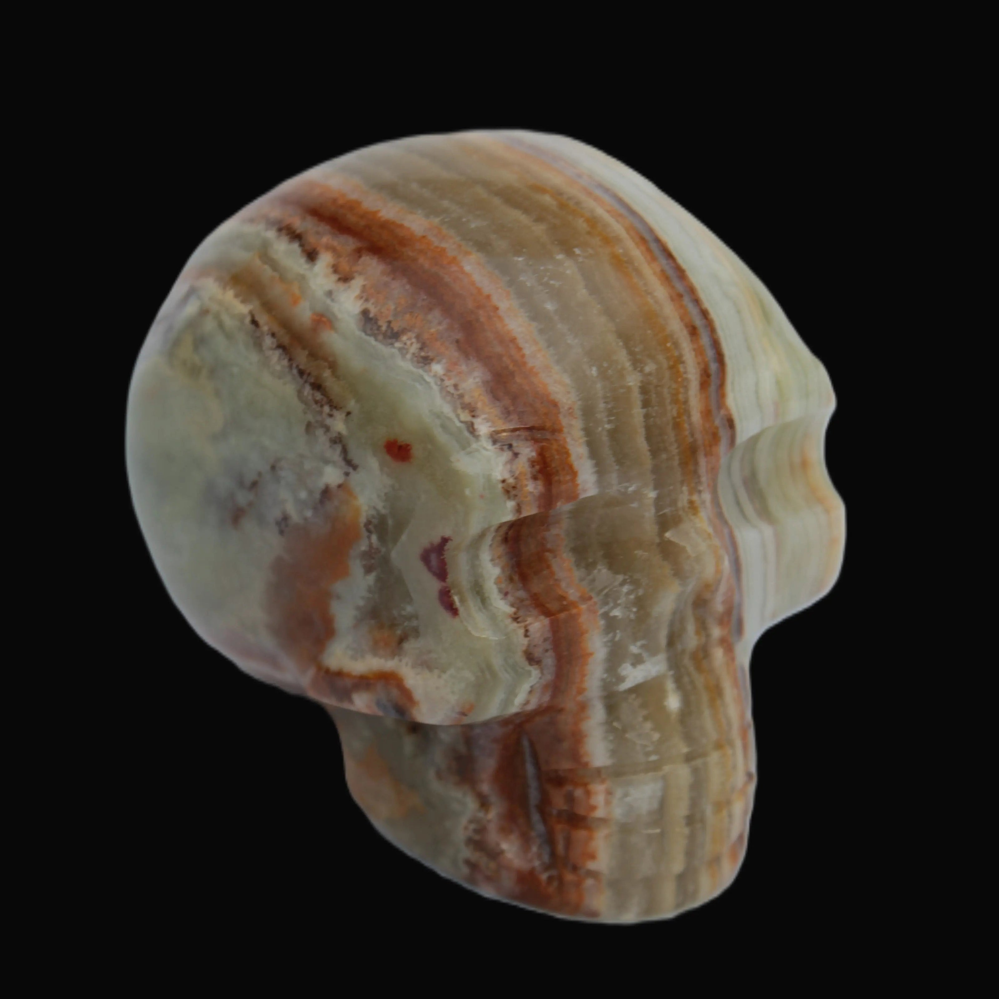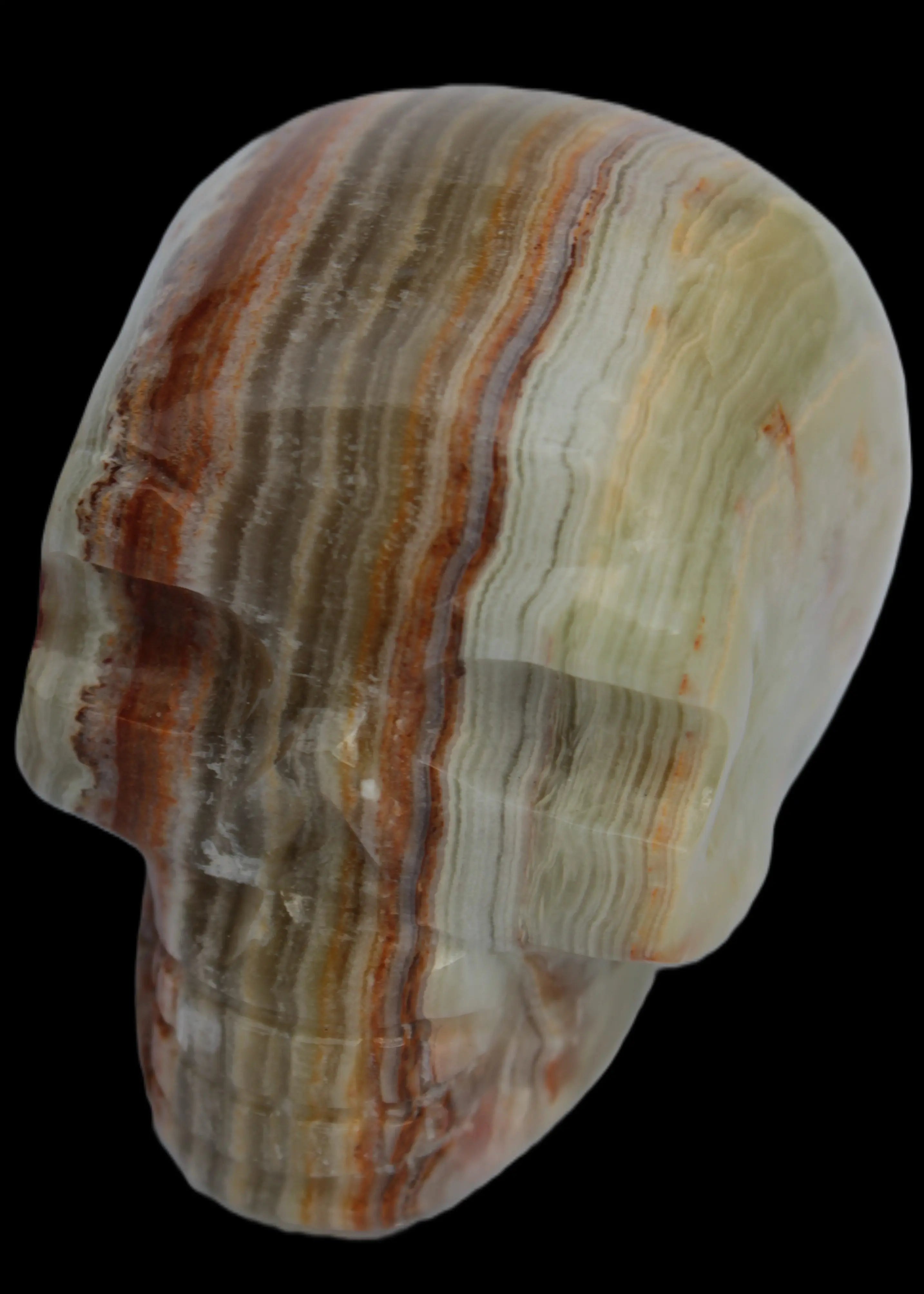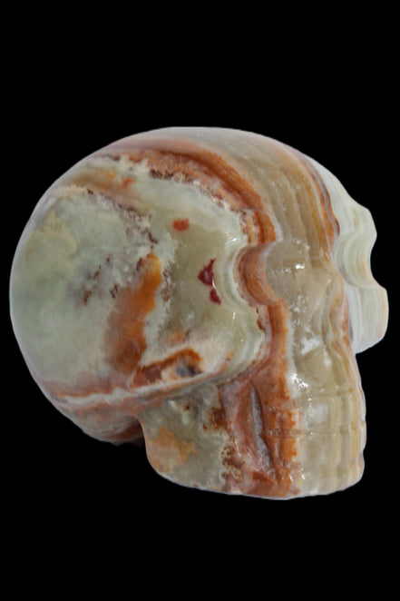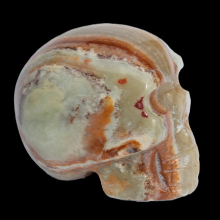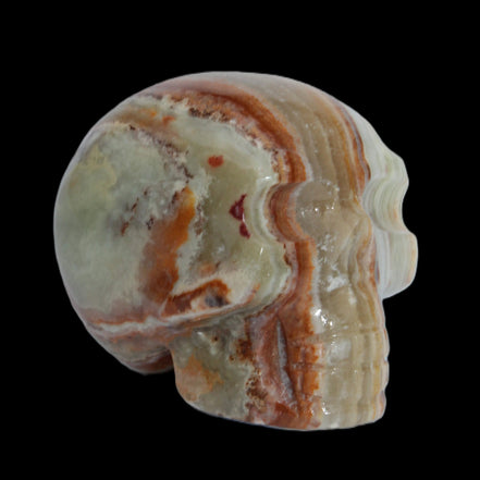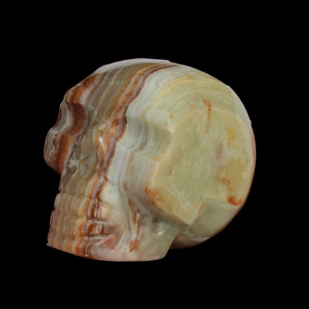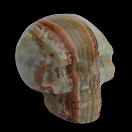 This Afghan Jade colourful skull weighs 182g. It was hand-carved by Lawrence Handicrafts in tightly-banded stone from Afghanistan.