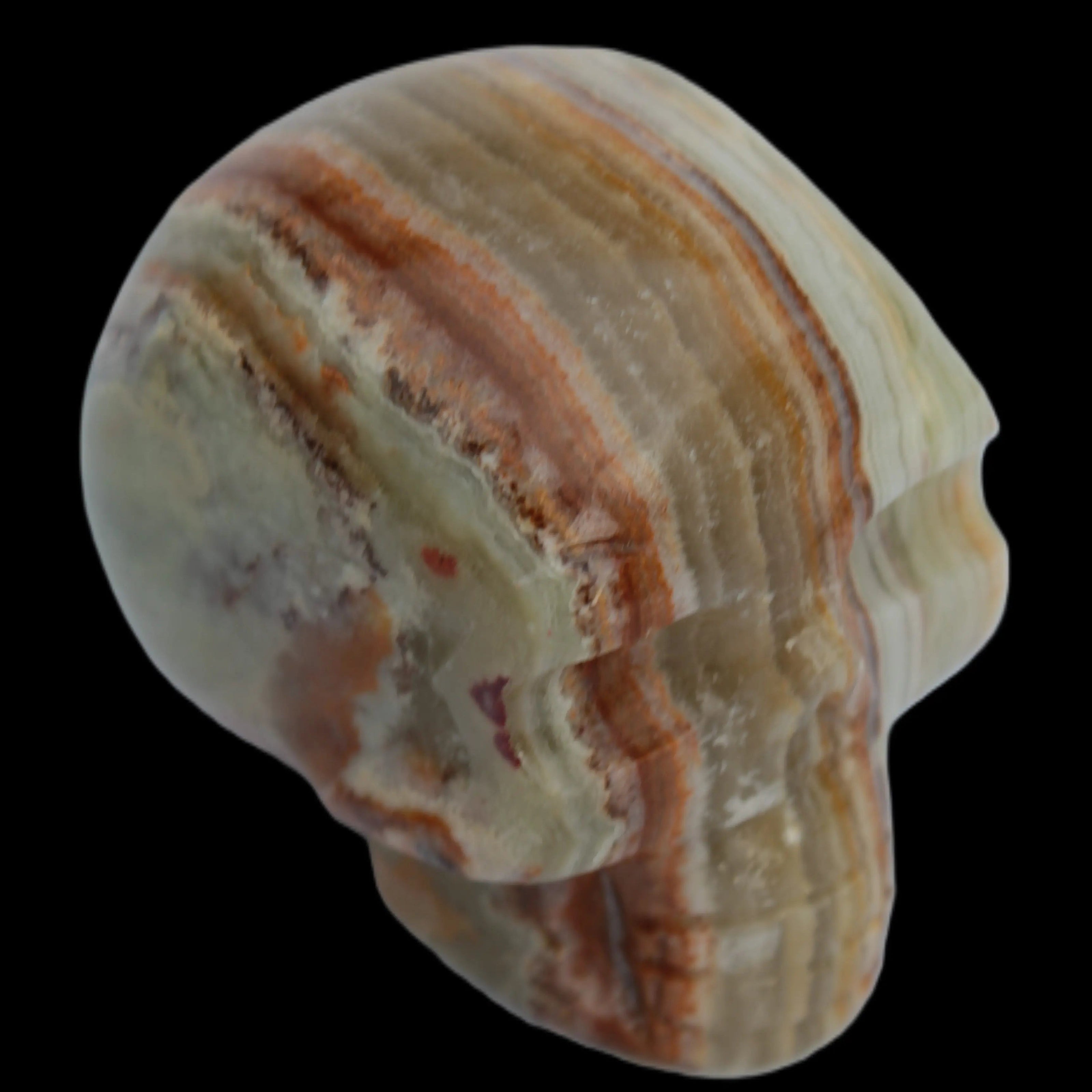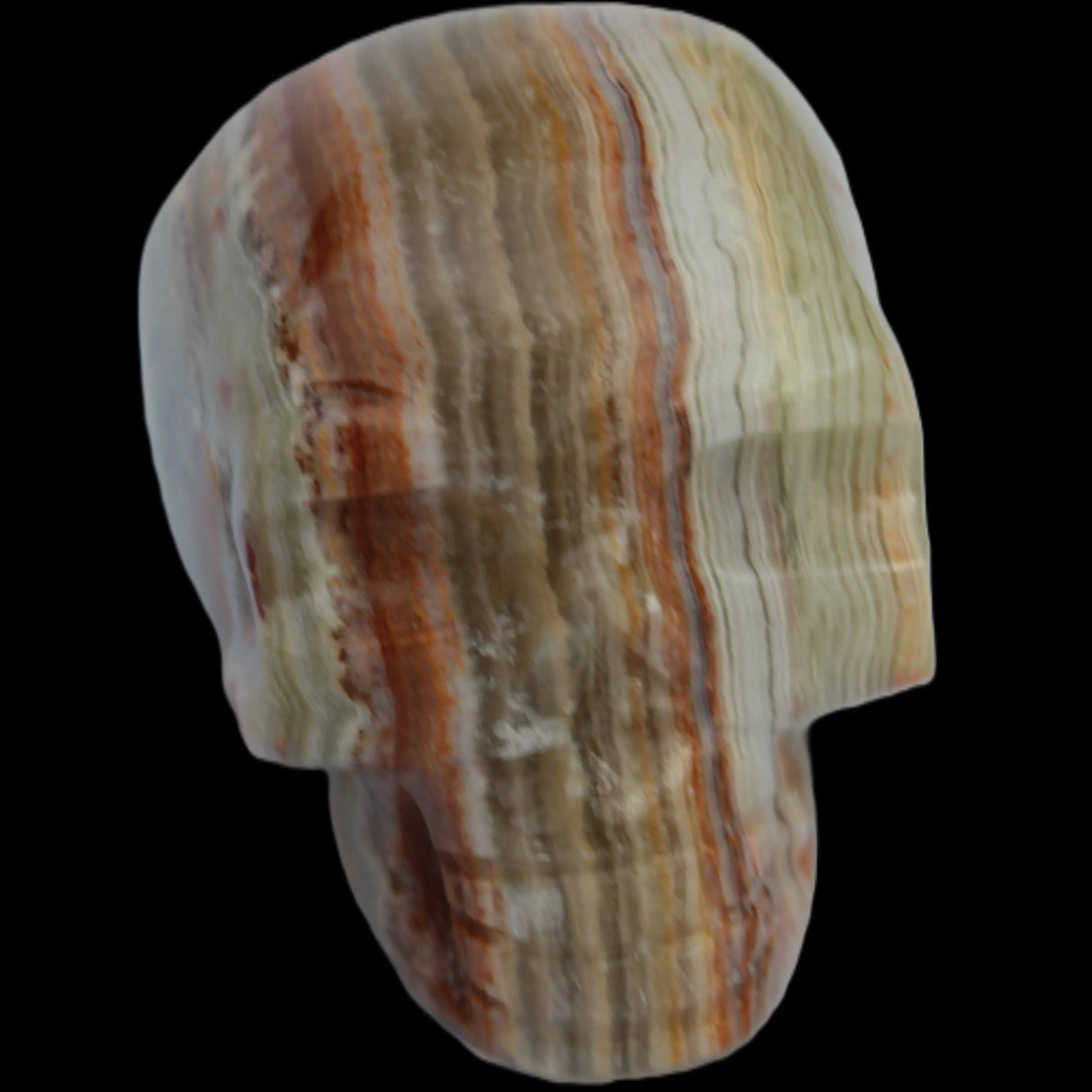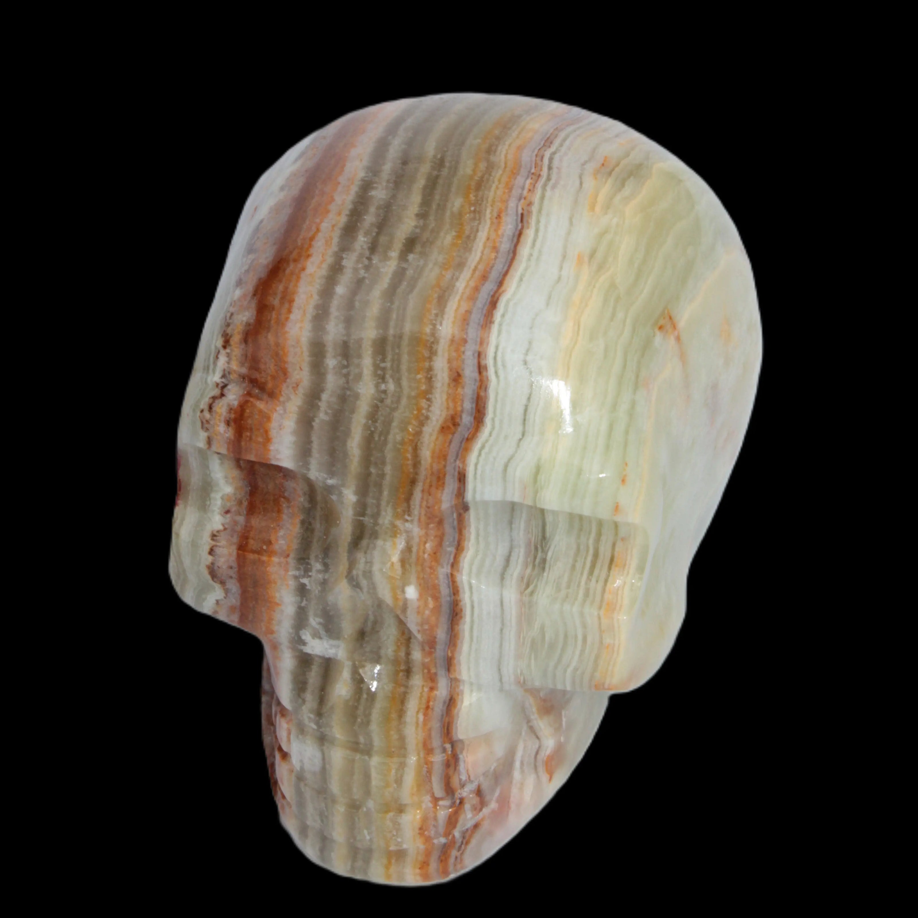 This Afghan Jade colourful skull weighs 182g. It was hand-carved by Lawrence Handicrafts in tightly-banded stone from Afghanistan.