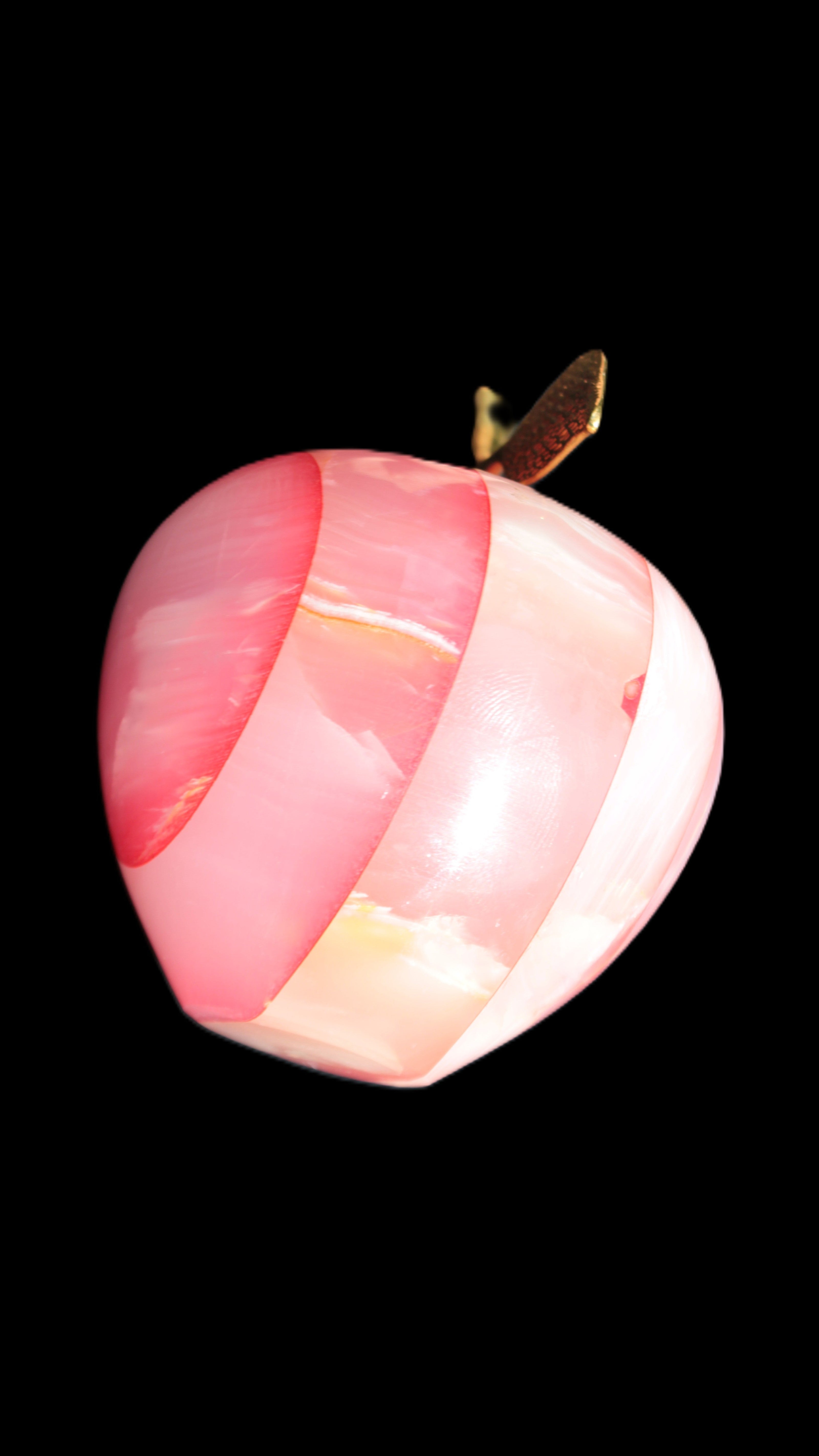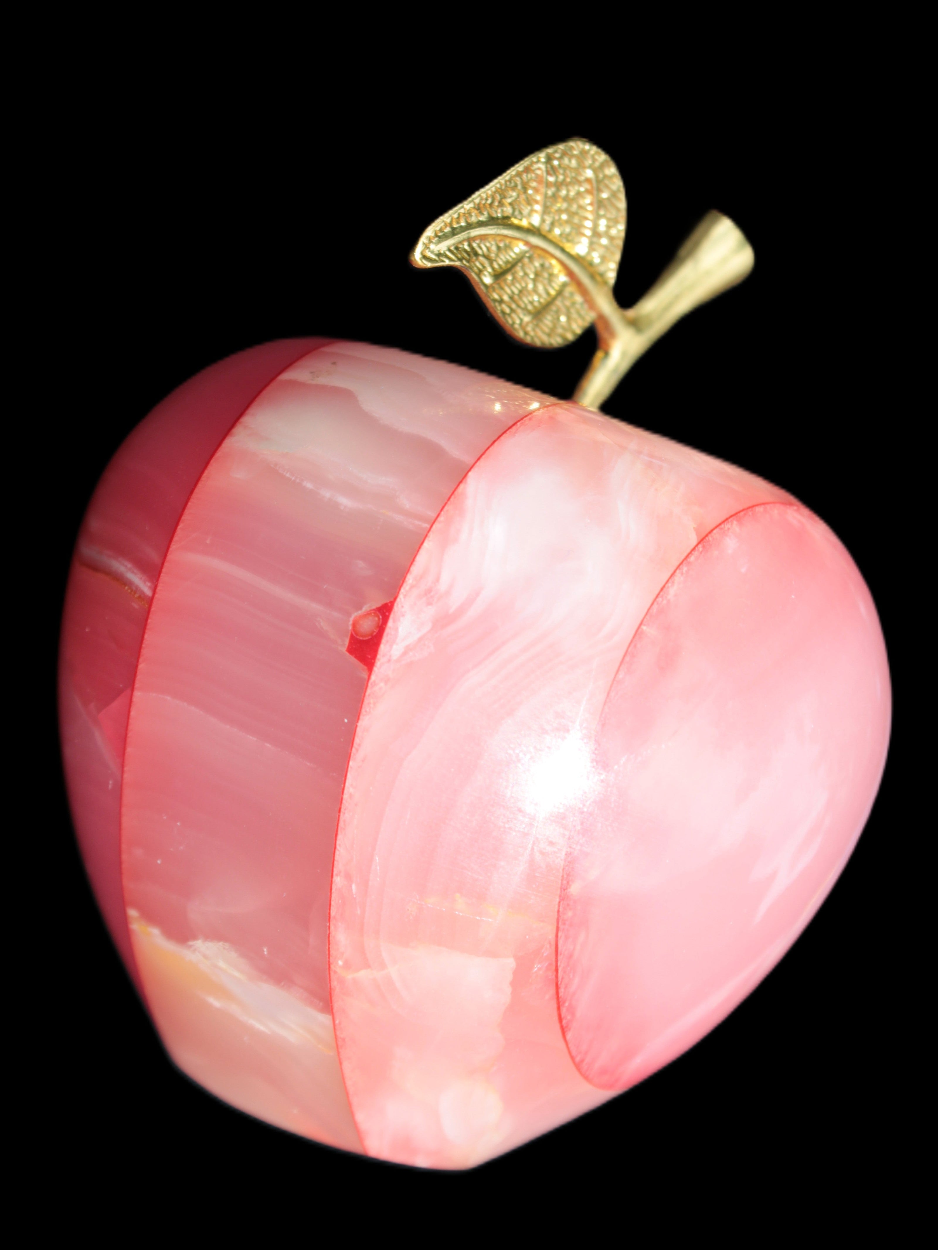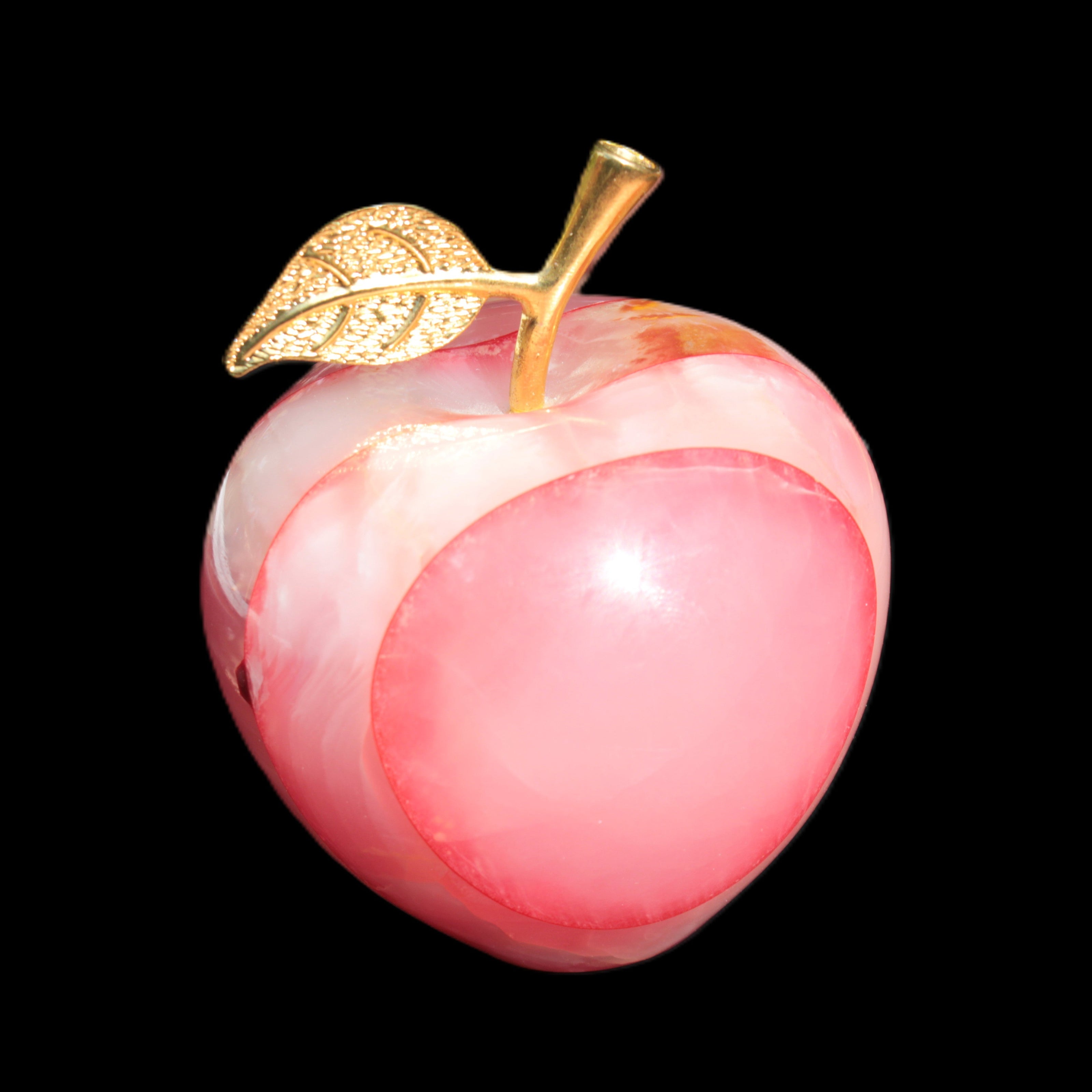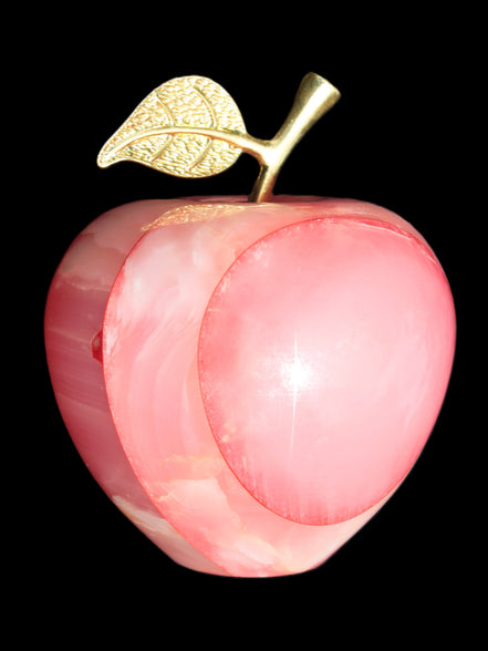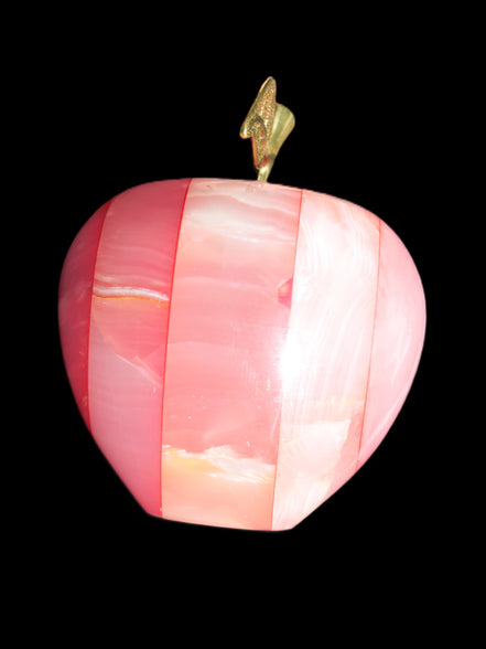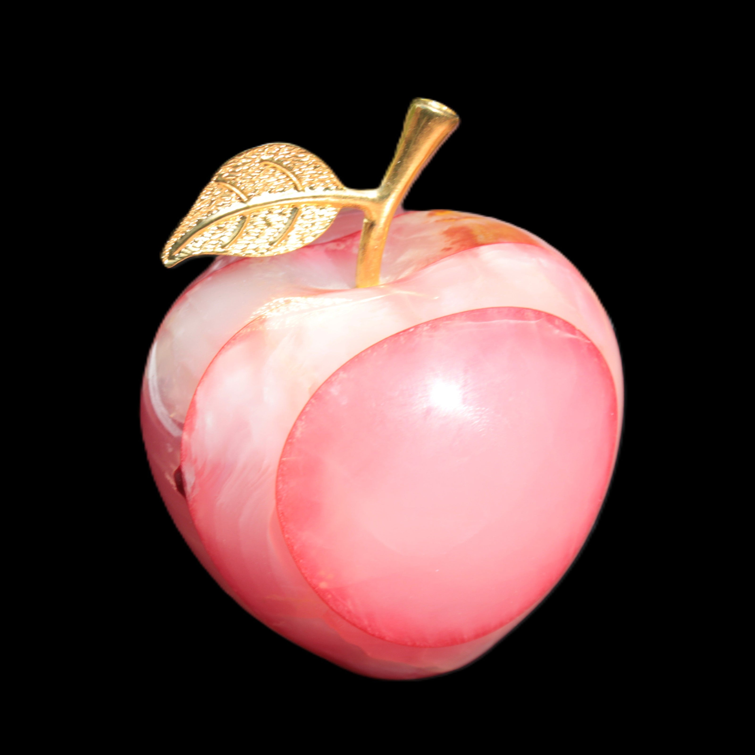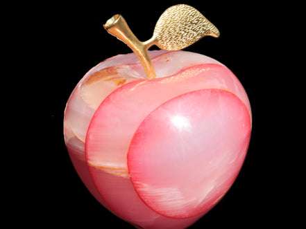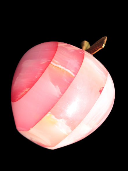 This Afghan Jade Onyx hand-carved Apple 71*85mm weighs 559g. It has been sculpted from the translucent Serpentine stone found in Pakistan. This stone is often referred to as Onyx, even though it is not agate. Our partner in Karachi used glued and dyed slices of this stone to carefully style this beautiful stone apple.