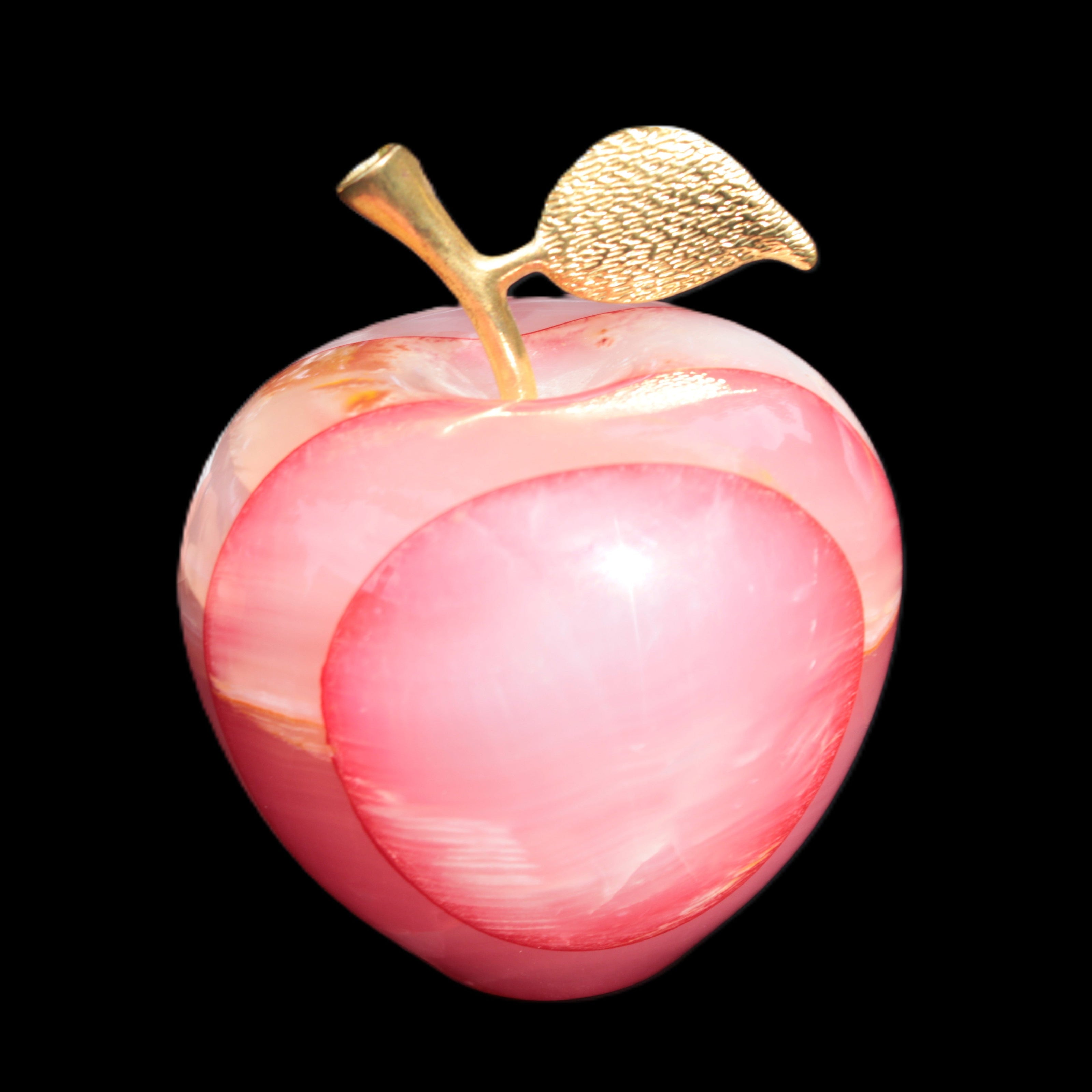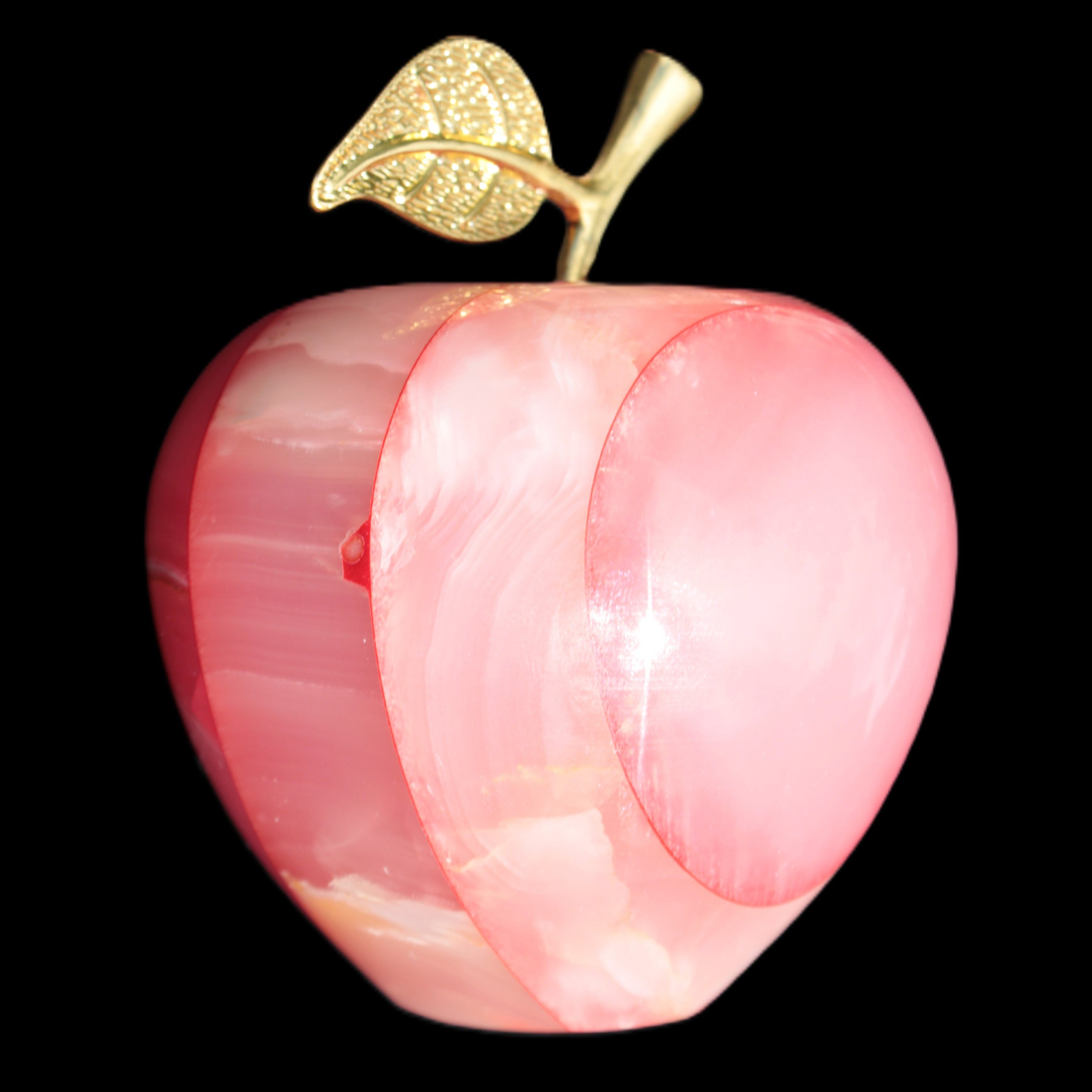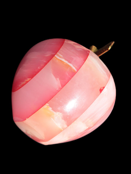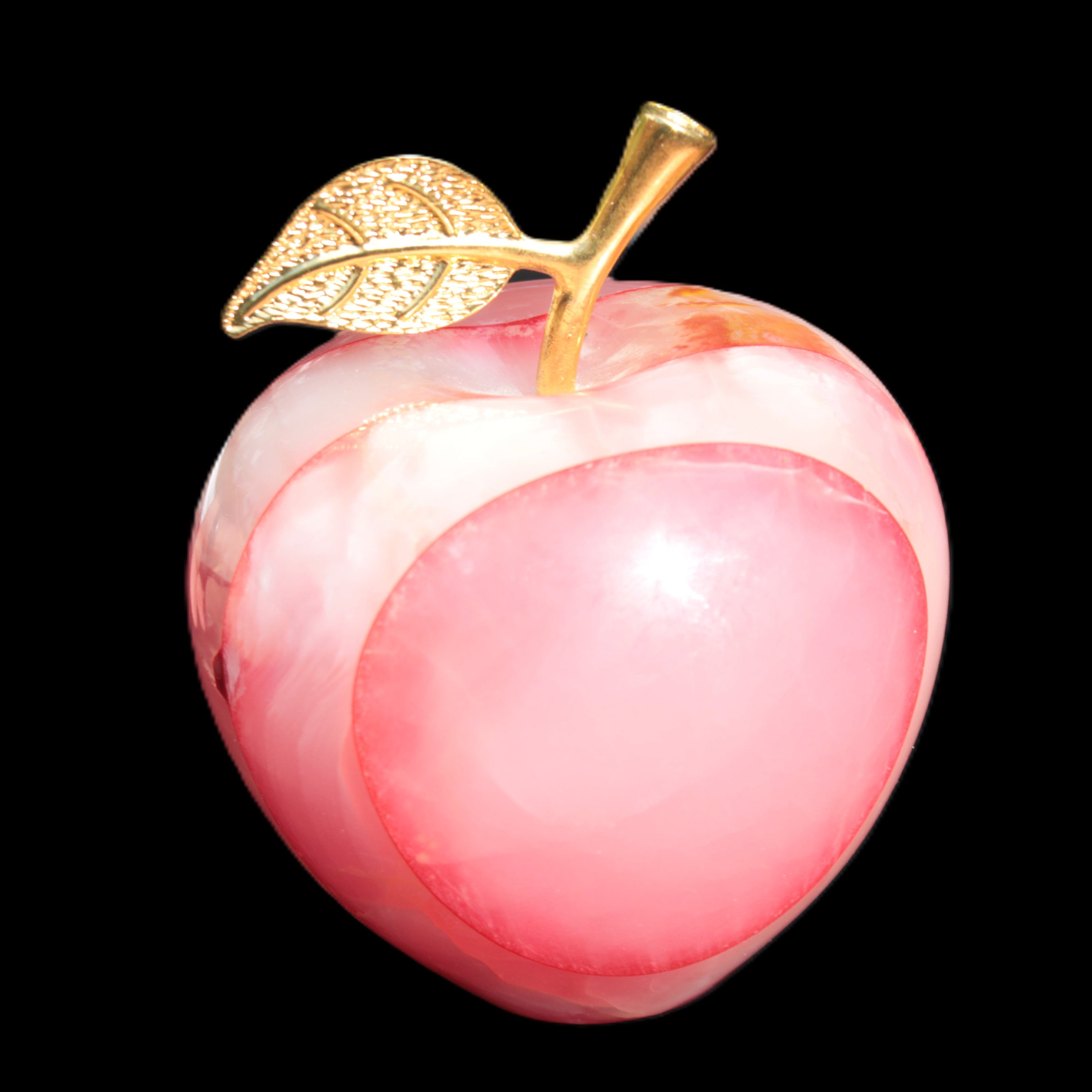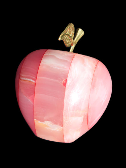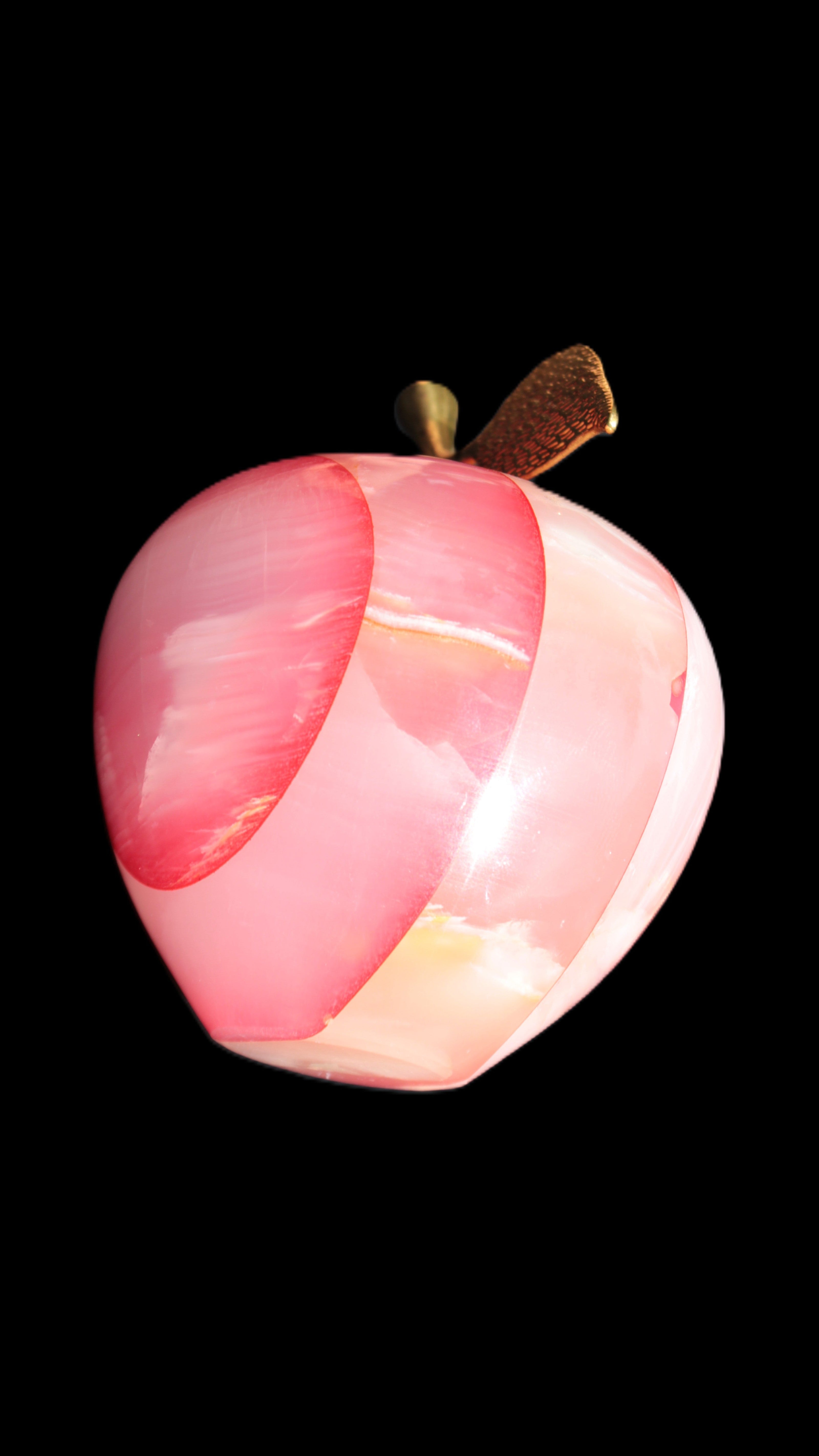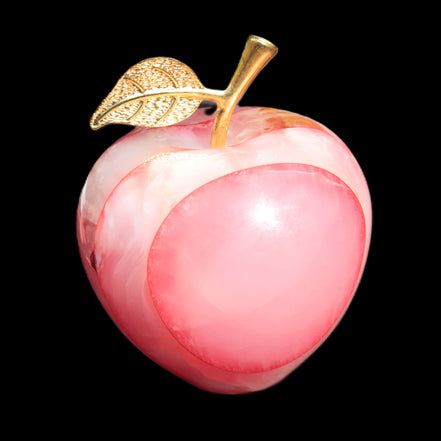 This Afghan Jade Onyx hand-carved Apple 71*85mm weighs 559g. It has been sculpted from the translucent Serpentine stone found in Pakistan. This stone is often referred to as Onyx, even though it is not agate. Our partner in Karachi used glued and dyed slices of this stone to carefully style this beautiful stone apple.