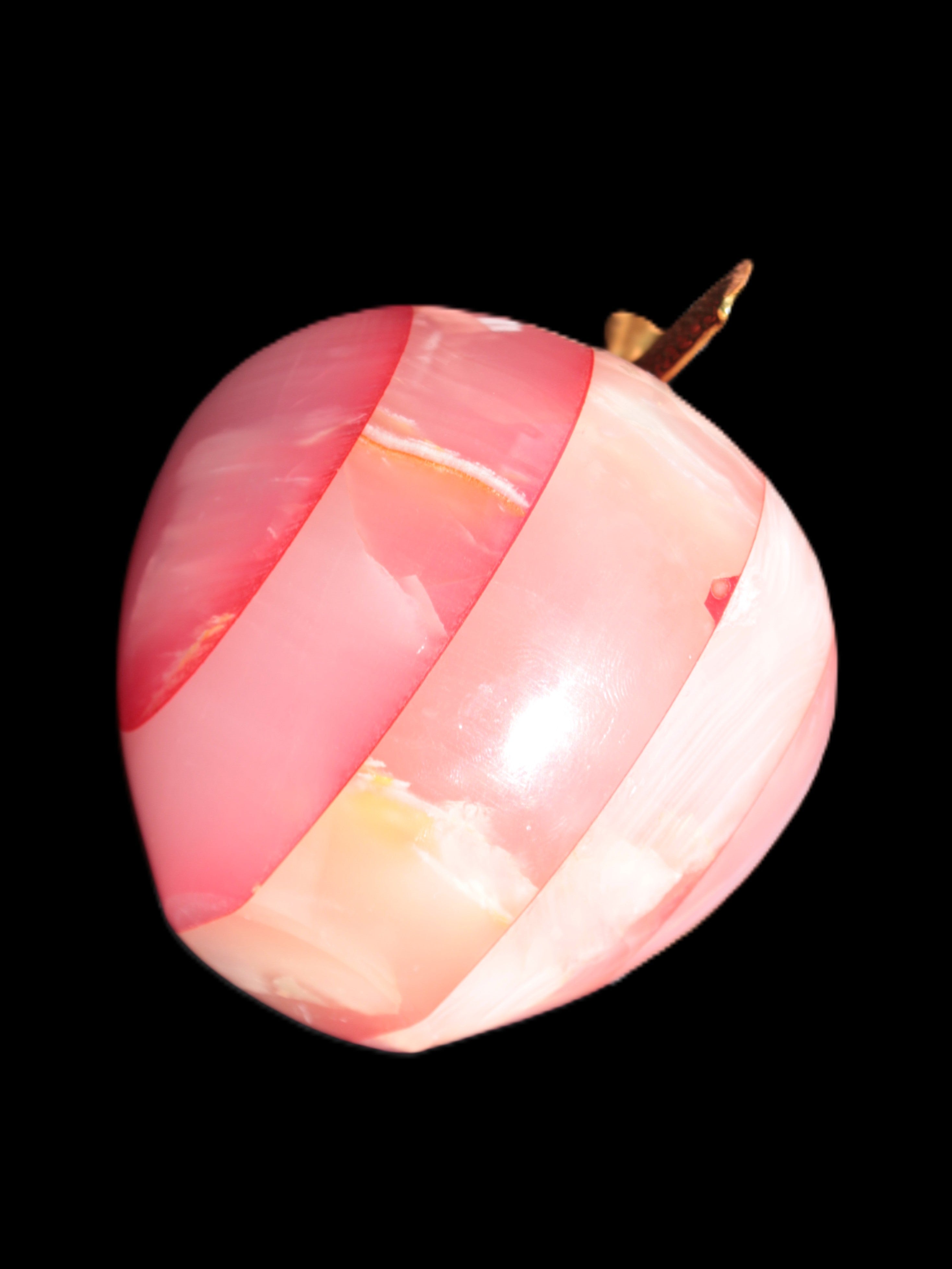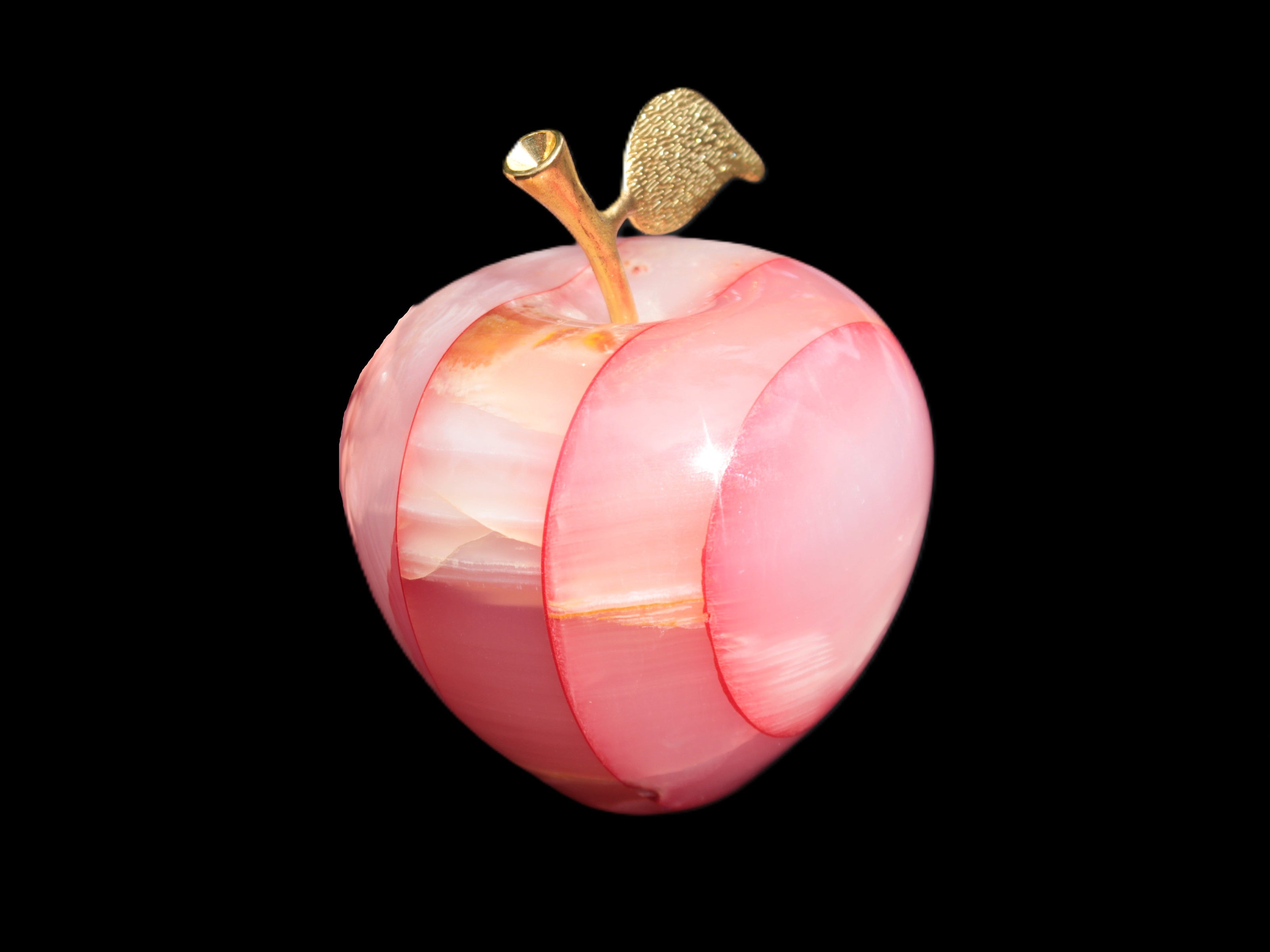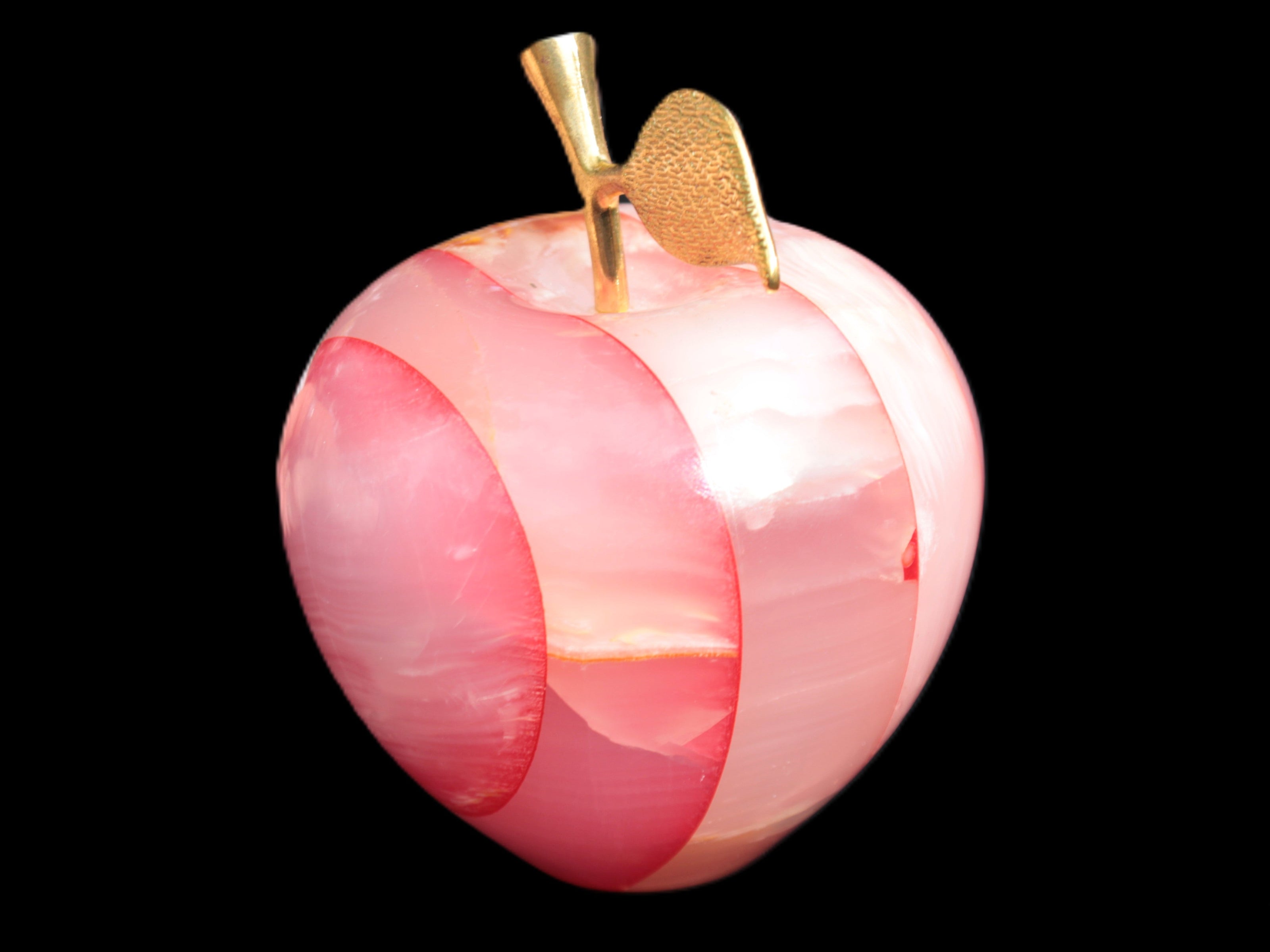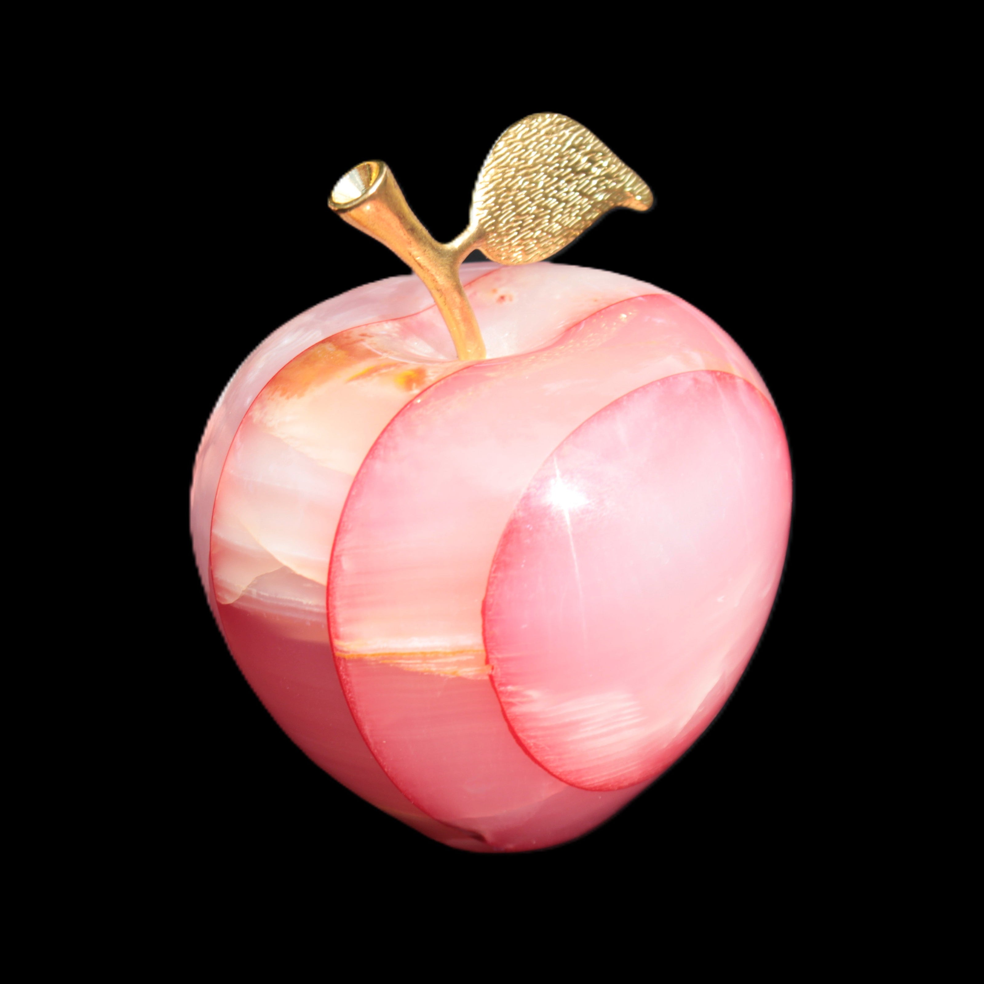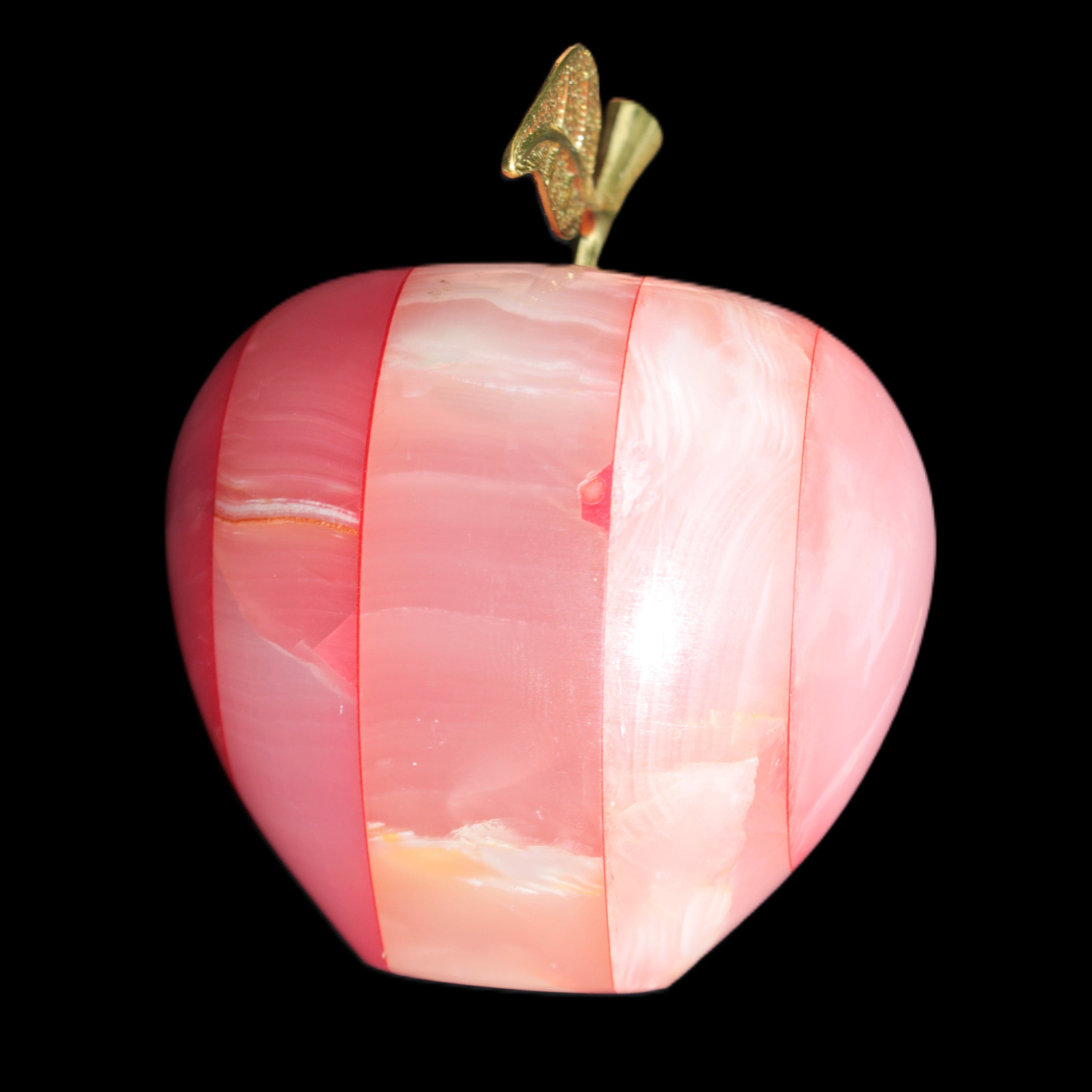 This Afghan Jade Onyx hand-carved Apple 71*85mm weighs 559g. It has been sculpted from the translucent Serpentine stone found in Pakistan. This stone is often referred to as Onyx, even though it is not agate. Our partner in Karachi used glued and dyed slices of this stone to carefully style this beautiful stone apple.
