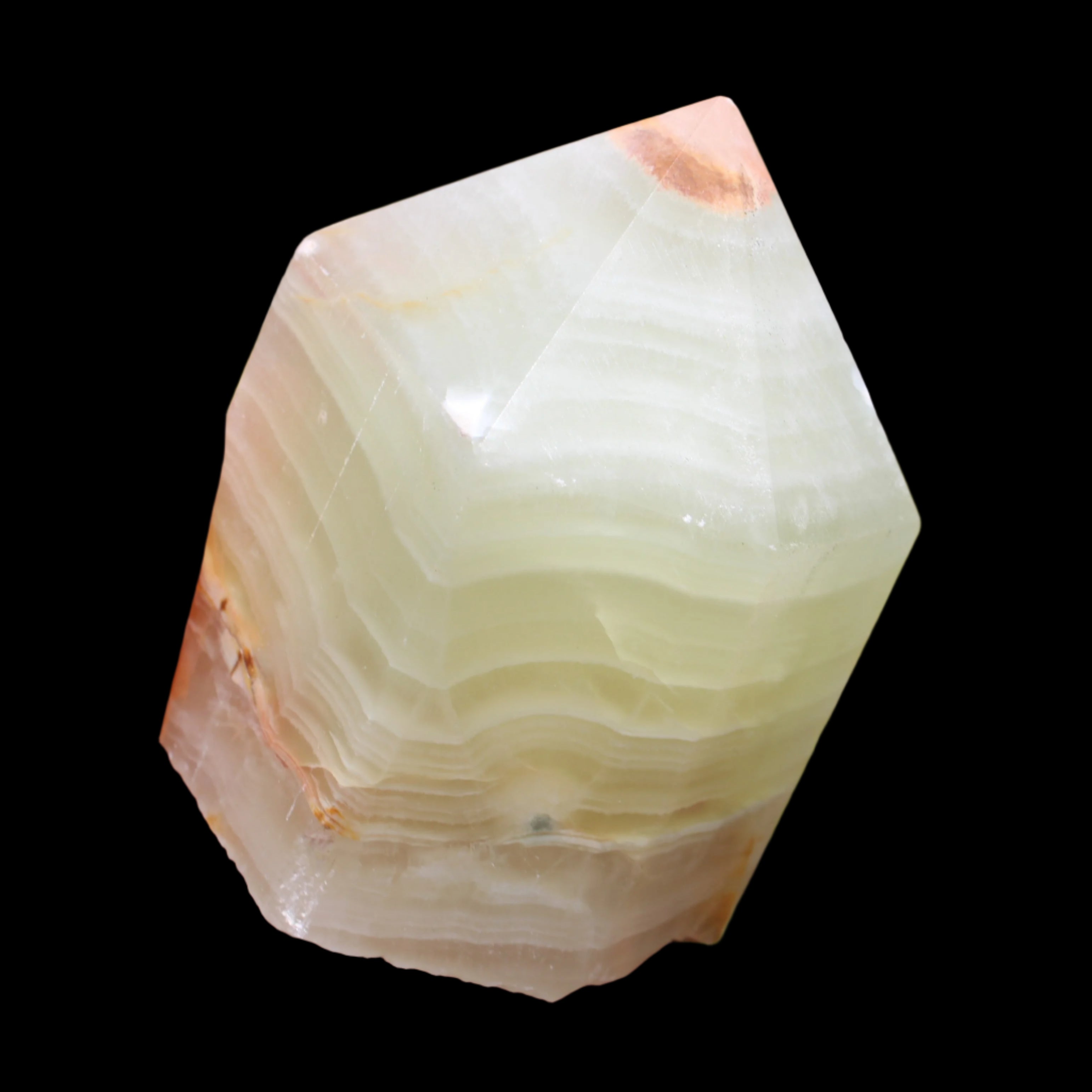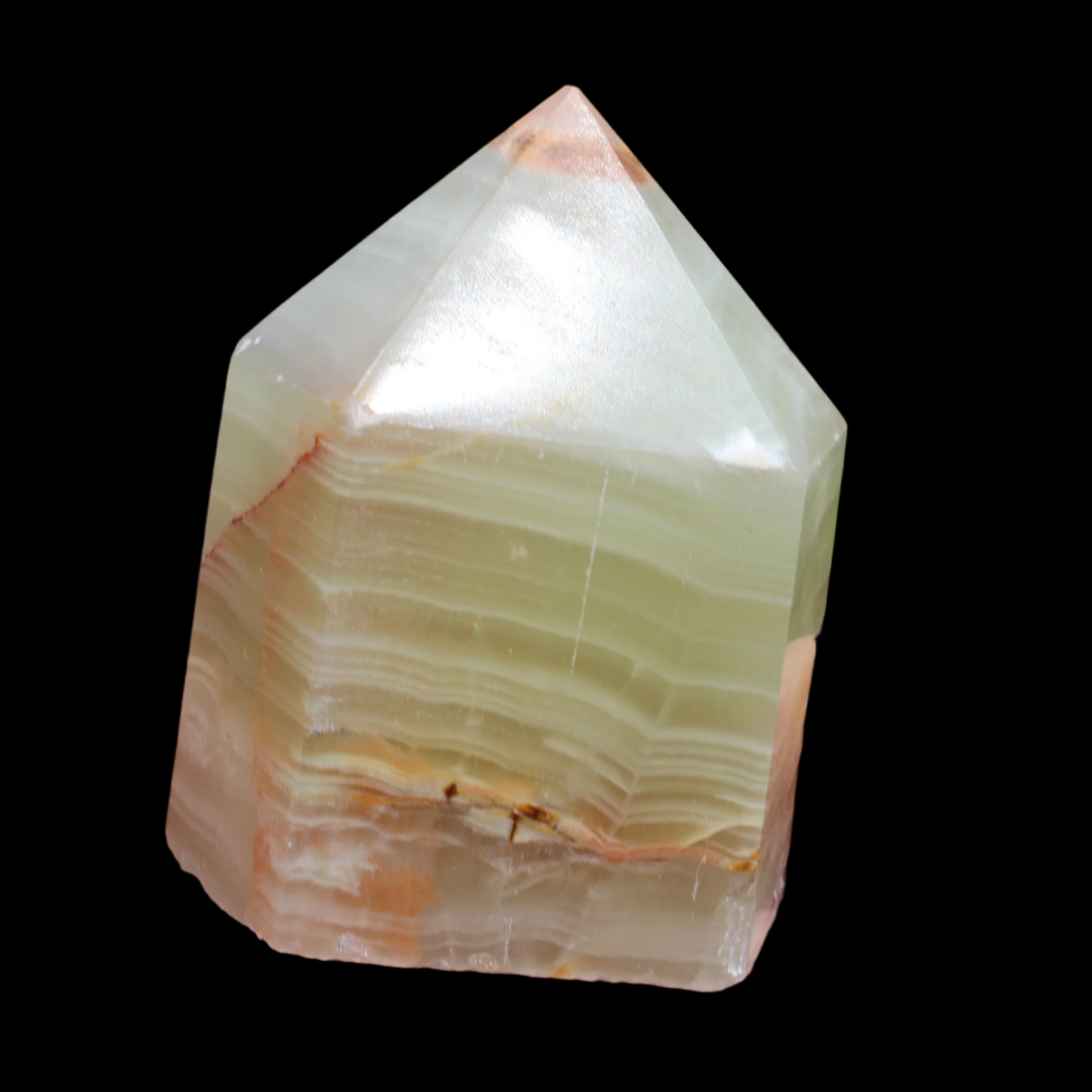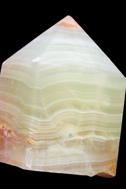 This squat Afghan Jade Serpentine obelisk from Afghanistan weighs 190g. Serpentine means ‘snake stone’. It is the name given to a group of magnesium-based asbestos and silicate minerals found in the larger Serpentinite family of minerals. It is formed through plate tectonics and is found on every continent. Serpentine provides powerful healing energy and is linked to our Kundalini energy. When dormant, Kundalini energy lies coiled at the base of the spine. Its release is transformative. Afghan Jade is a form of Serpentine (Bowenite) named after the country where it is mined. It is translucent to opaque, varying in colour from white, light to dark green and can also occur with yellow, black or pink.