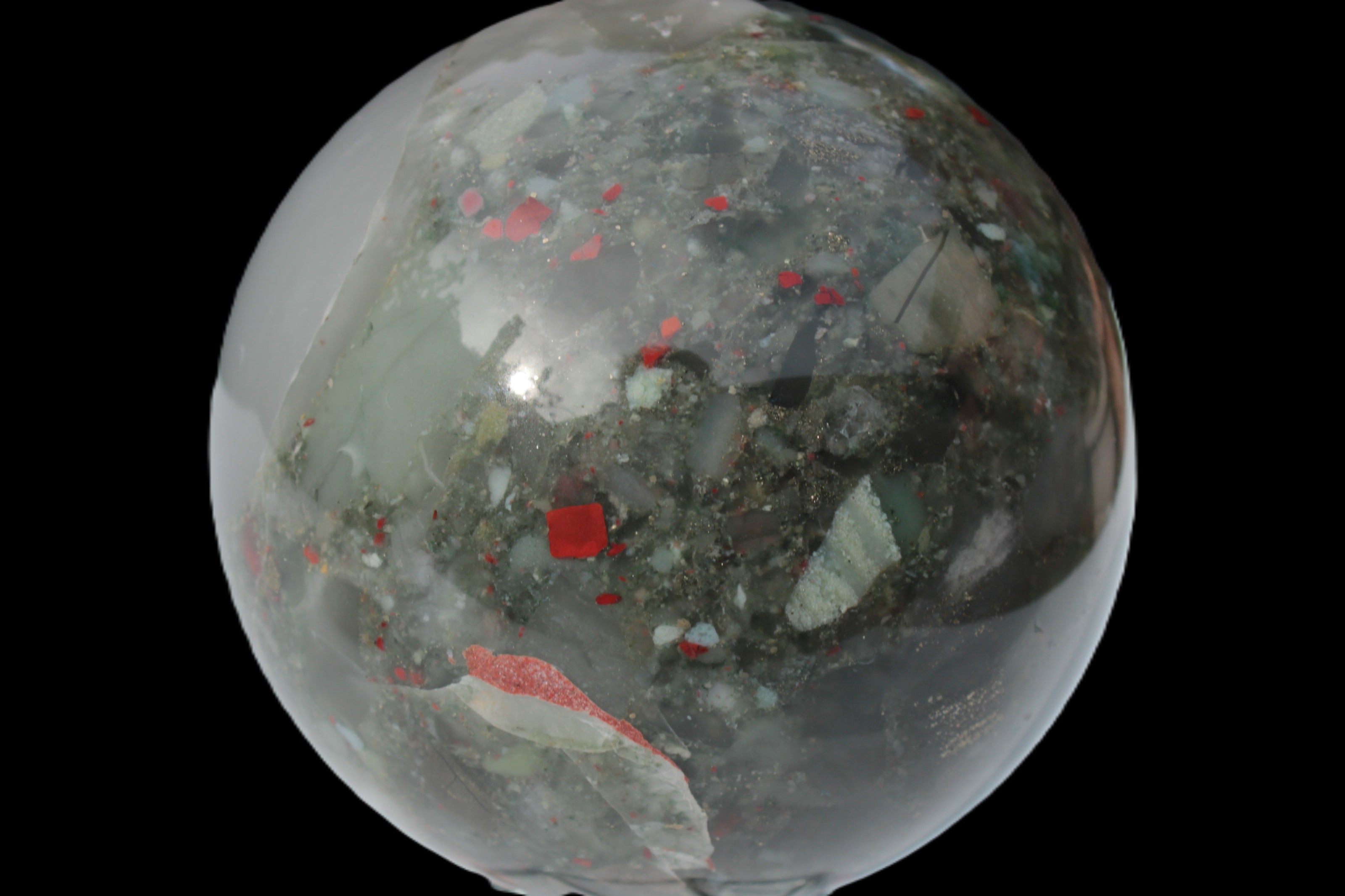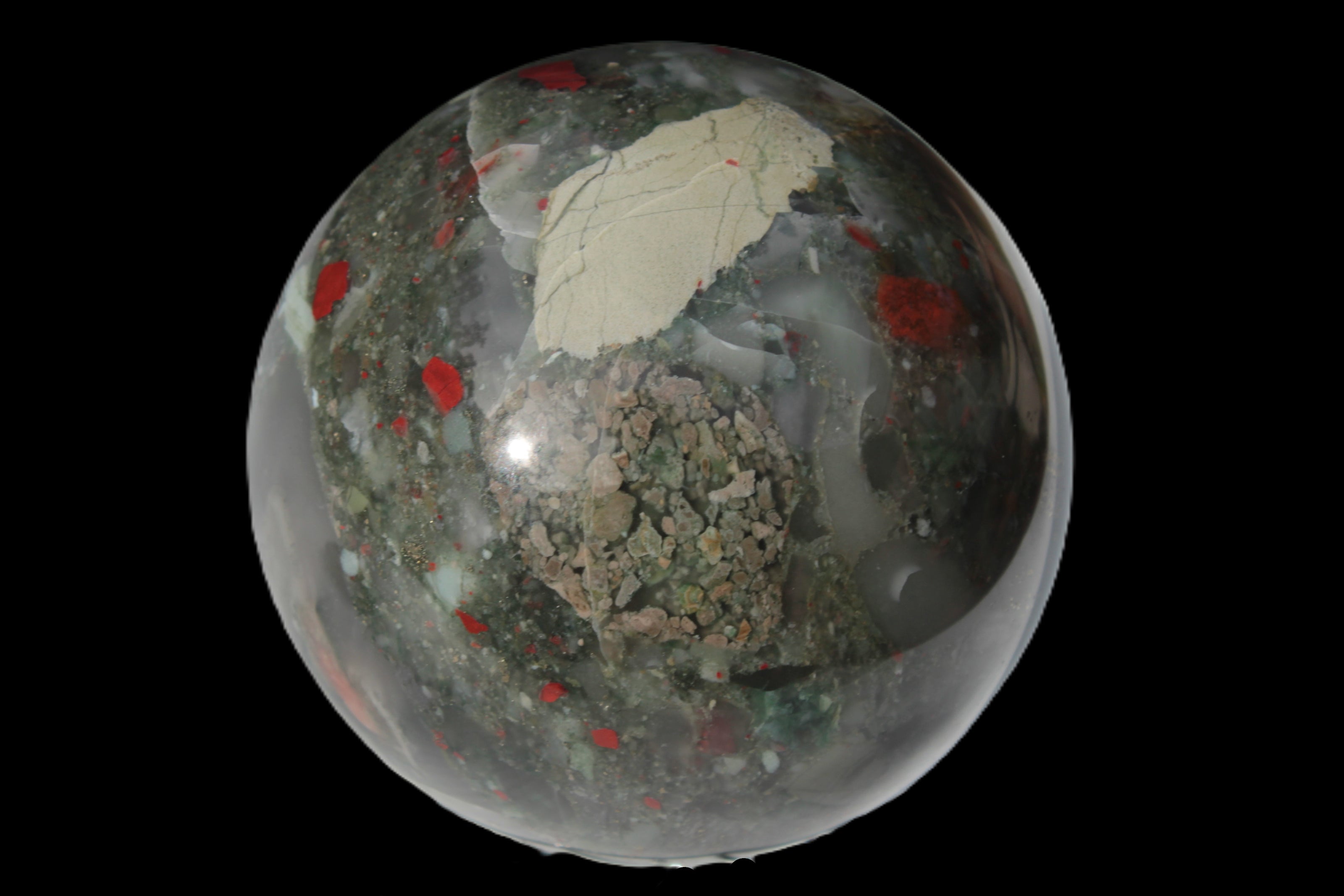 This African Bloodstone sphere 84mm weighs 831g. It is a great example of this beautiful form of Chalcedony. It is also called Setonite.