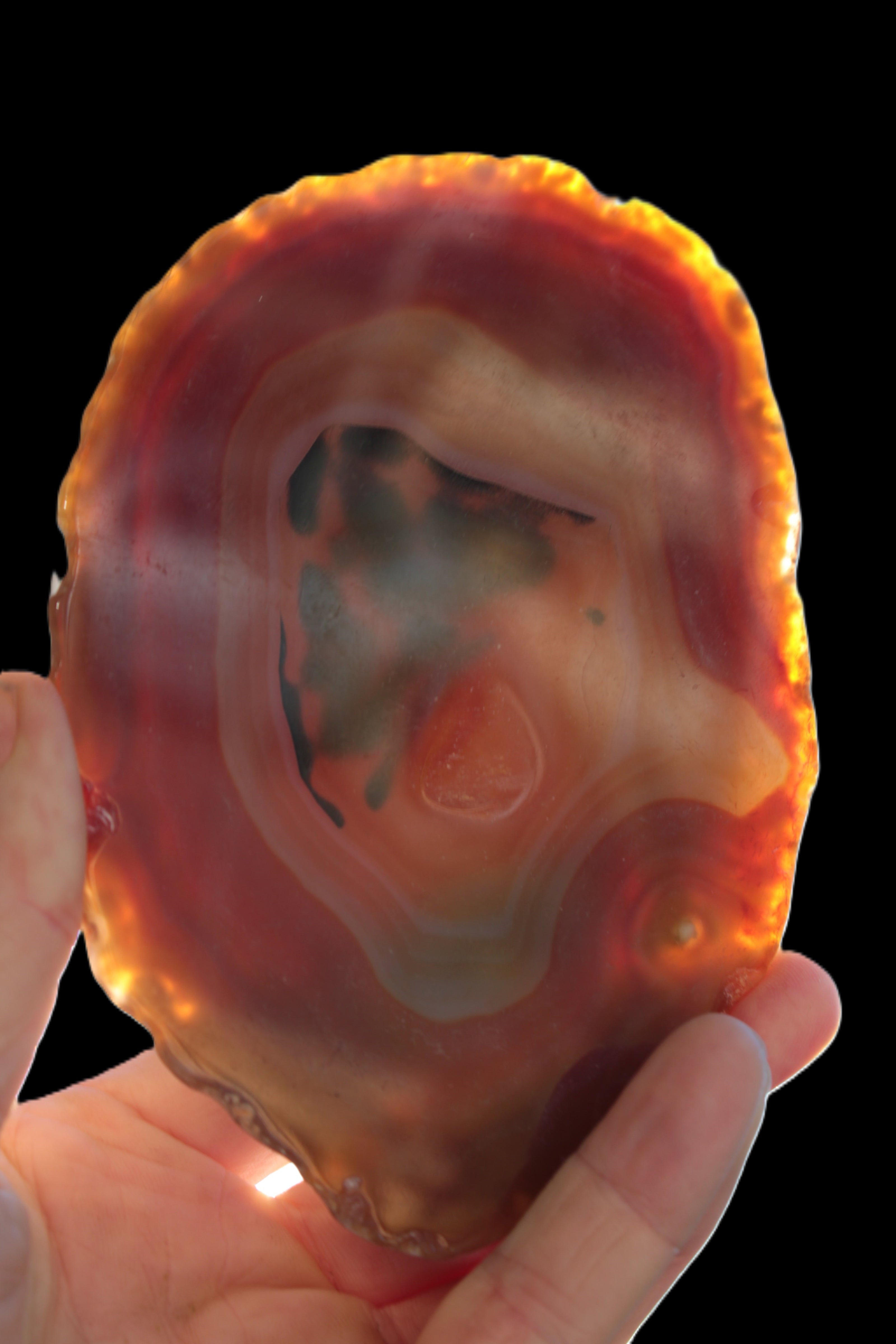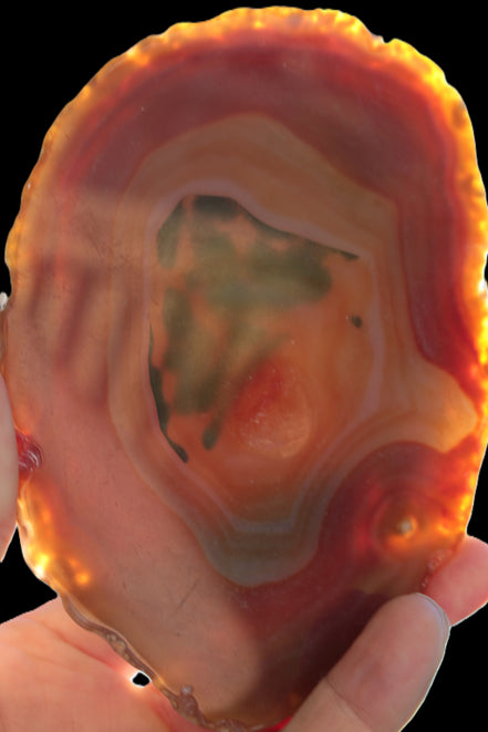 This sale item is an Agate banded slice 416g. The quiet energy of Agate works on the subtle bodies. This gentle energy is good for achieving stability and balance in key aspects of your life.