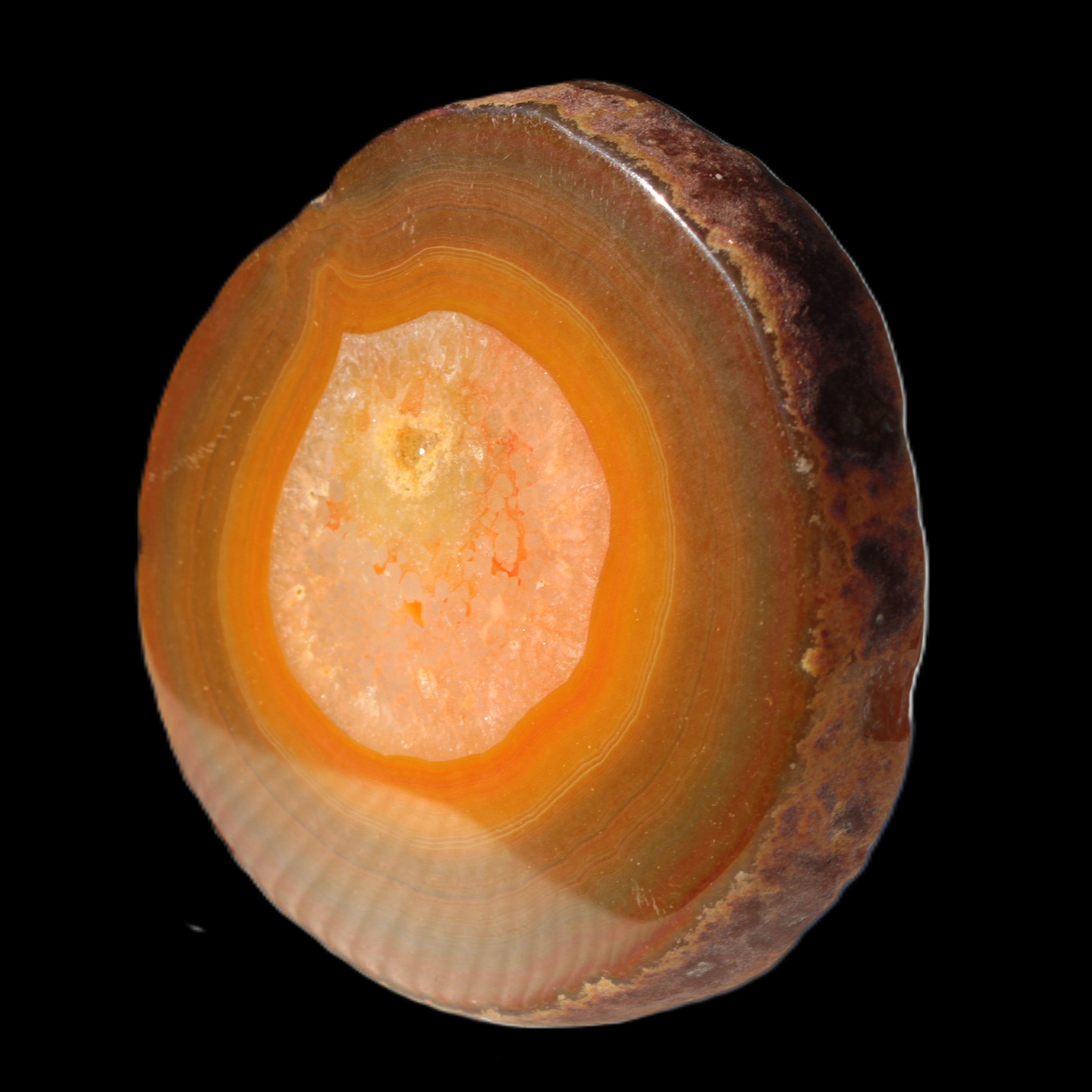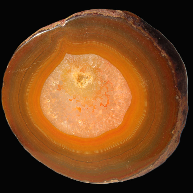 This Agate banded slice 367g features orange banding, which supports the Sacral Chakra and your creativity. Agate carries a quiet energy that works on the subtle bodies. This is good for achieving stability and balance in many aspects of your life. Agates tend to work behind the scenes on the cause, rather than the symptoms of an issue.