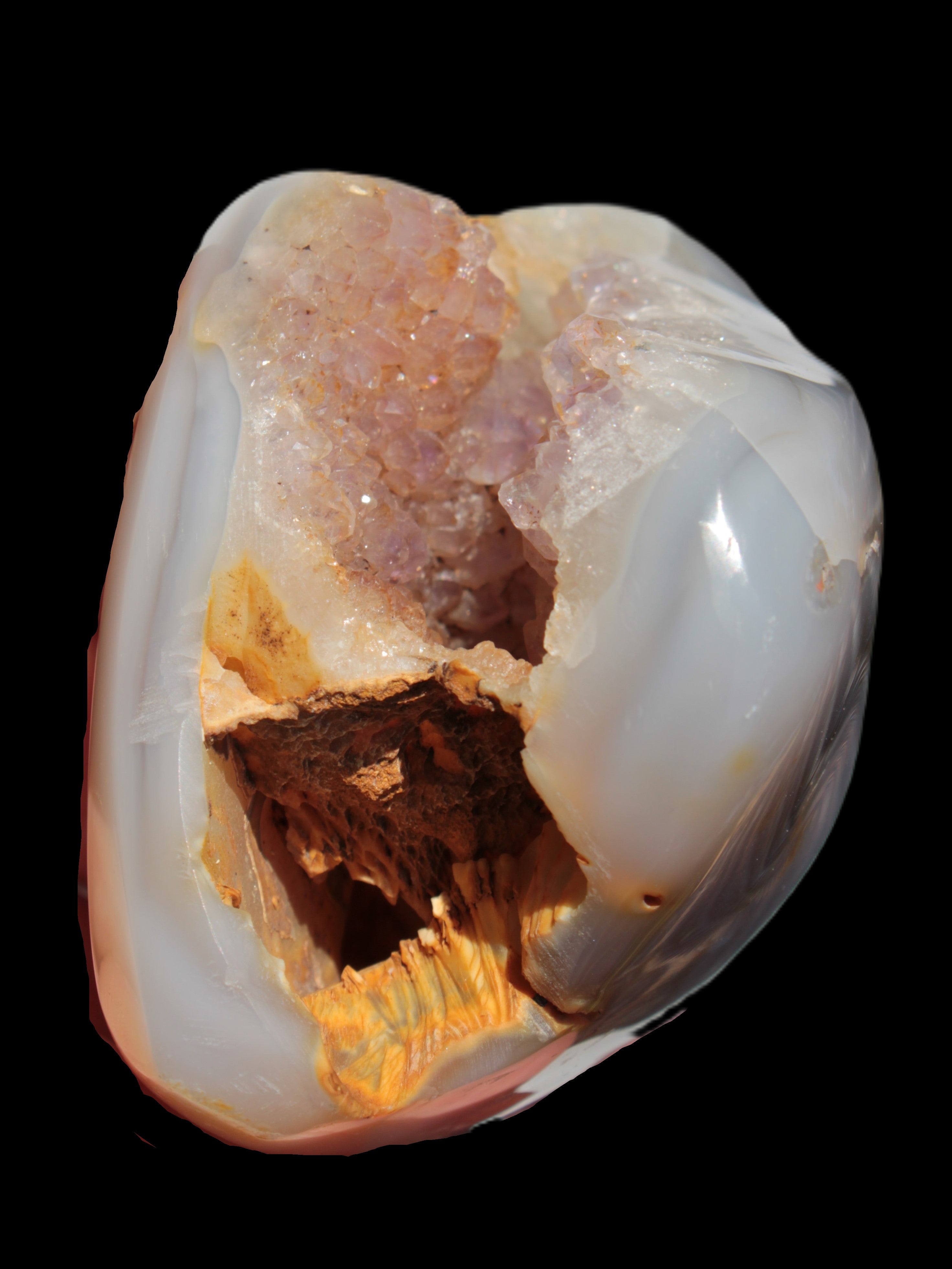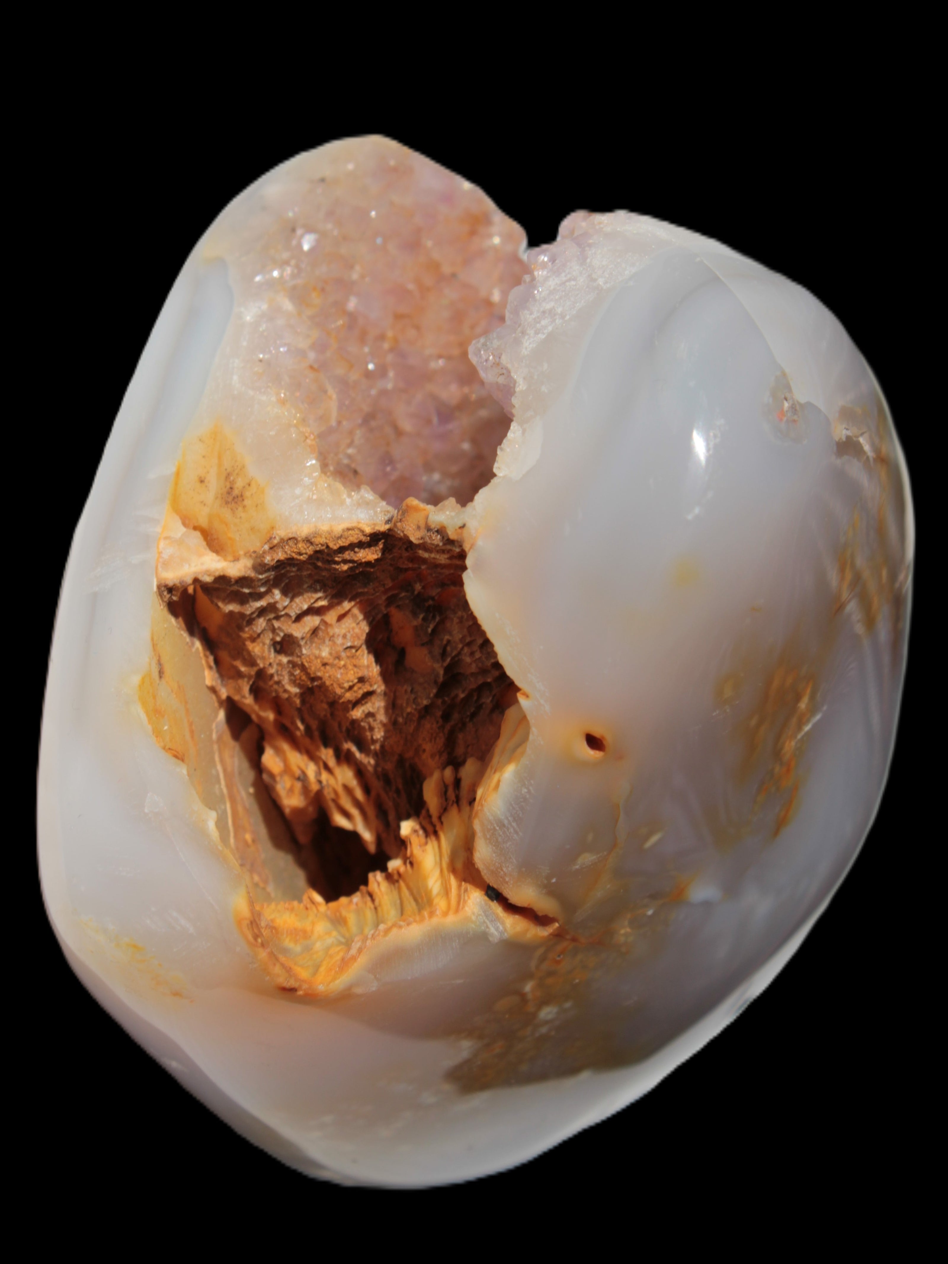 A geode amplifies softens and diffuses the healing energy of the crystal, letting it flow out slowly. This strengthened and softened healing energy is good for protection and spiritual growth. This is also useful for addressing addictive or overindulgent behaviour.