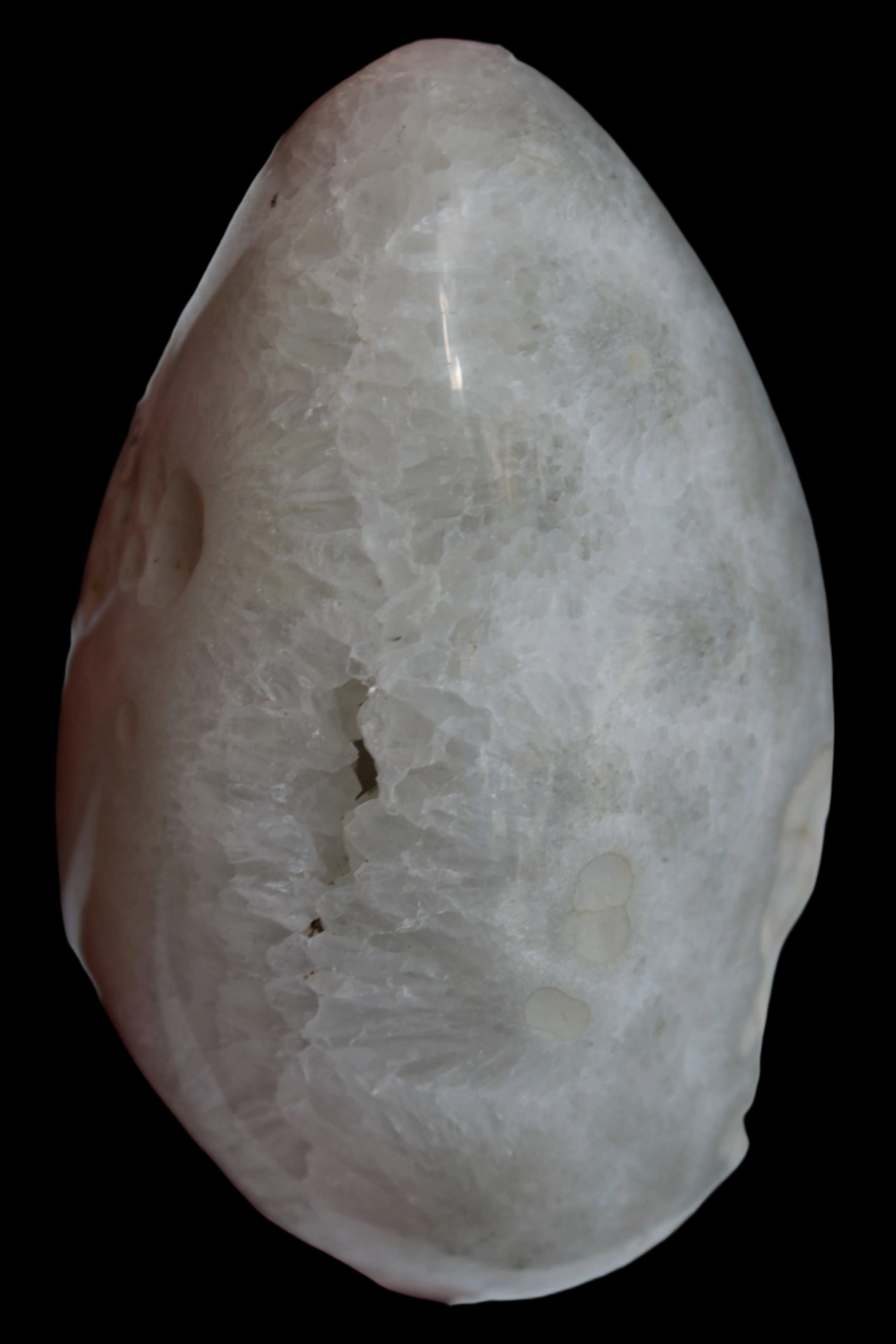 This elegant Agate Geode from Madagascar 446g is perfect as a specimen and for spiritual growth. It is a lovely white agate with beautiful crystal growth patterns. It is a sale item.