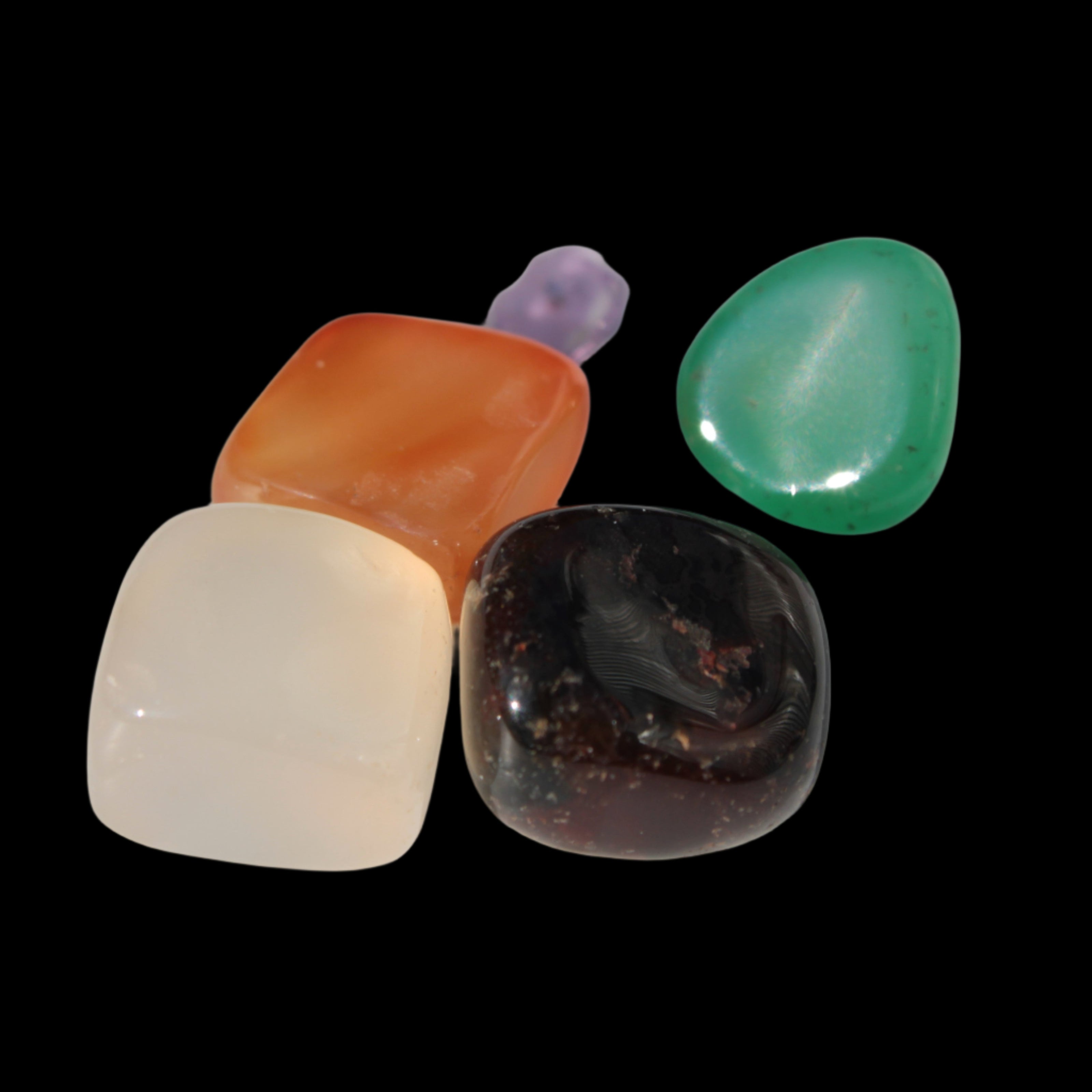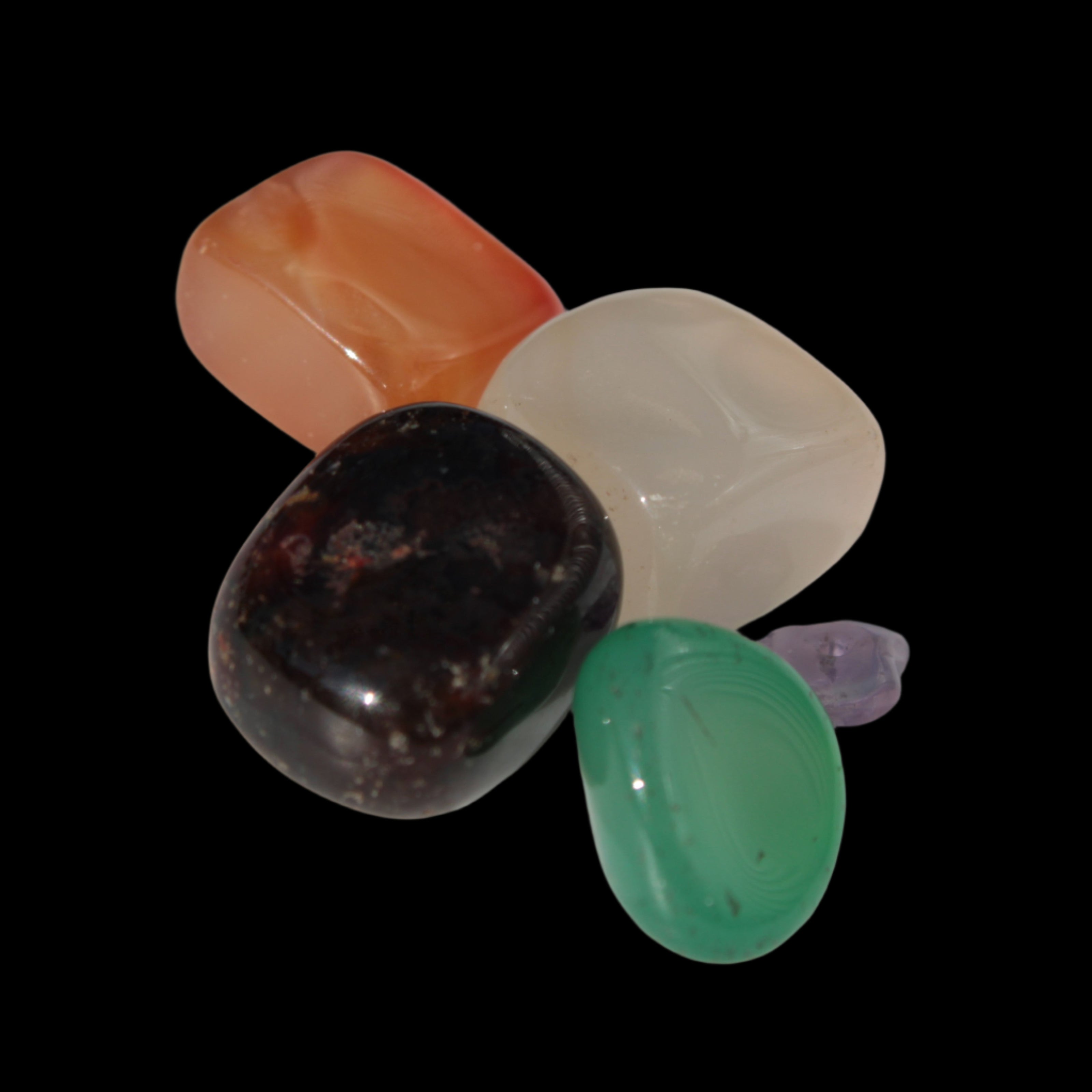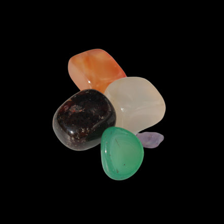 These selections of Agate tumbled 4/5 tiny stones weigh 7-9g. Agate carries a quiet energy that works on the subtle bodies. This is good for achieving stability and balance in key aspects of your life. Agate works in the background on the cause of your issues, rather than its symptoms. Agate can also help you with overcoming negative emotions by bringing love into the chakras. This grounding of emotions makes Agate great for easing anxiety and stress.