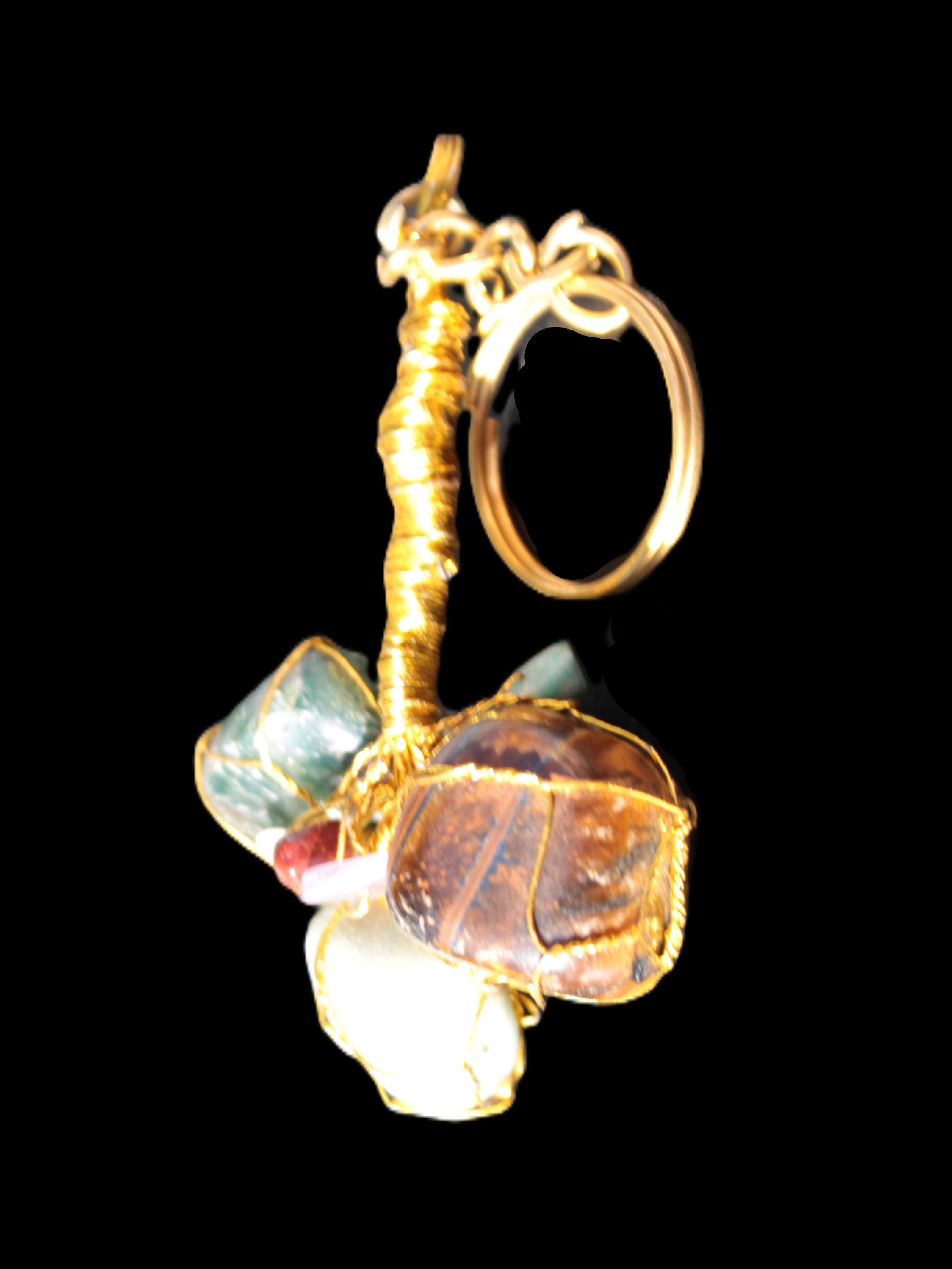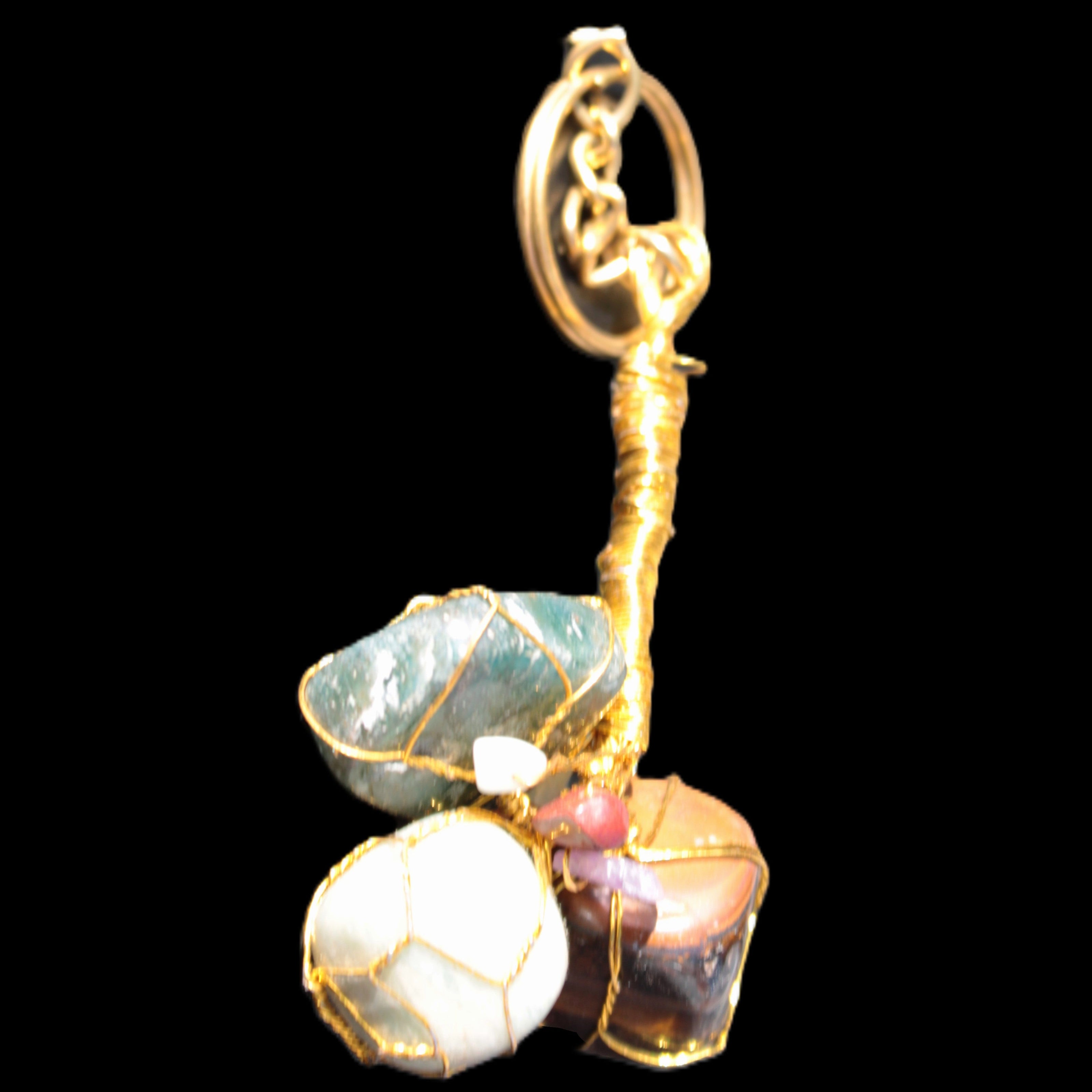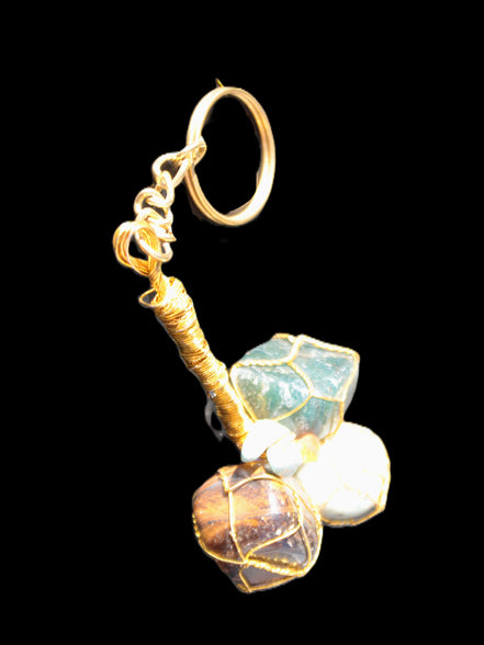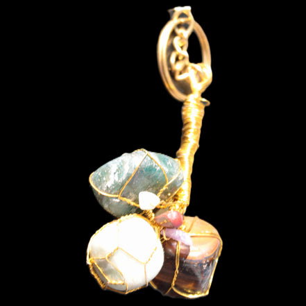 Amazonite, Jasper and Tigers Eye wire-wrapped keychain 140mm 50g Rocks and Things Store