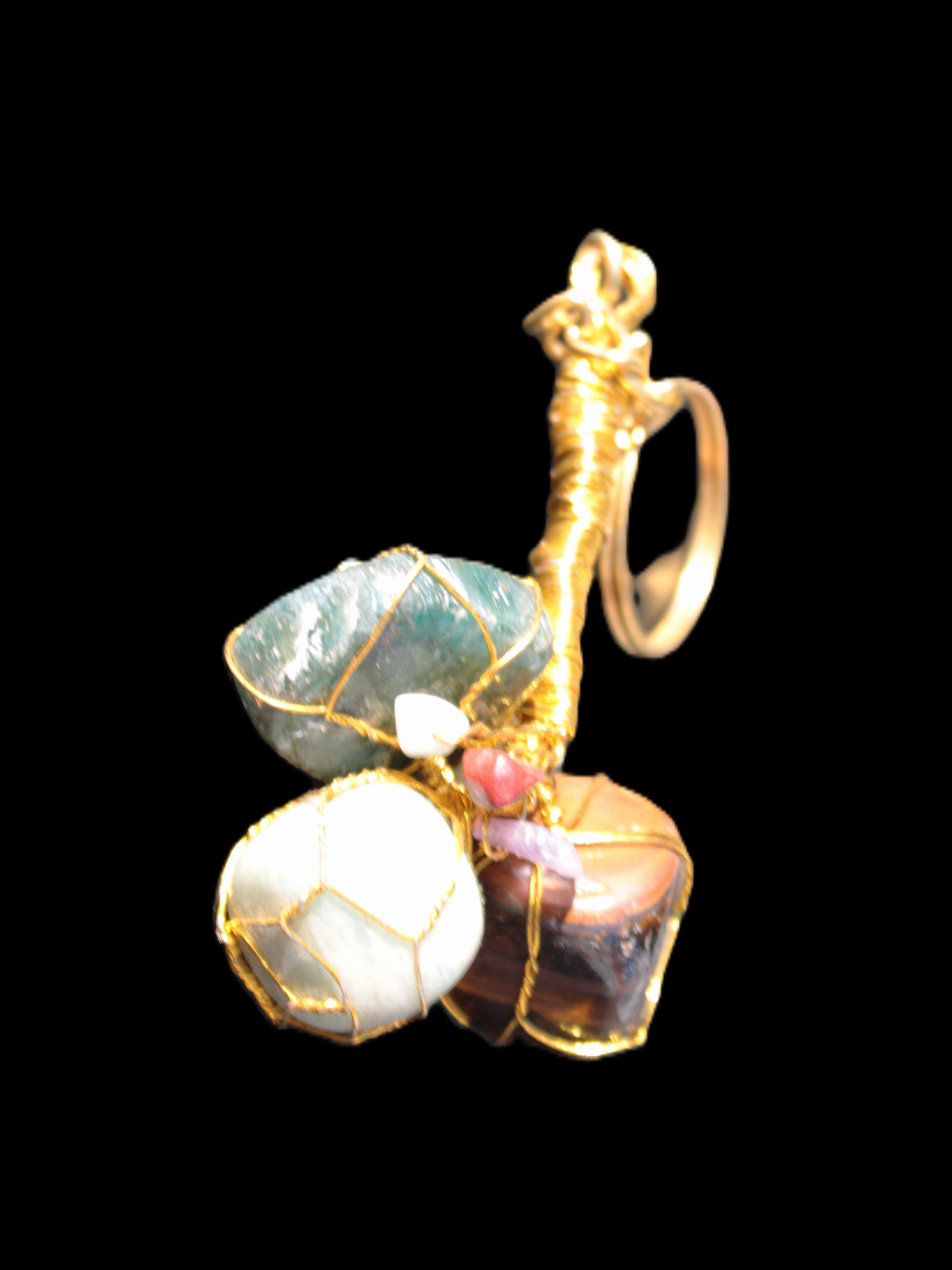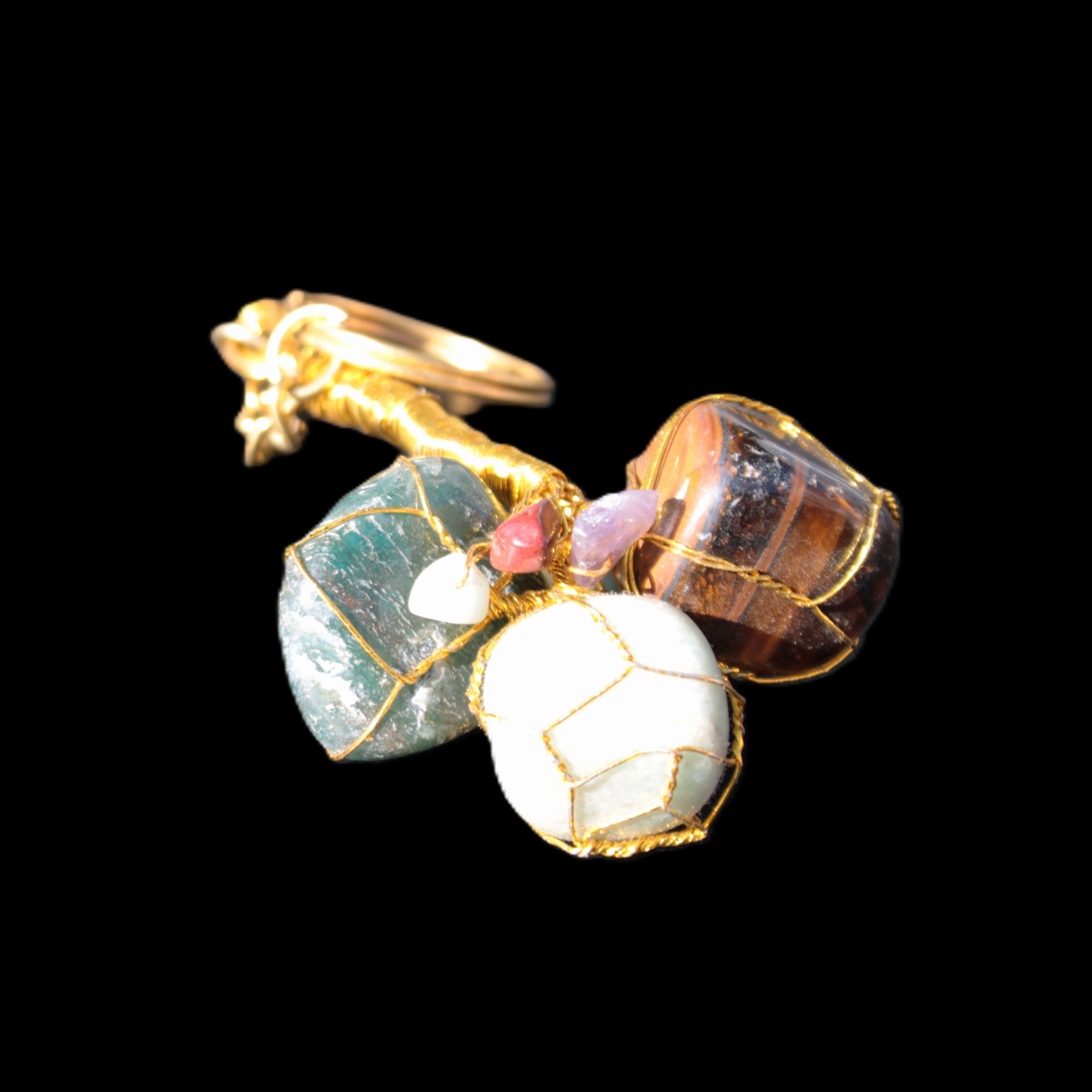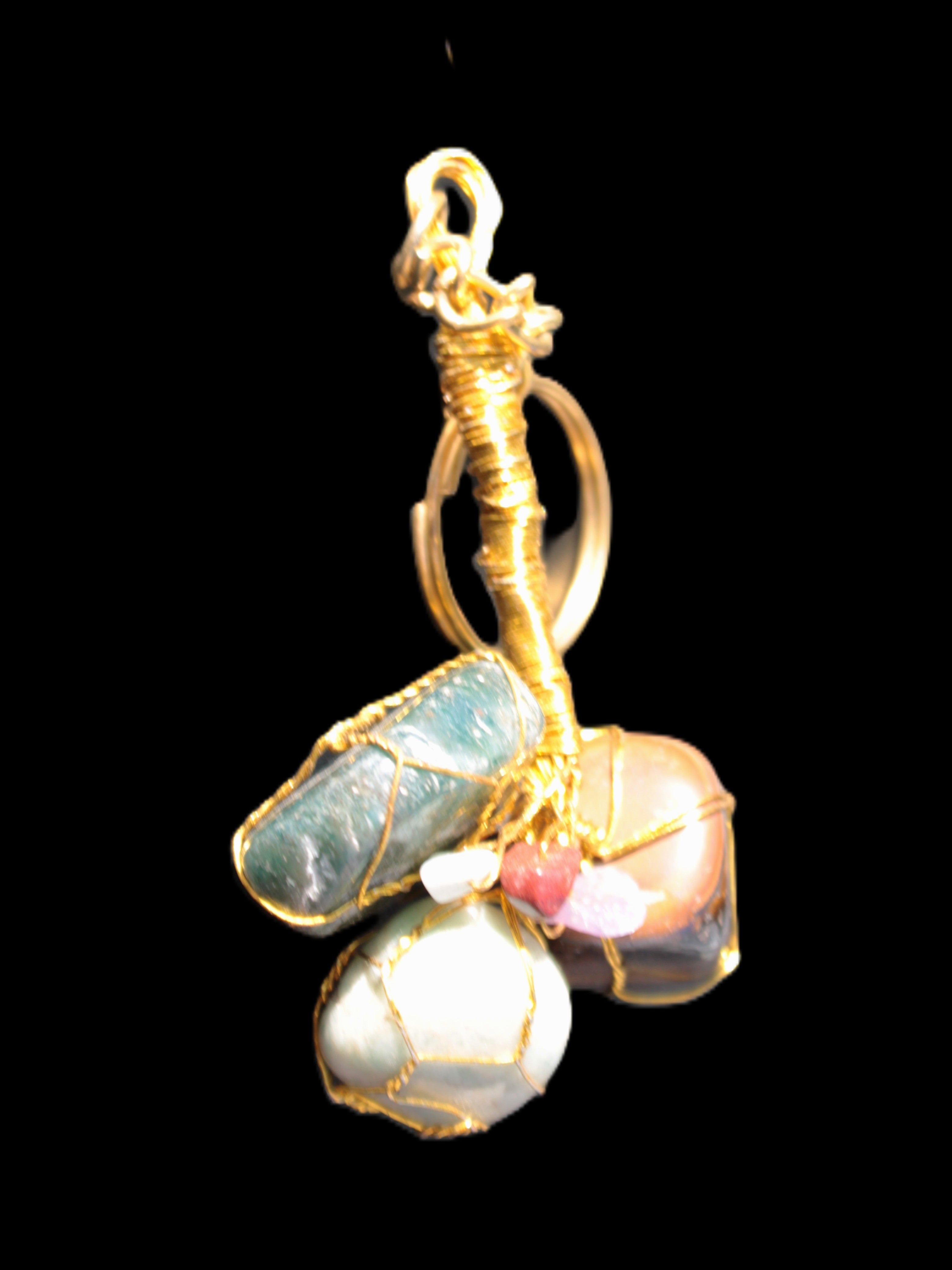 Amazonite, Jasper and Tigers Eye wire-wrapped keychain 140mm 50g Rocks and Things Store