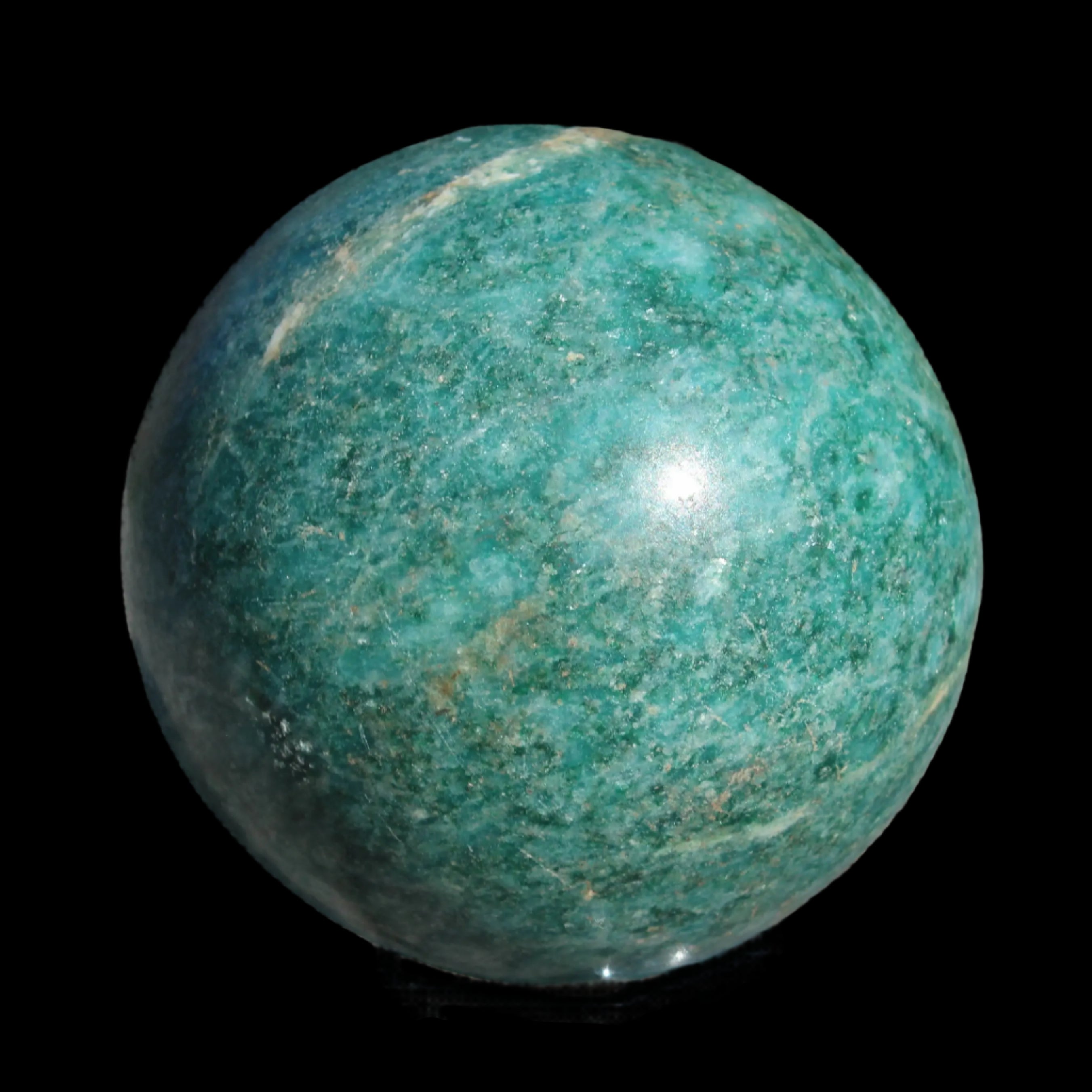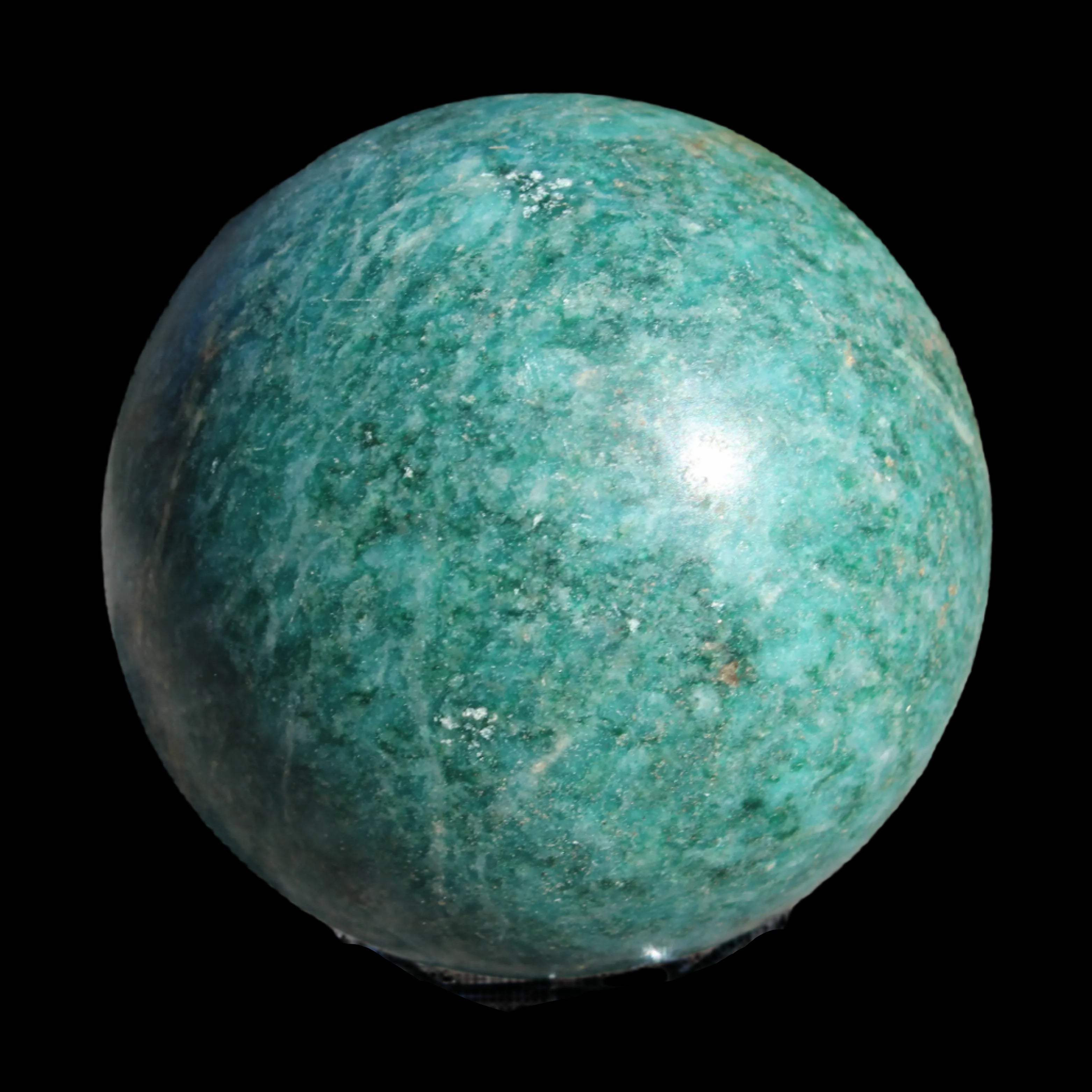 This Amazonite sphere 679g is a beautiful example of this great stone. It was sourced and fashioned in Pakistan from local rock by our partner, Lawrence Handicrafts.