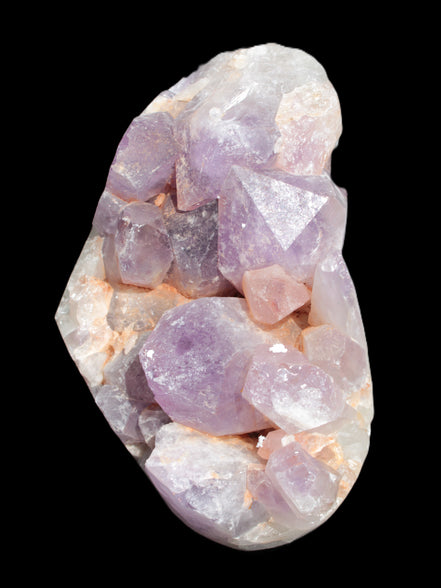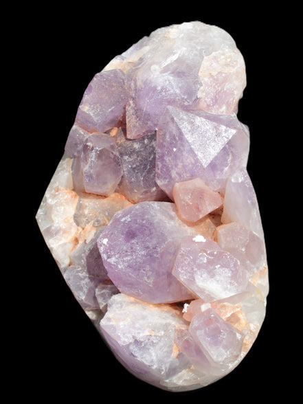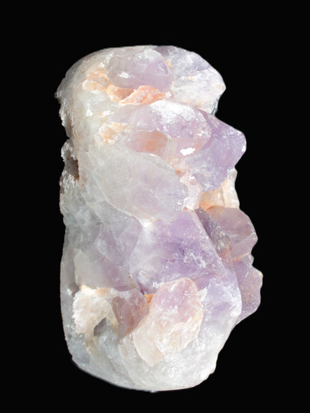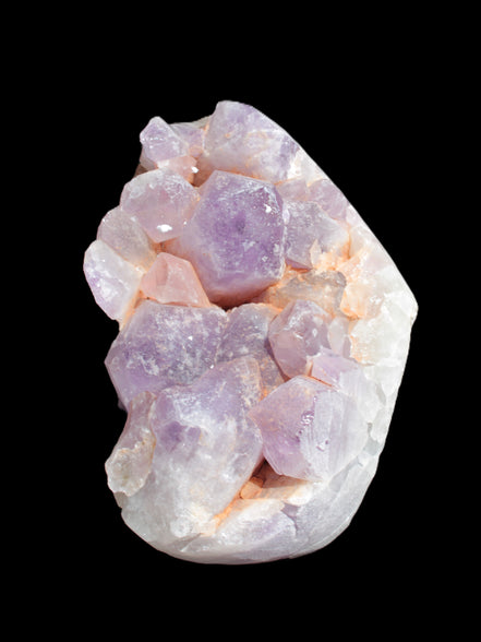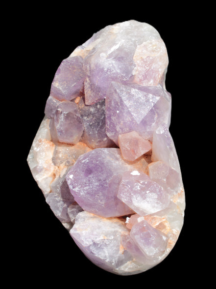 This powerful Amethyst cluster 198*123*99mm weighs 3260g. The larger mauve crystals are 50mm across. The smaller crystals are almost pink. Looking at and holding this heavy cluster you get a real sense of the raw power of Amethyst.