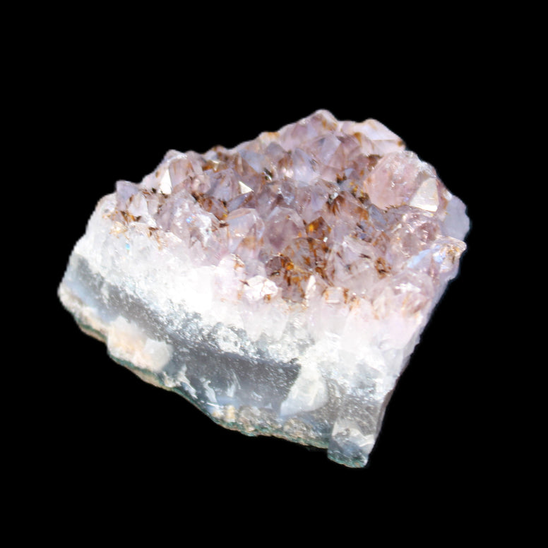 This Amethyst cluster 37*27mm weighs 37.7g. Amethyst forms in range of different conditions, giving rise to different forms. Banded Amethyst can form as hydrothermal vein fillings. Well-formed individual crystals arise in small cavities and fissures in volcanic rocks. Sceptres form in higher temperature conditions, usually in pegmatites. Drusy clusters generally form in cavities and veins in volcanic rocks and sometimes in sedimentary rocks.