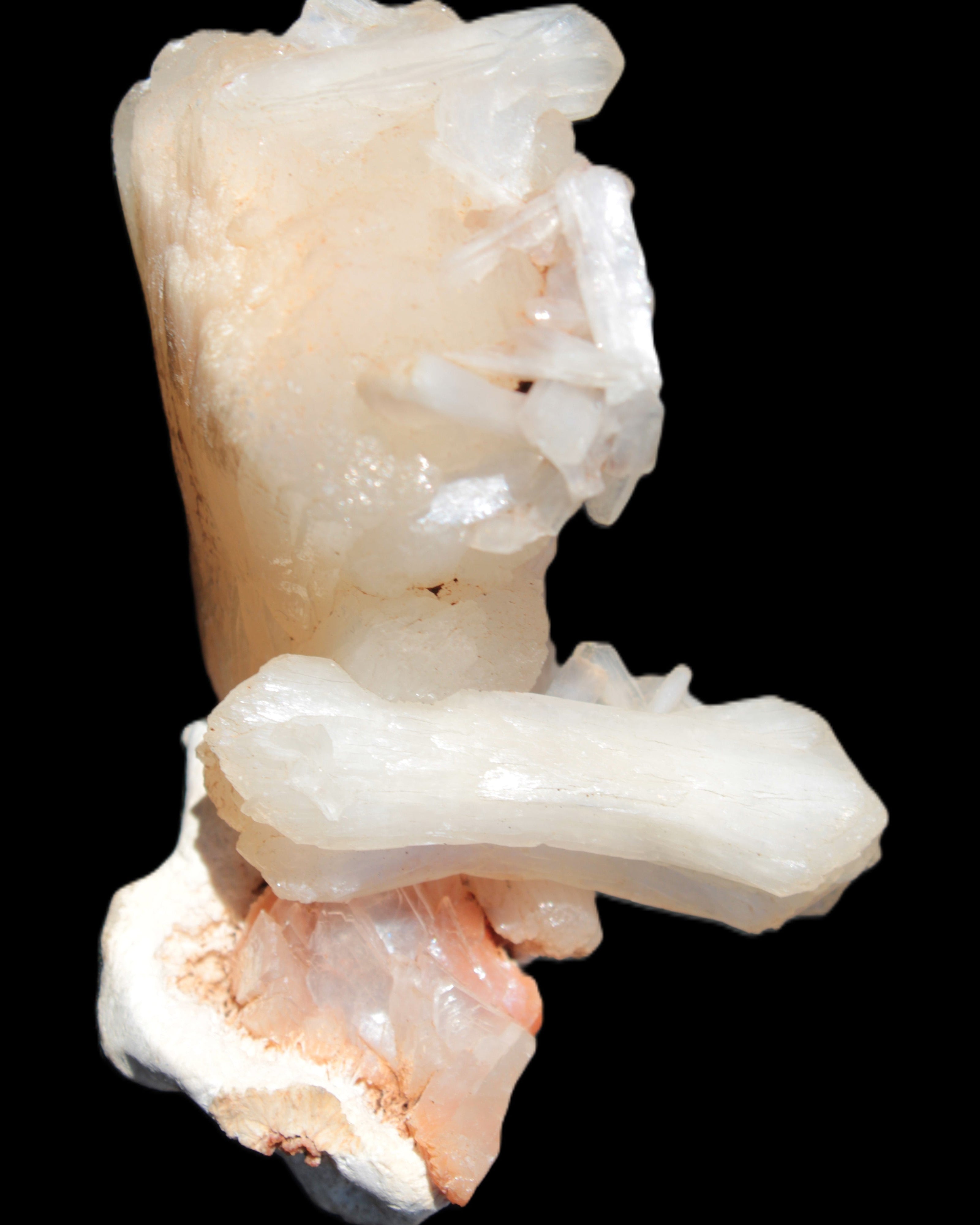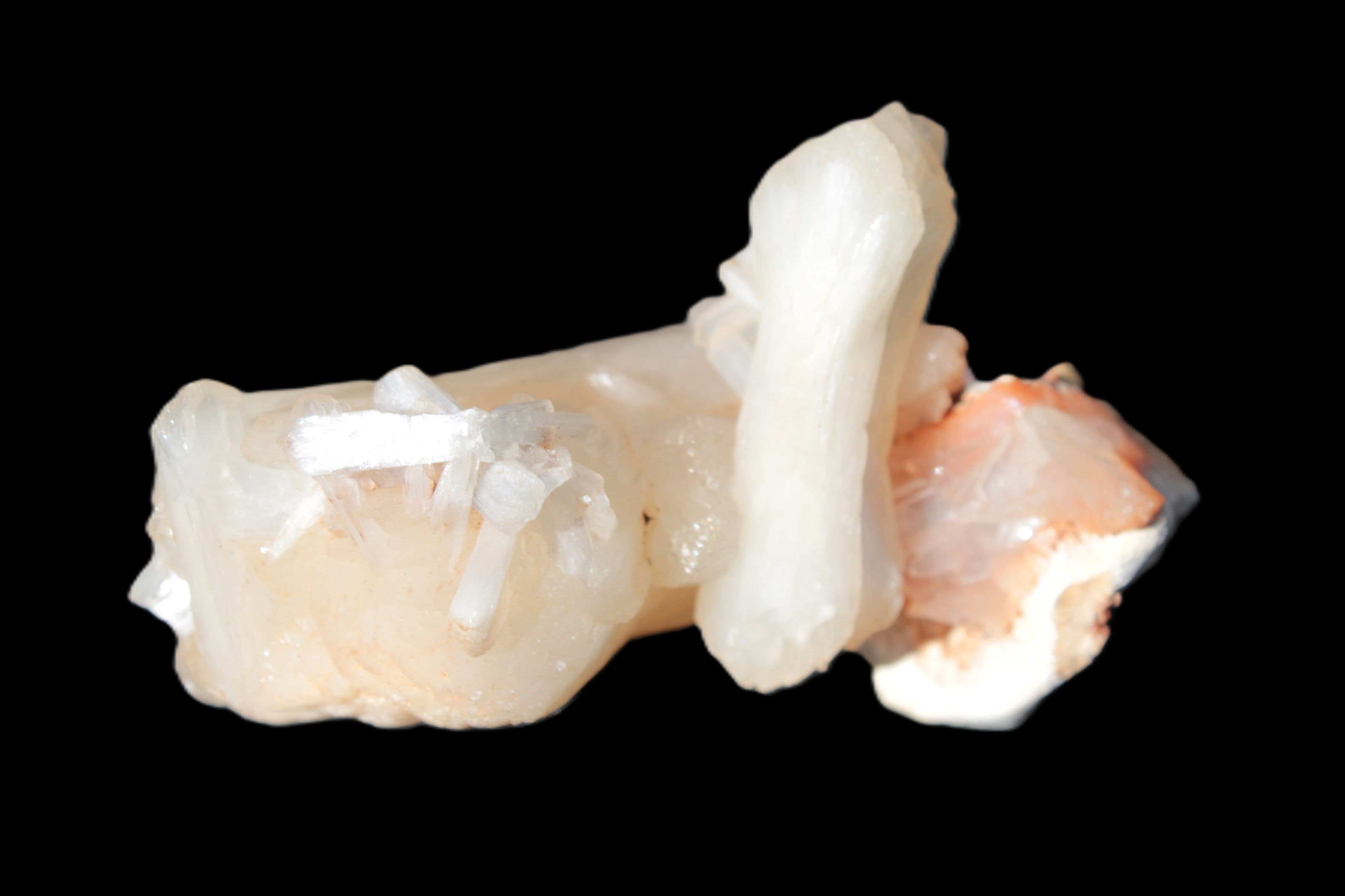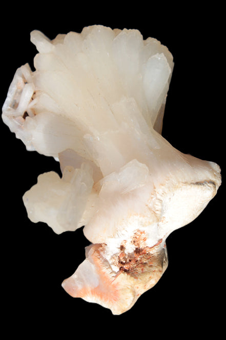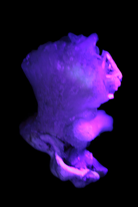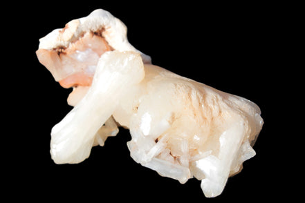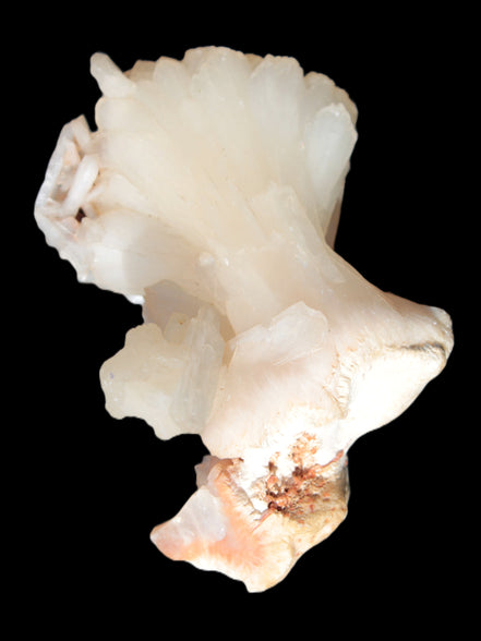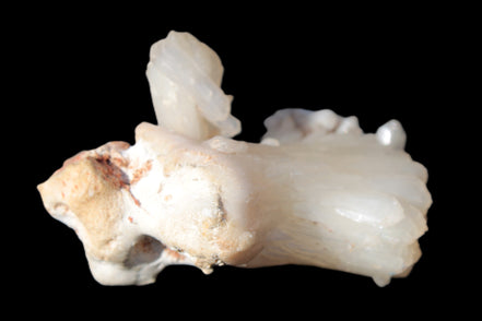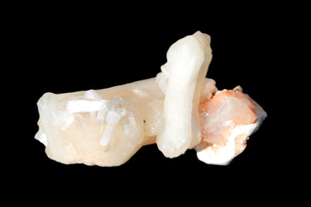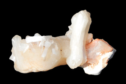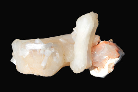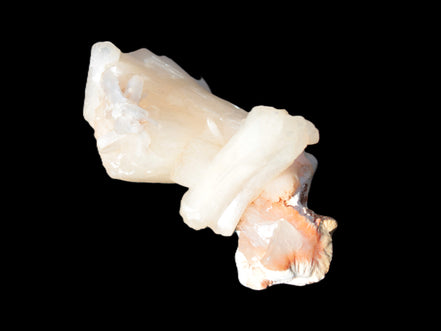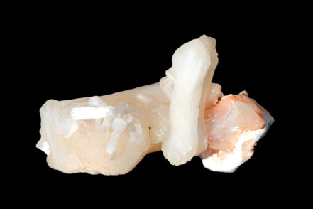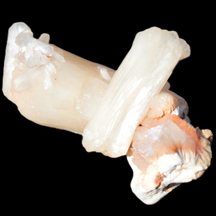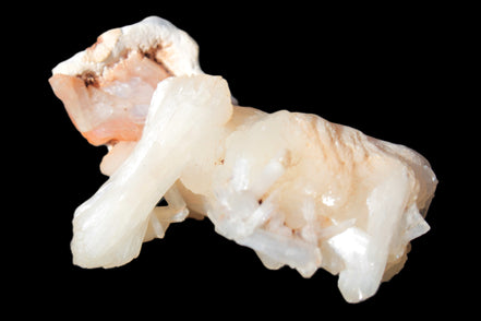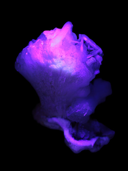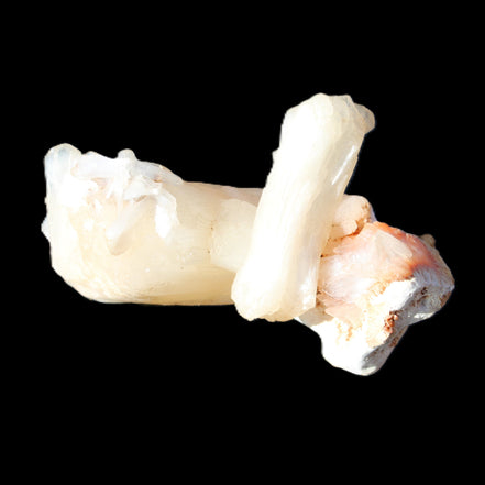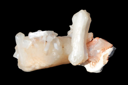 This Apophyllite and Calcite Zeolite is amazing. It wears a bowtie. Zeolites like this form in basalt vesicles, which is a cavity formed by escaping gases as the molten rock flows and cools. The reaction to UV light suggests the base is red Calcite, rather than Heulandite. The Bowtie may be Stilbite. Both of these minerals are also Zeolite minerals. Zeolites have incredible chemical and energetic properties. This makes prized in both manufacturing and metaphysical applications.