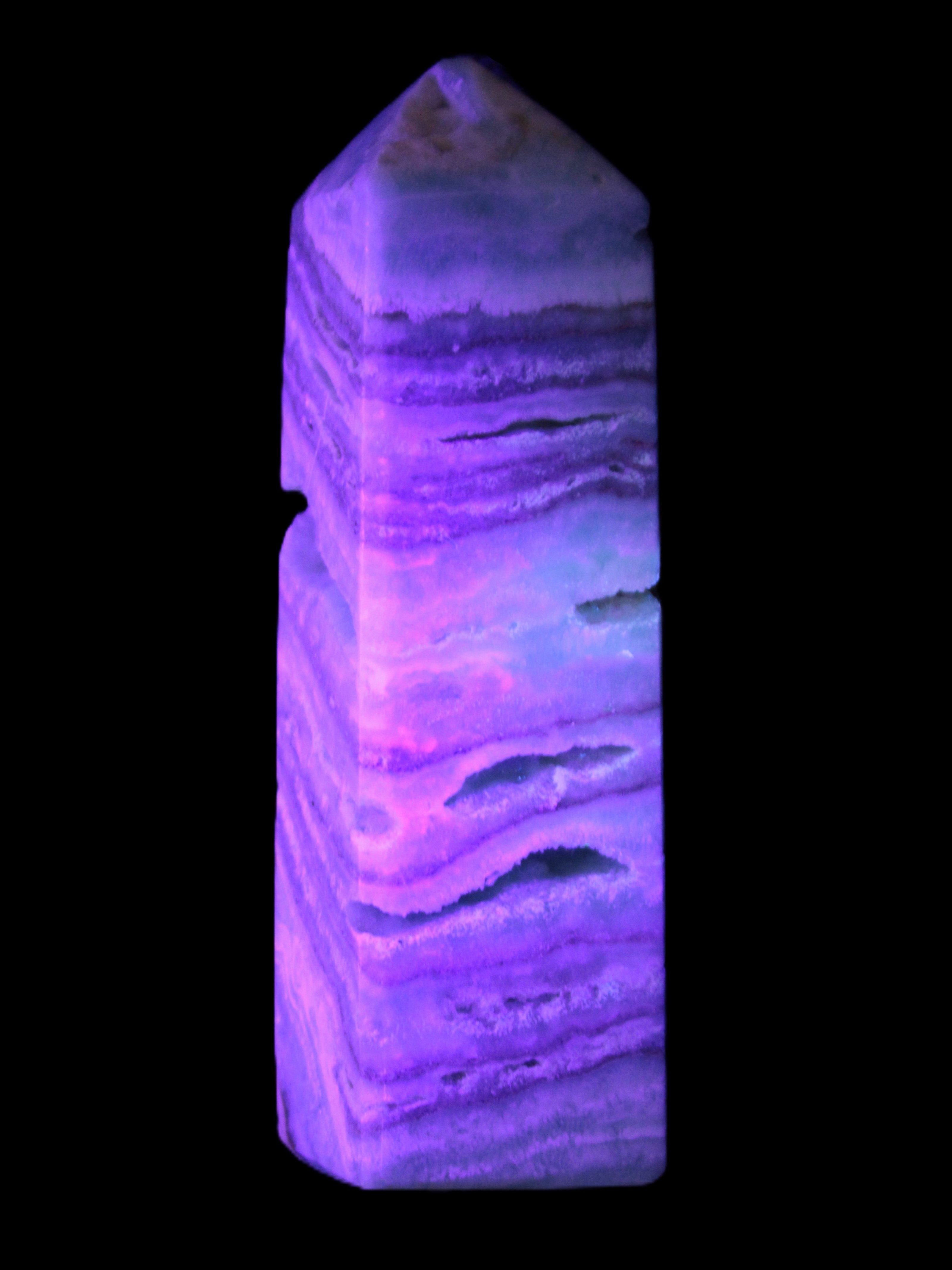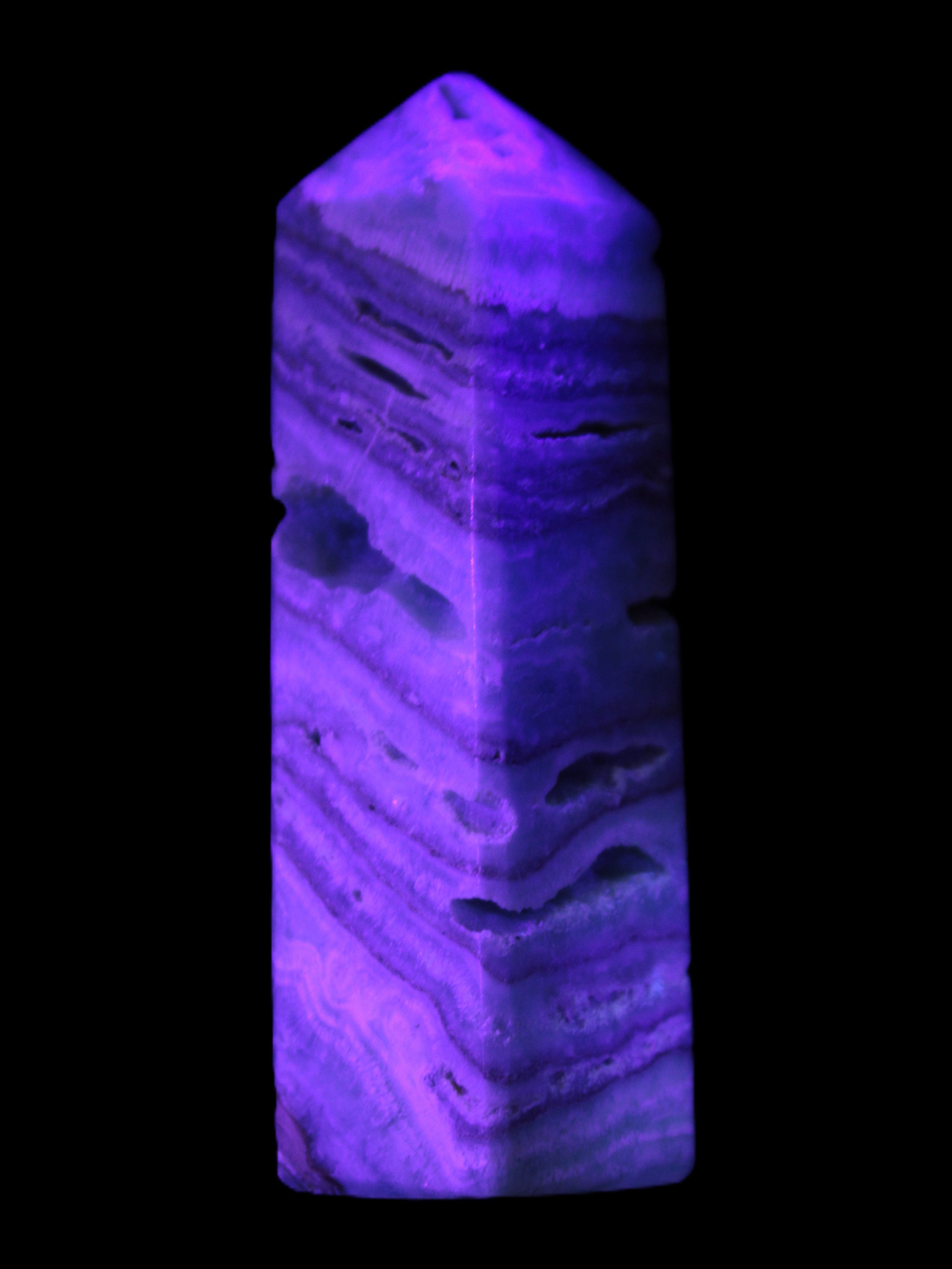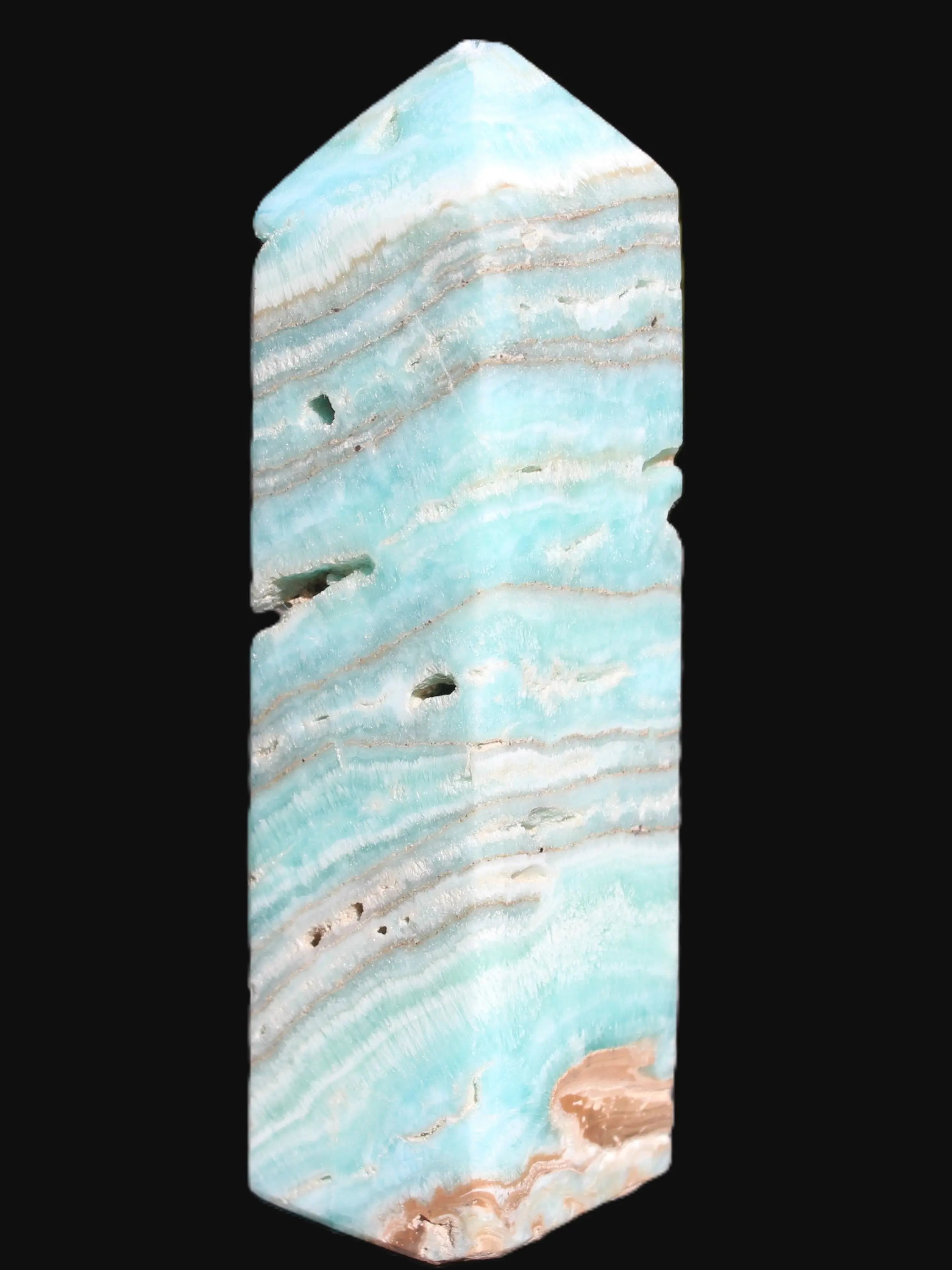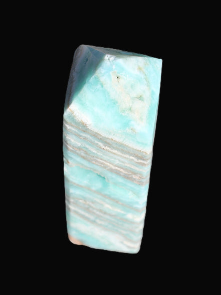 This Aqua Blue Caribbean Calcite obelisk 292g is a stunning example of the majesty of Caribbean Calcite. Caribbean Calcite is a form of Aragonite.  This is a calcium carbonate mineral, formed in limestone caves and around hot springs.