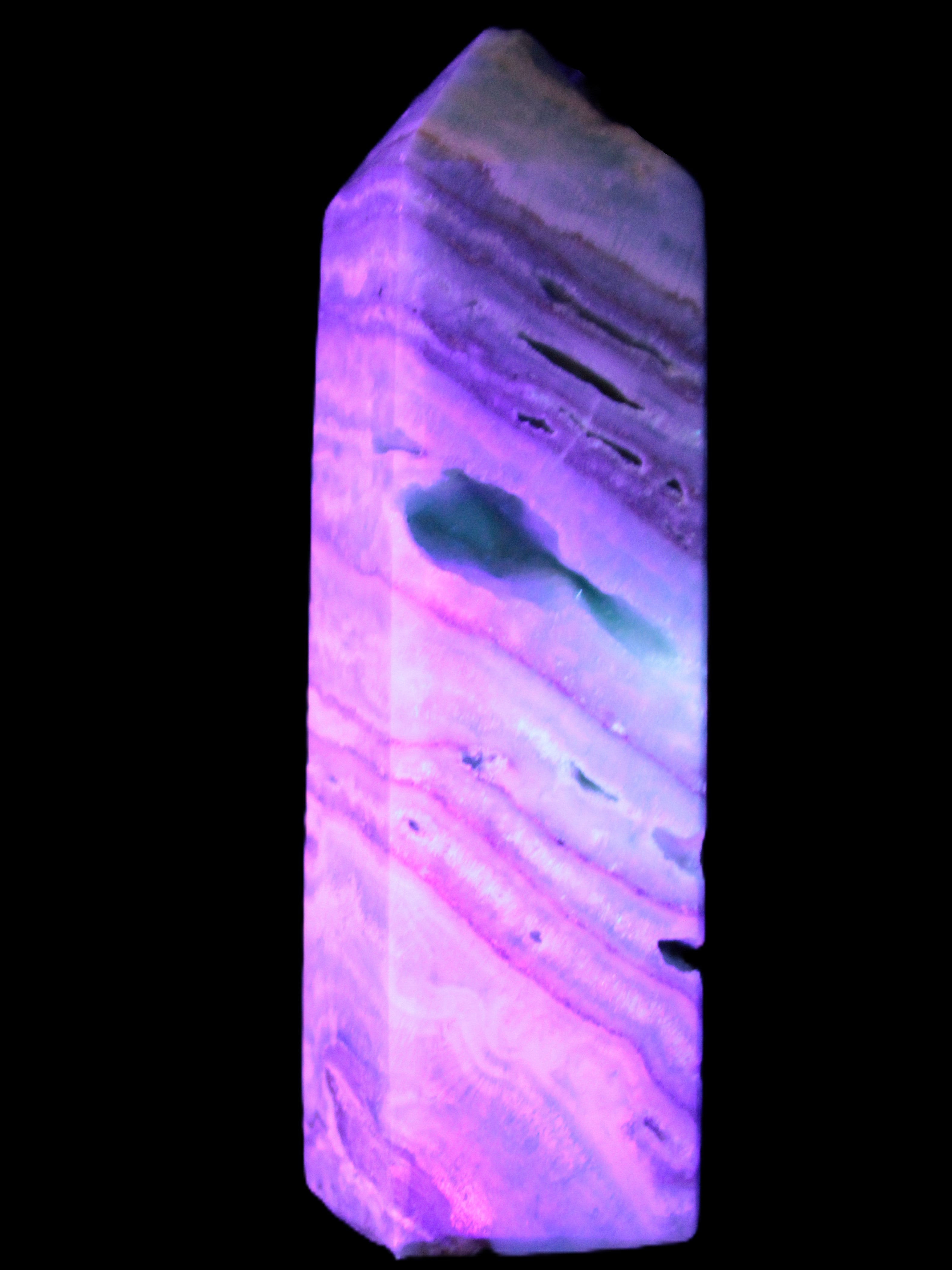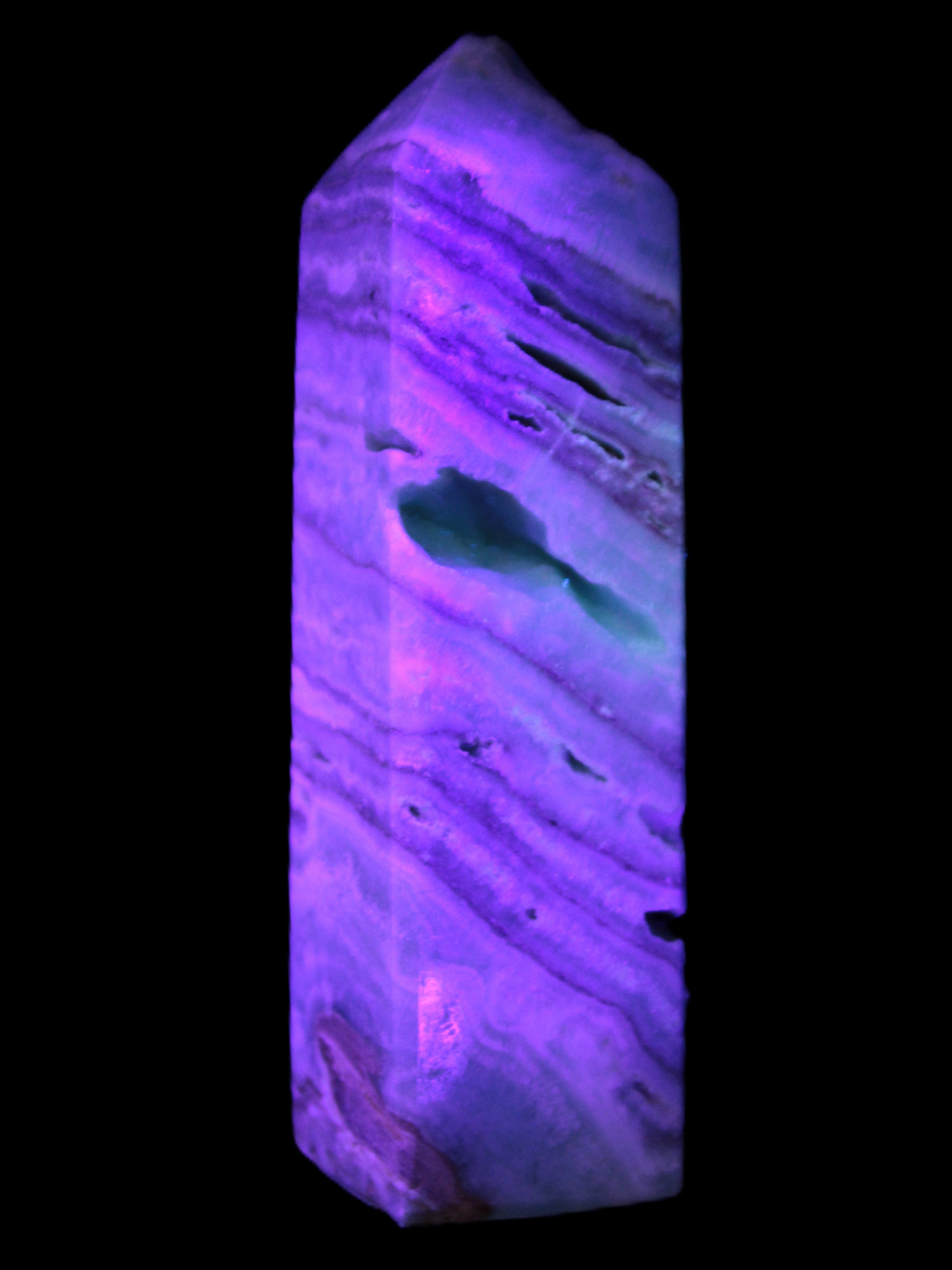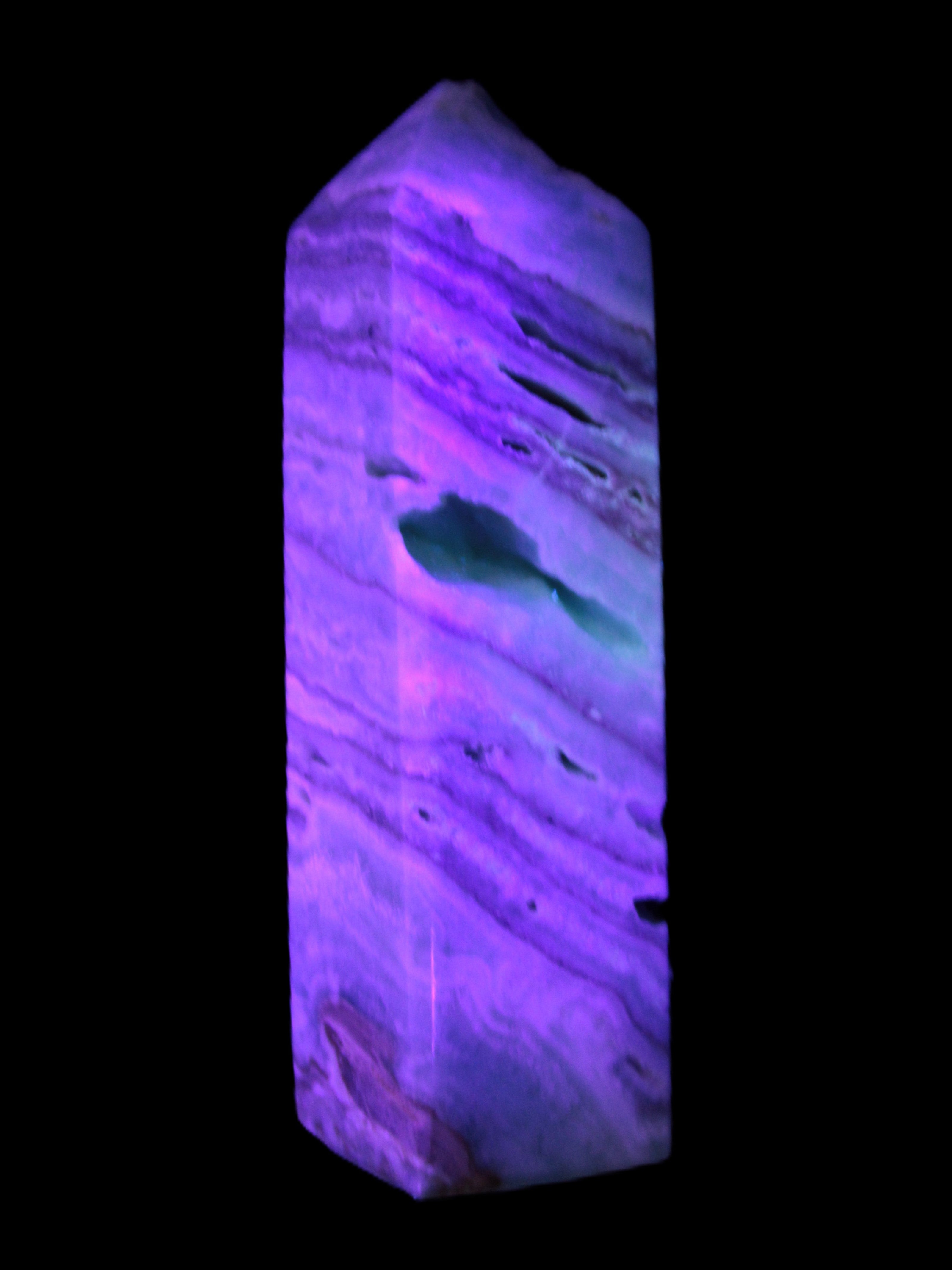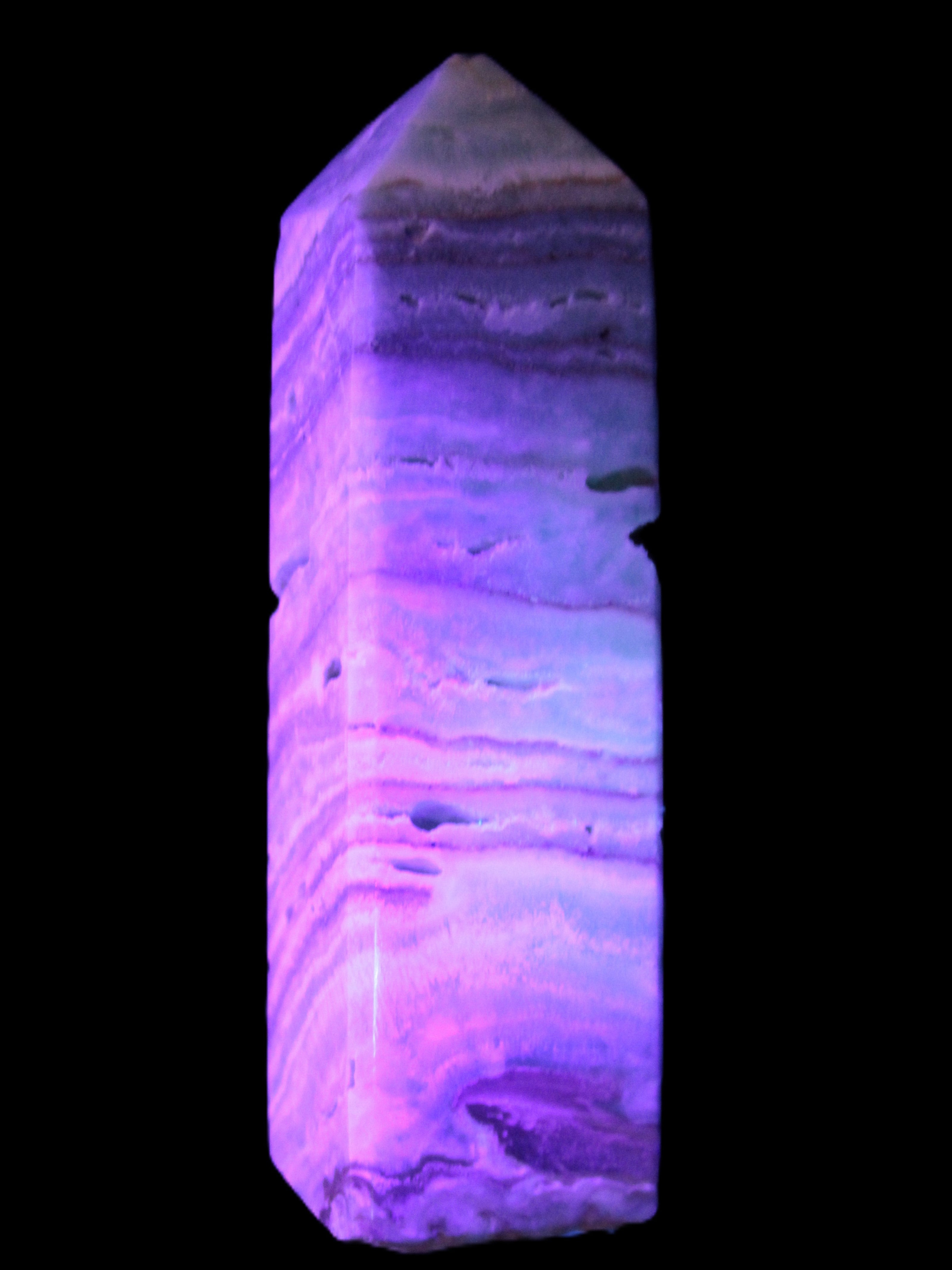 This Aqua Blue Caribbean Calcite obelisk 292g is a stunning example of the majesty of Caribbean Calcite. Caribbean Calcite is a form of Aragonite.  This is a calcium carbonate mineral, formed in limestone caves and around hot springs.