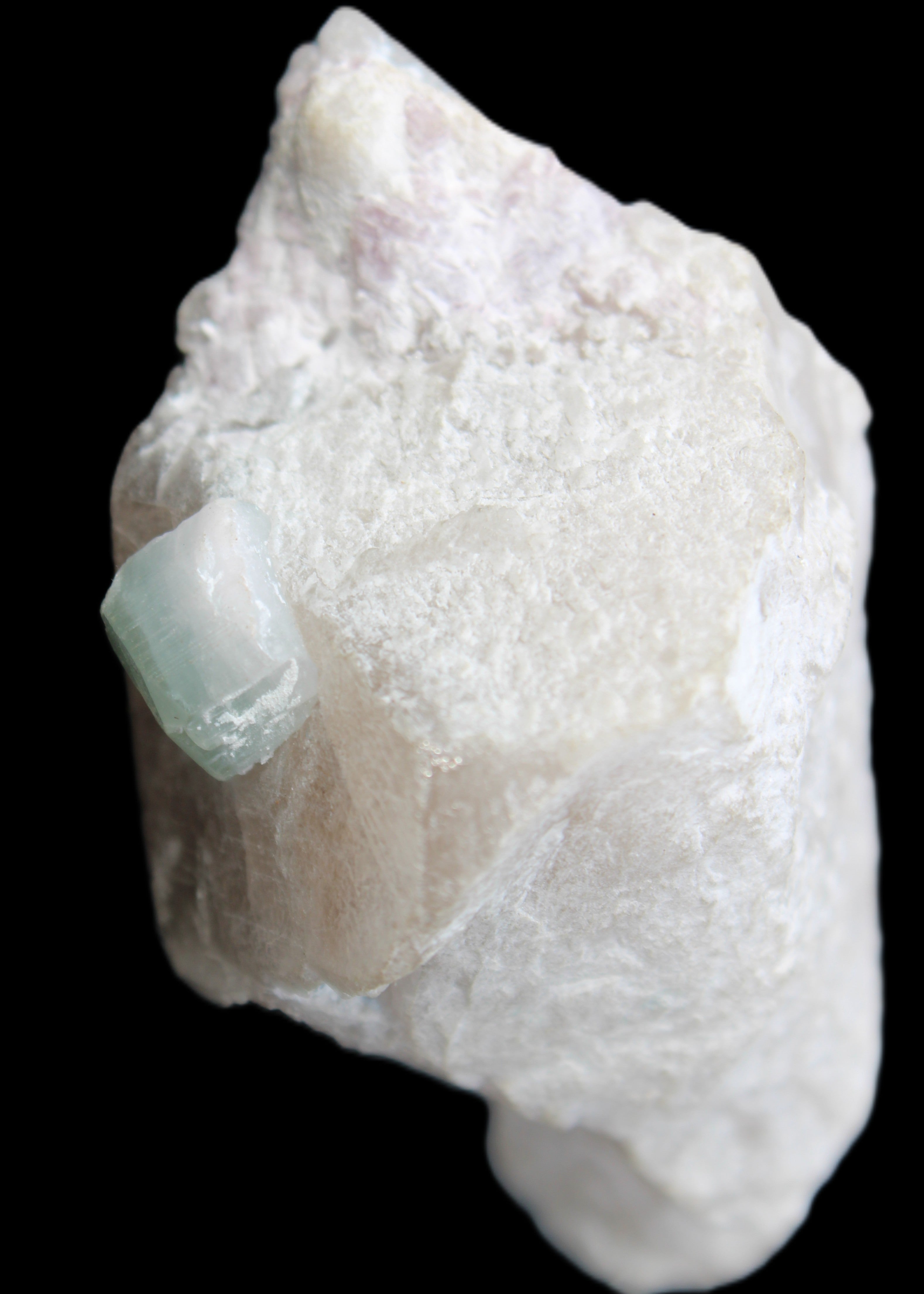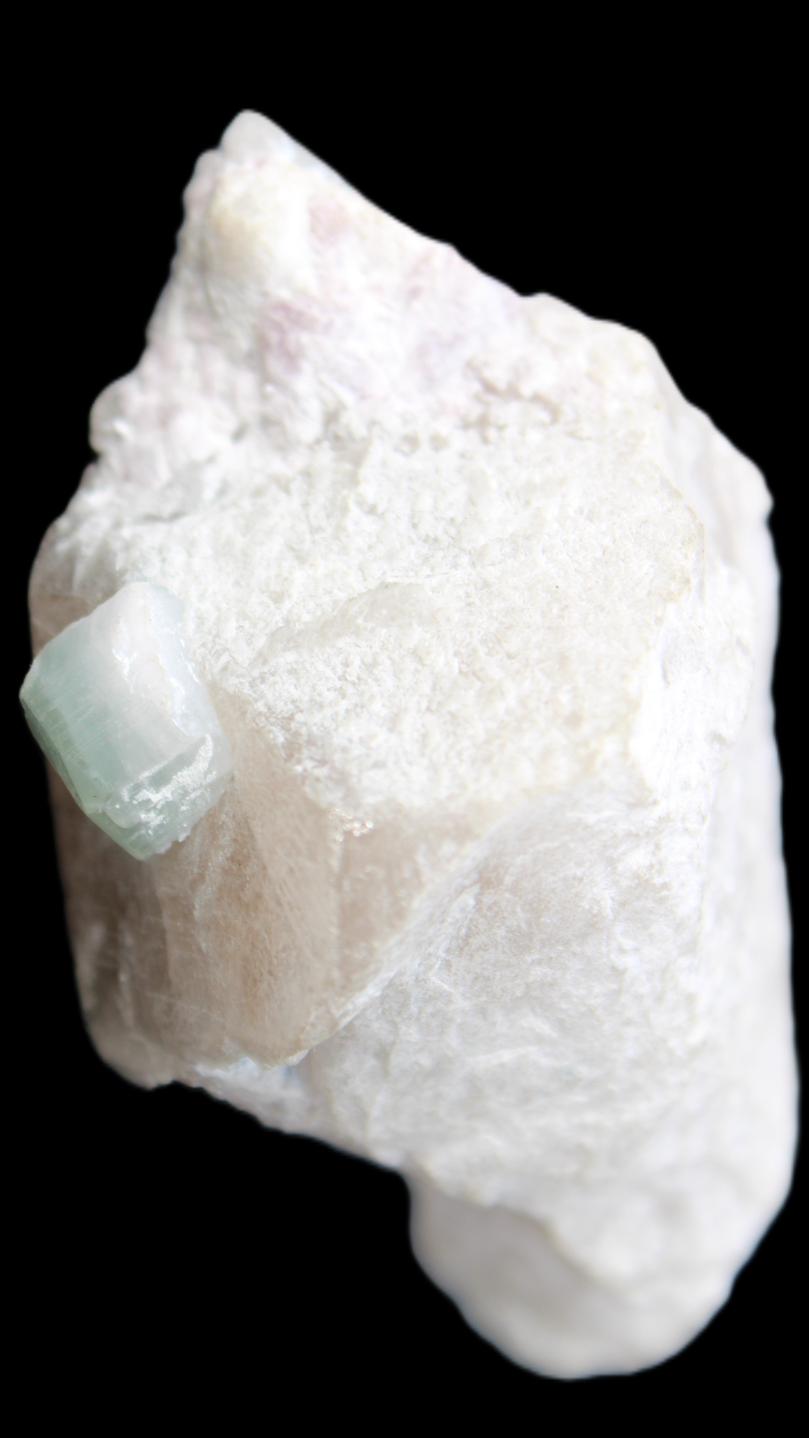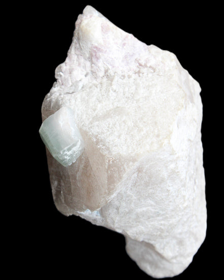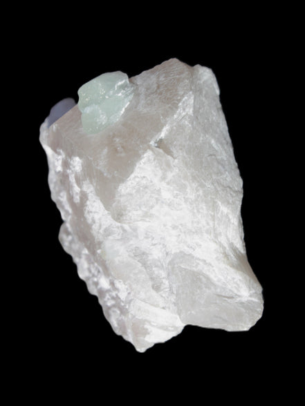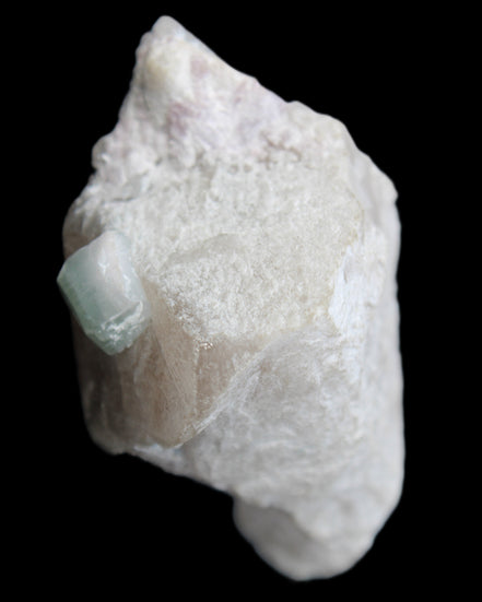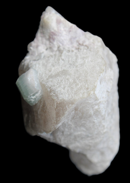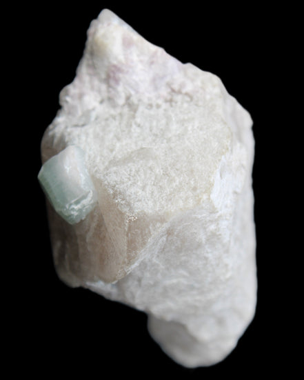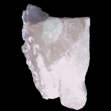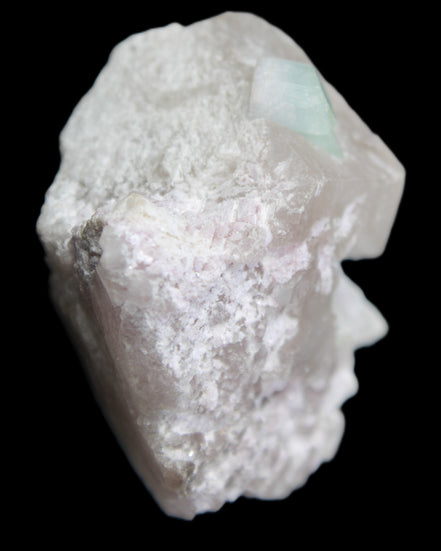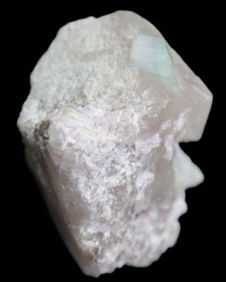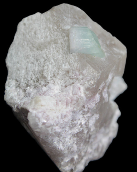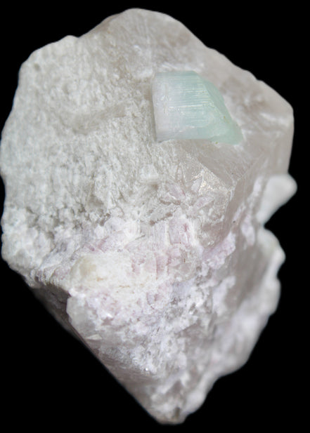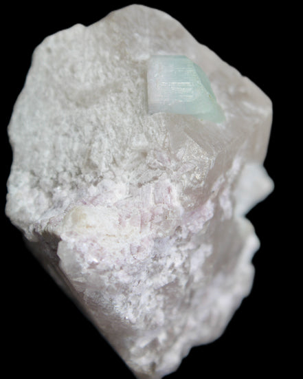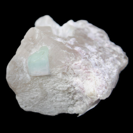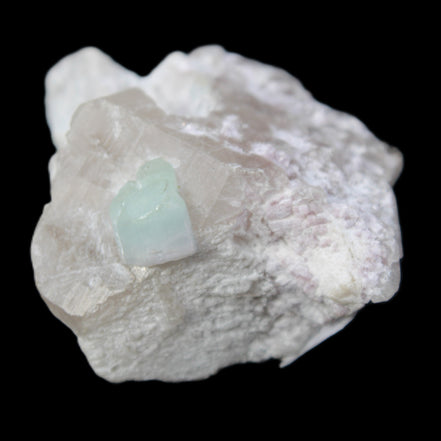 This Aquamarine/Morganite crystal on Quartz and Mica matrix 47*45*29mm weighs 420.5ct or 84.1g. The multi-terminated Beryl crystal is Aquamarine at its tip and Morganite at is base. This great specimen was obtained in Afghanistan for Rocks and Things Store by Lawrence Handicrafts.