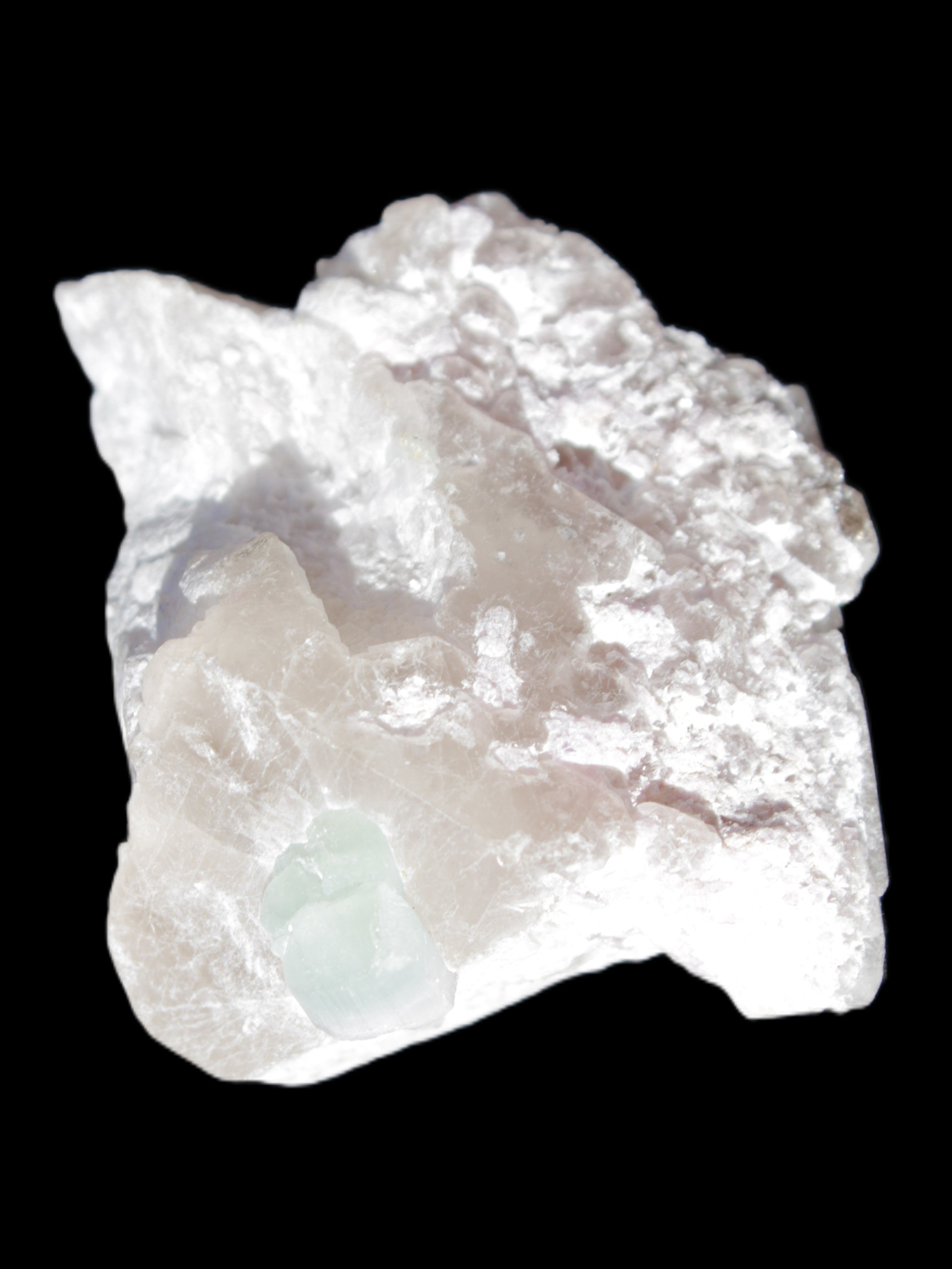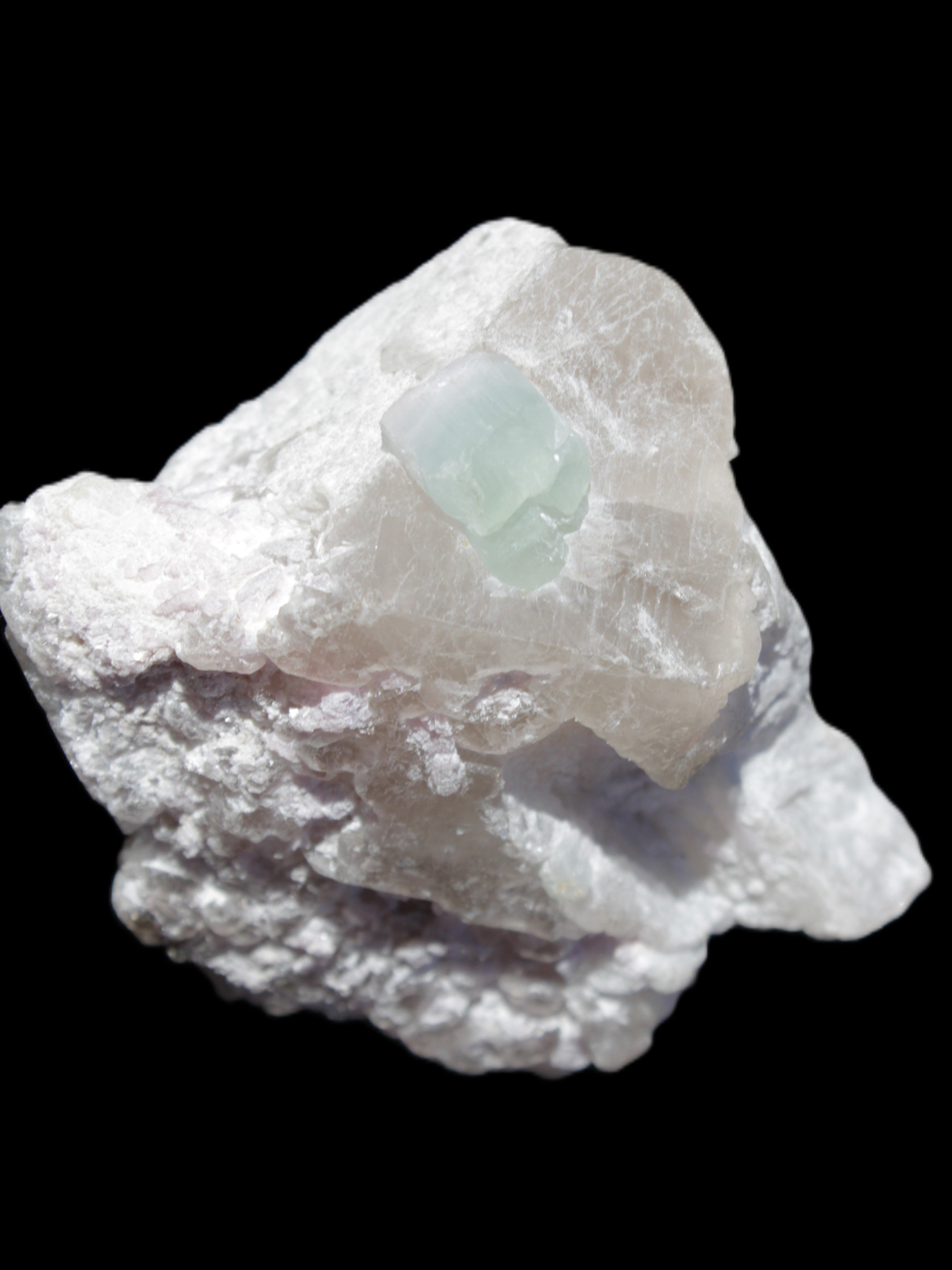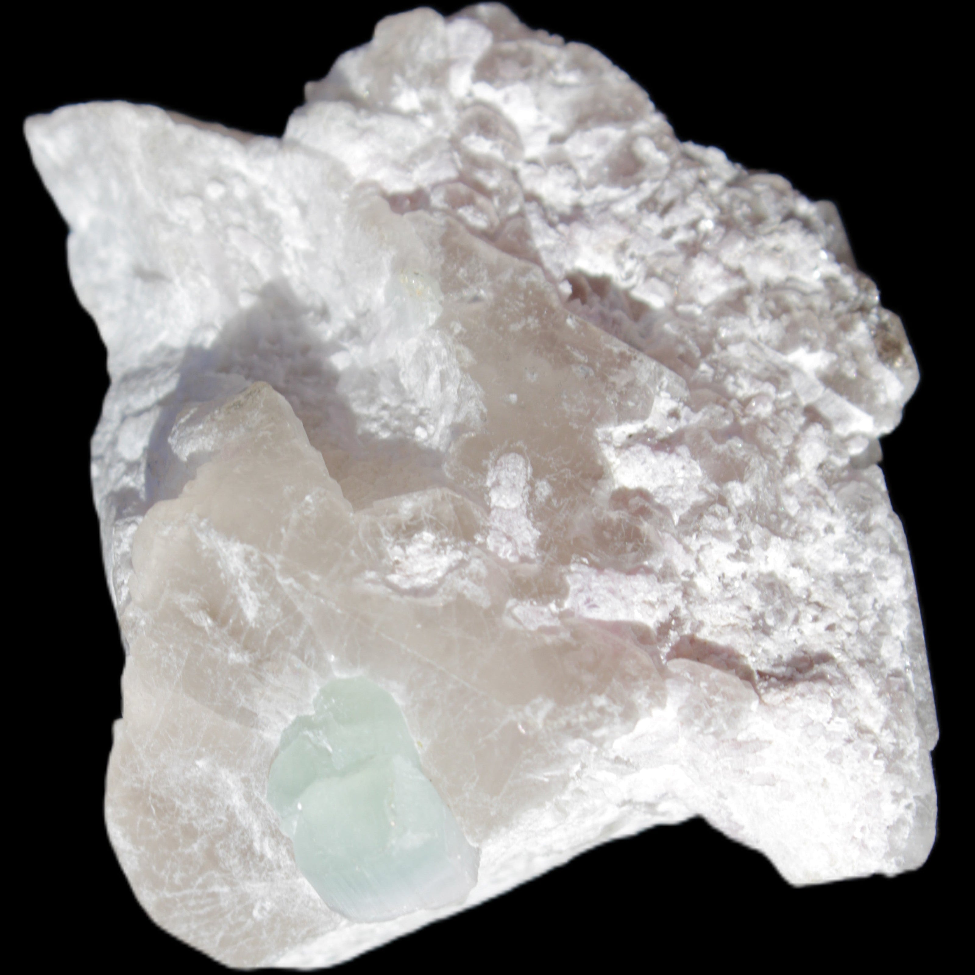 Aquamarine/Morganite crystal on Quartz and Mica matrix 47*45*29mm 420.5ct 84.1g in sunlight - Rocks and Things Store