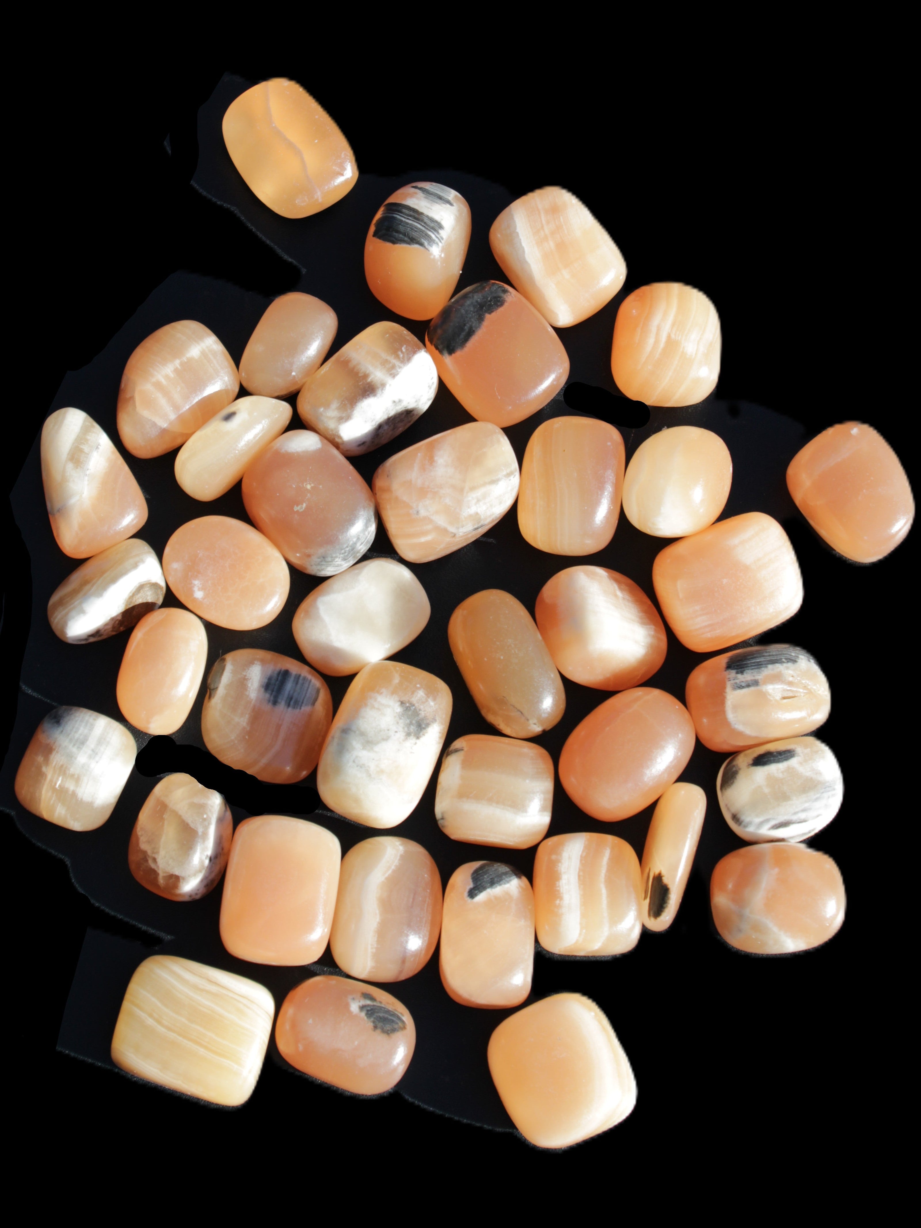 This Banded Honey Topaz Calcite 38 tumbled stones 22*12mm - 30*22mm wholesale lot weighs 734g. This lot is direct from Pakistan, sourced by our partner in Karachi, Lawrence Handicrafts. The glowing warmth of this stone brings a strong energising connection with Mother Earth. This is a motivating energy from the grounding connection. Combined with the symbolism and power of the skull shape, this energy fills us up with the urge to get started and go.