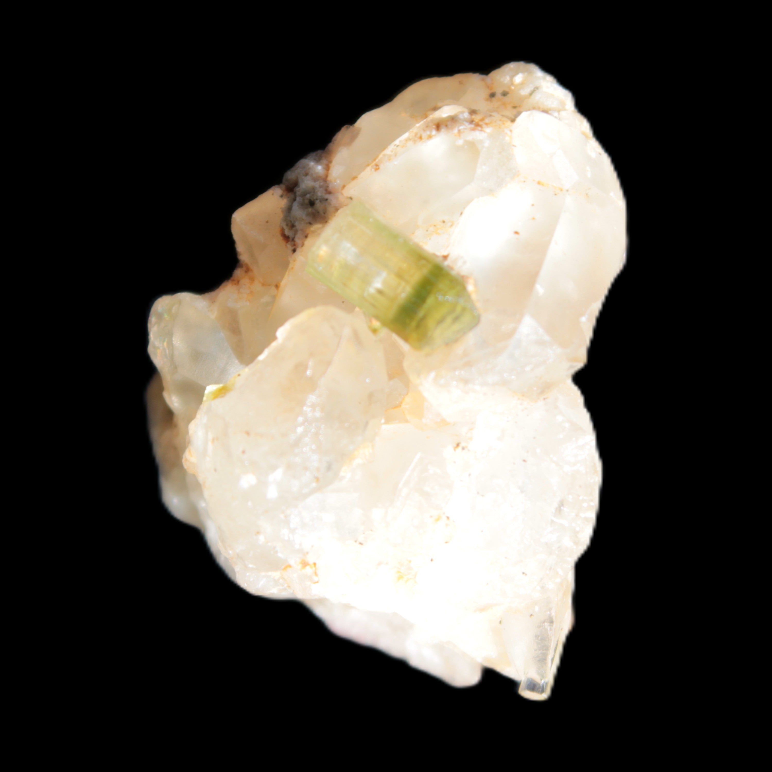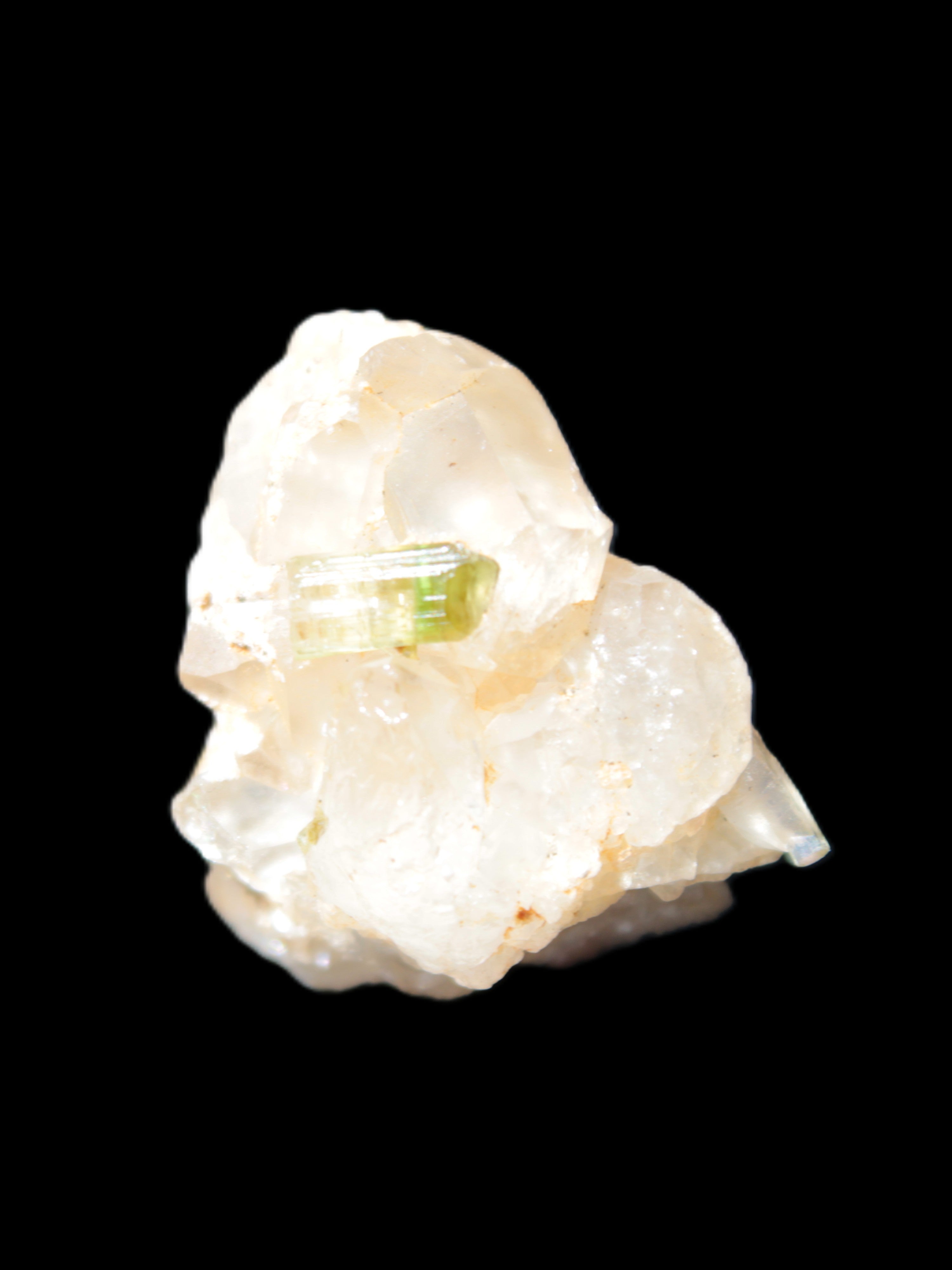 This Bi-Colour Green Tourmaline crystal in matrix specimen weighs 73ct or 19g. This specimen is from Afghanistan. It is 35 mm wide. Green Tourmaline is a complex lithium rich borosilicate mineral and member of the Tourmaline family. It crystallizes in the form of elongated rods or triangular and pyramidal crystals. It is usually associated with Quartz. Green Tourmaline is a powerful heart-activation stone. It brings invigorating energy of growth and expansion to the emotional body. The resonance of Green Tourmaline aligns with the heart chakra, helping to calm the nervous system and emotions.