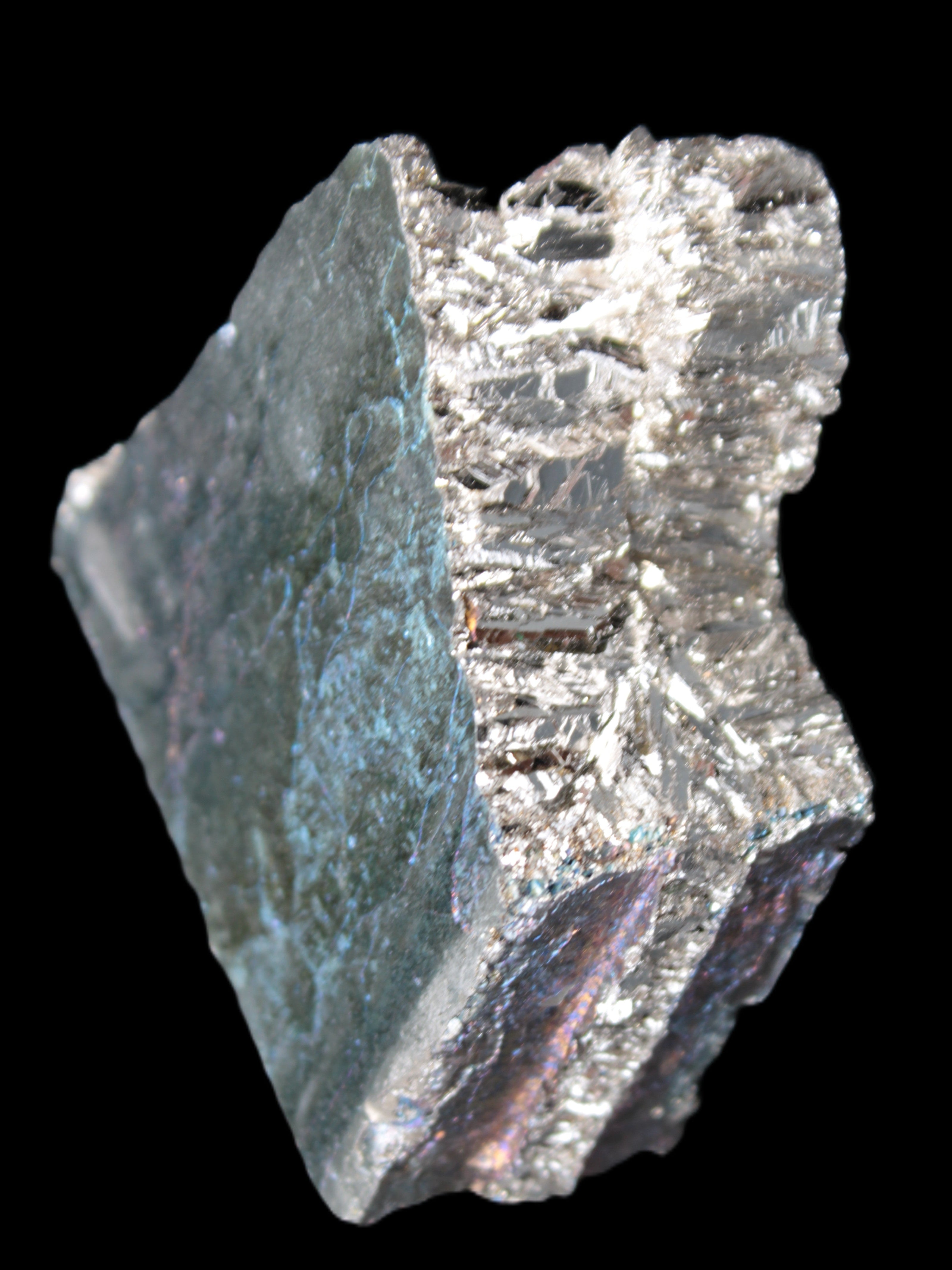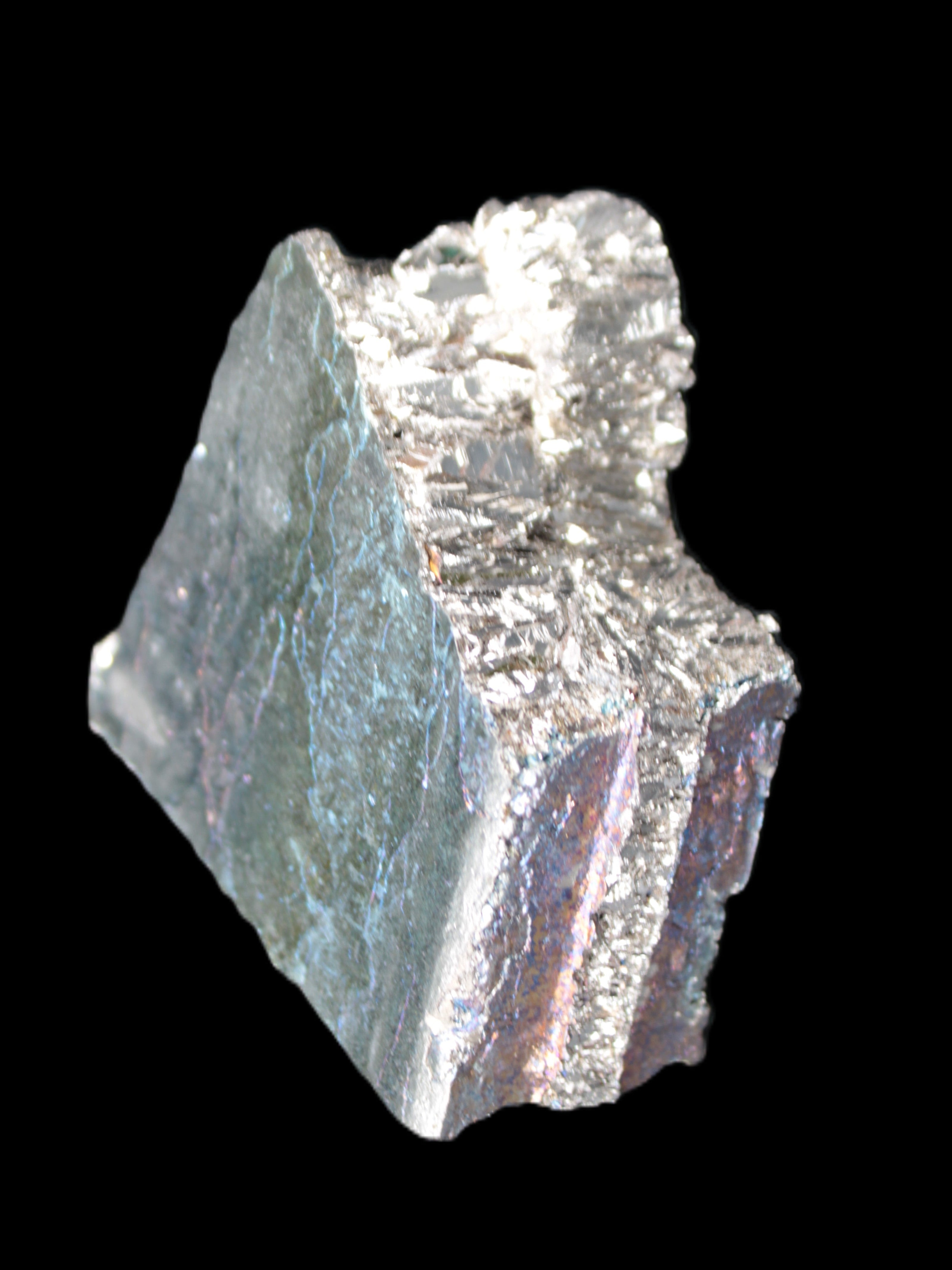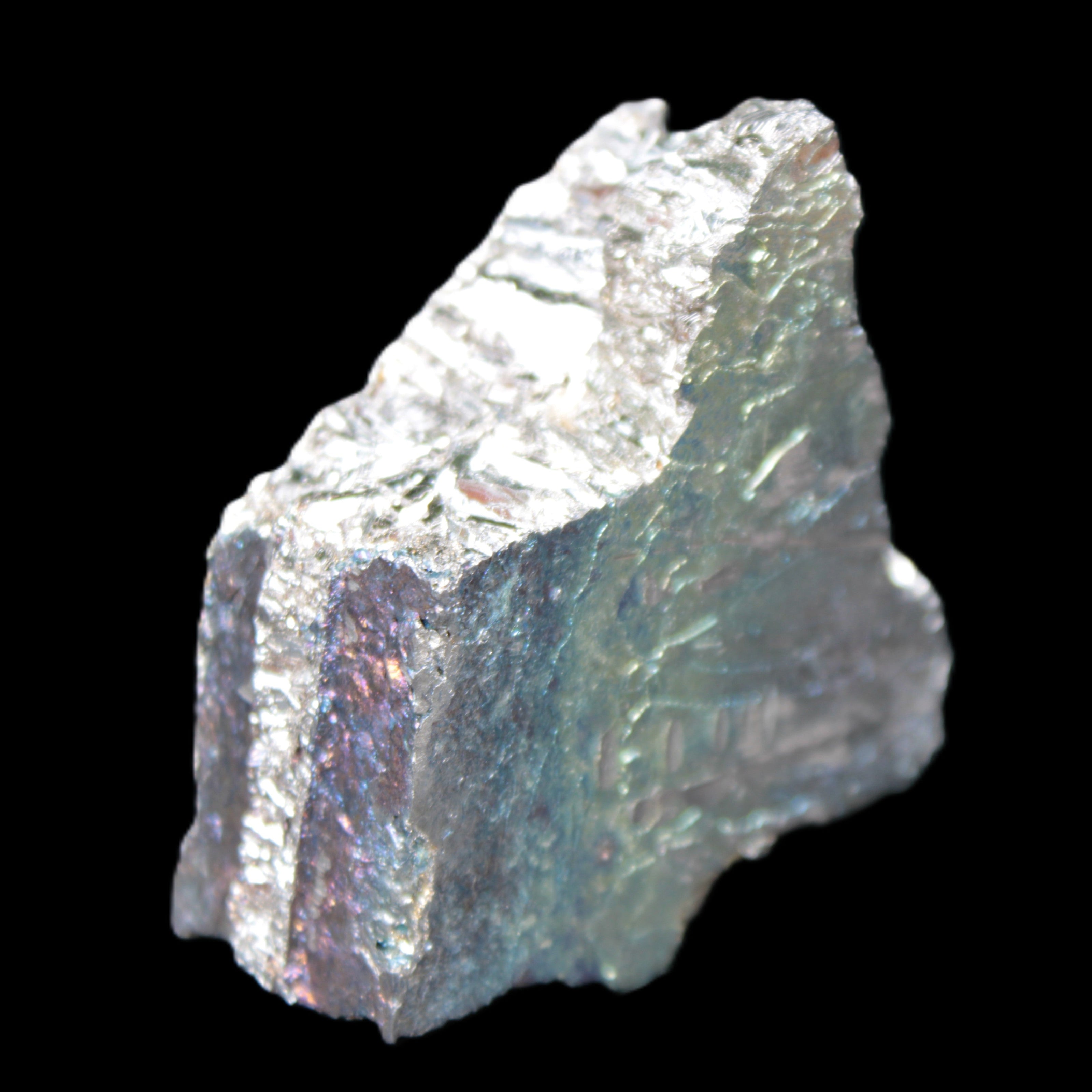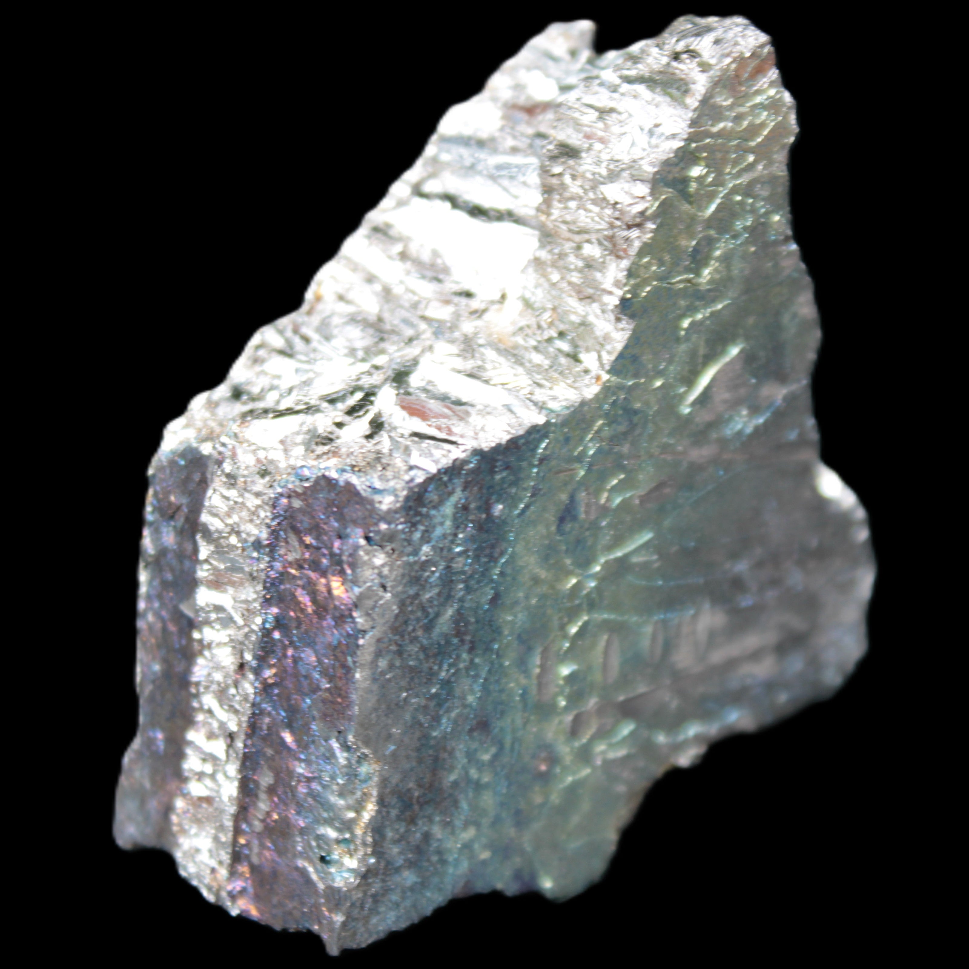 This large Bismuth ingot weighs 847.8g. Bismuth is a crystalline, brittle metalloid, number 83 on the Periodic Table. It is silvery-white with an iridescent hue. This Bismuth ingot has been refined through metallurgical processes. This processing ensures its purity.
