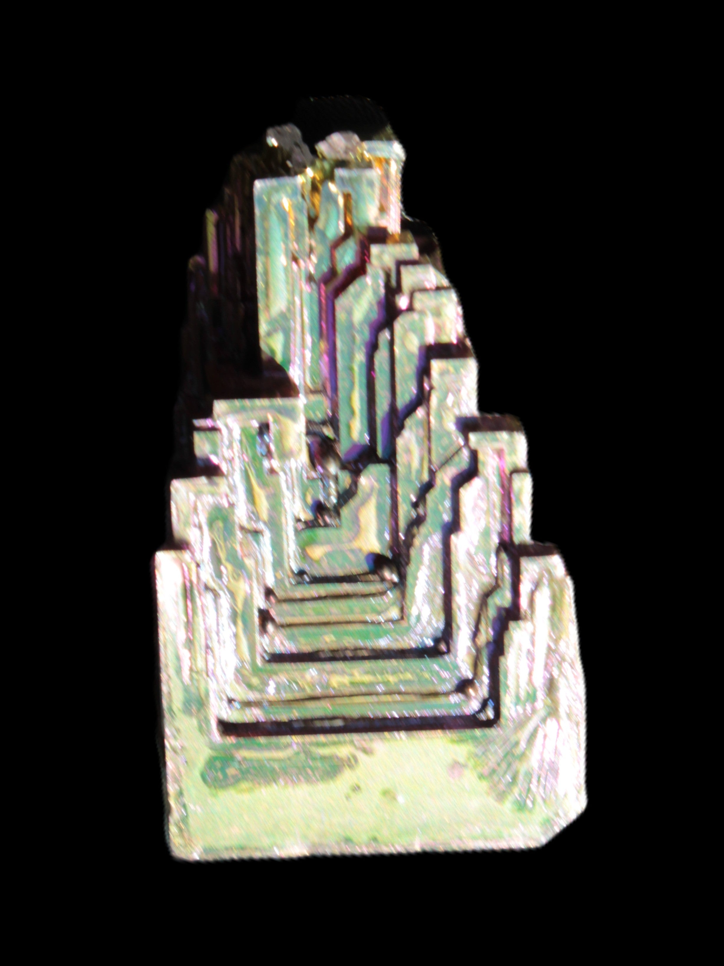 Rainbow coloured Bismuth is a wonderful stone for focus, visualization and shamanic journeying. Bismuth can prevent all your responsibilities overwhelming you, while increasing your energy levels to deal with them at the same time. Bismuth relieves feelings of isolation or loneliness. It is a stone of transformation and change, helping you to adapt to change with calm and assurance. In interpersonal relationships, Bismuth encourages cohesiveness. This can make it very helpful for working through group and/or relationship dynamics.