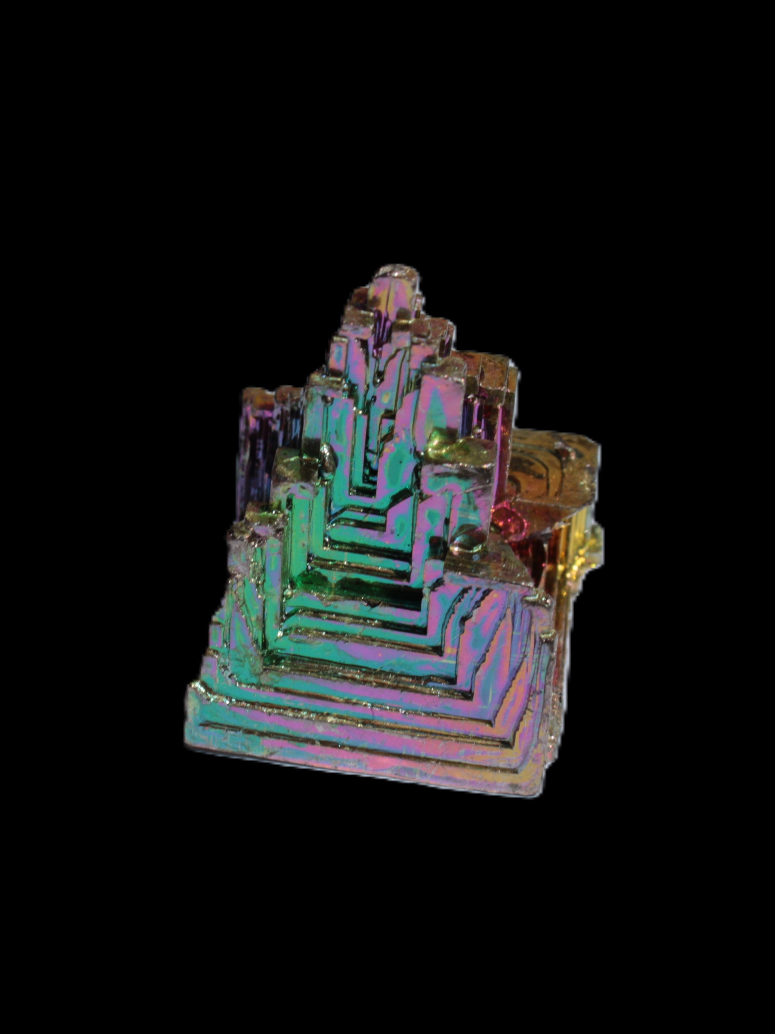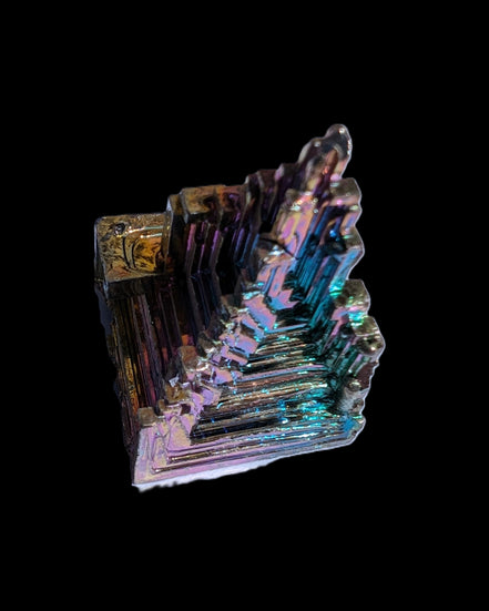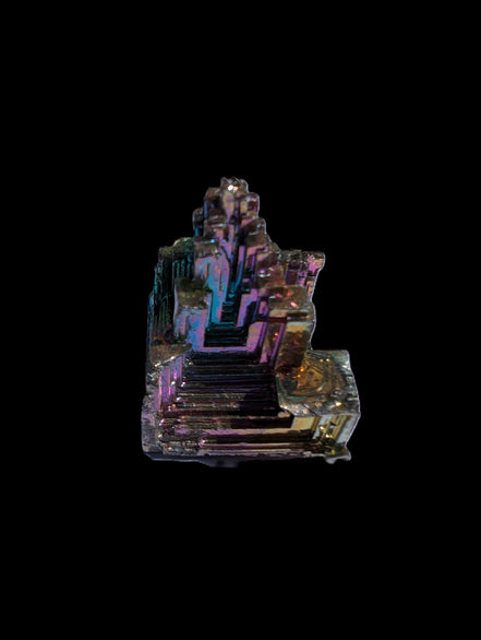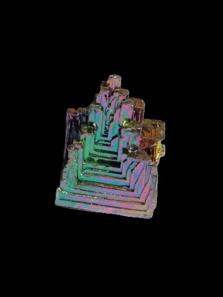 Rainbow coloured Bismuth is a wonderful stone for focus, visualization and shamanic journeying. Bismuth can prevent all your responsibilities overwhelming you, while increasing your energy levels to deal with them at the same time. Bismuth relieves feelings of isolation or loneliness. It is a stone of transformation and change, helping you to adapt to change with calm and assurance. In interpersonal relationships, Bismuth encourages cohesiveness. This can make it very helpful for working through group and/or relationship dynamics.