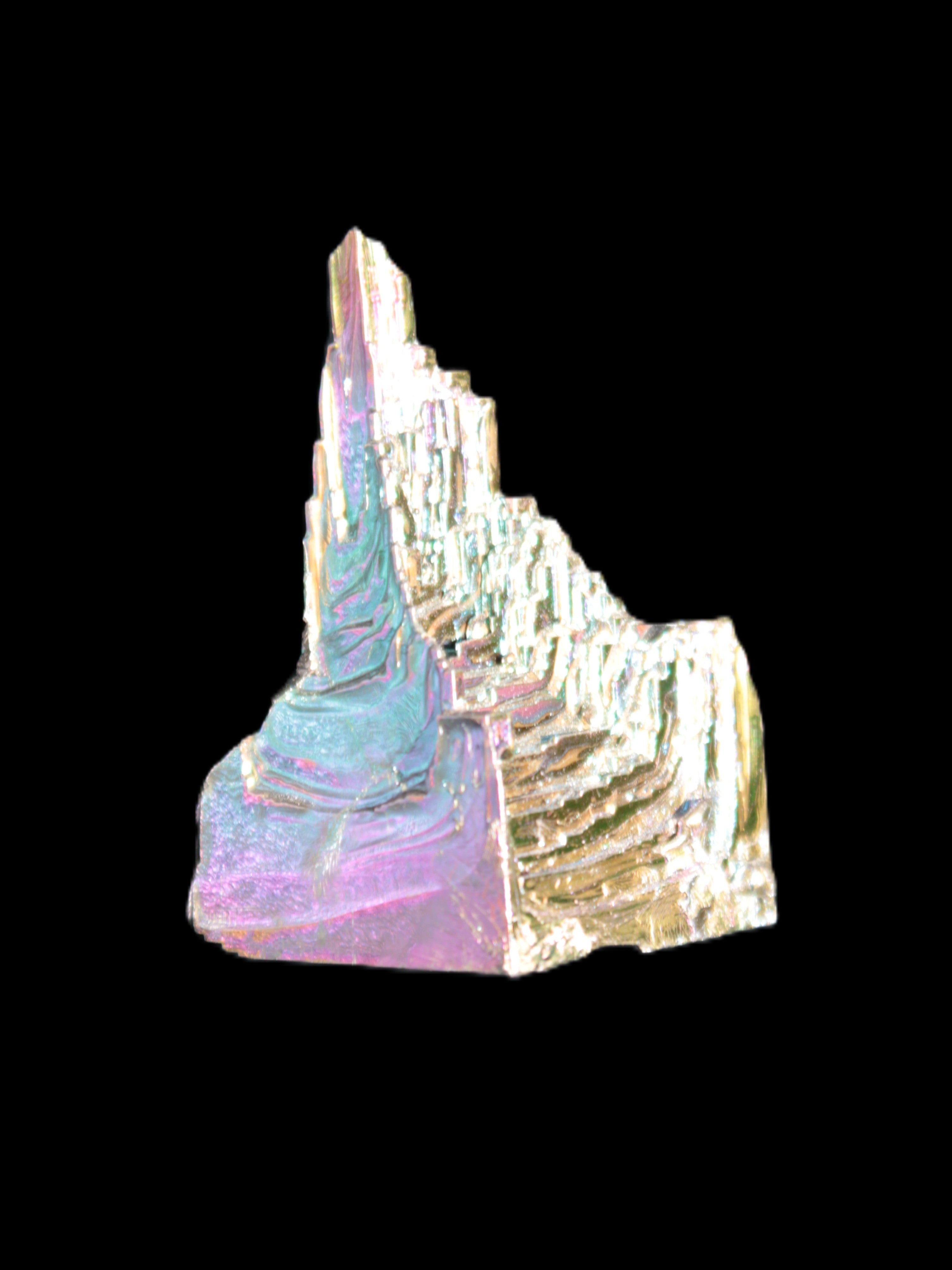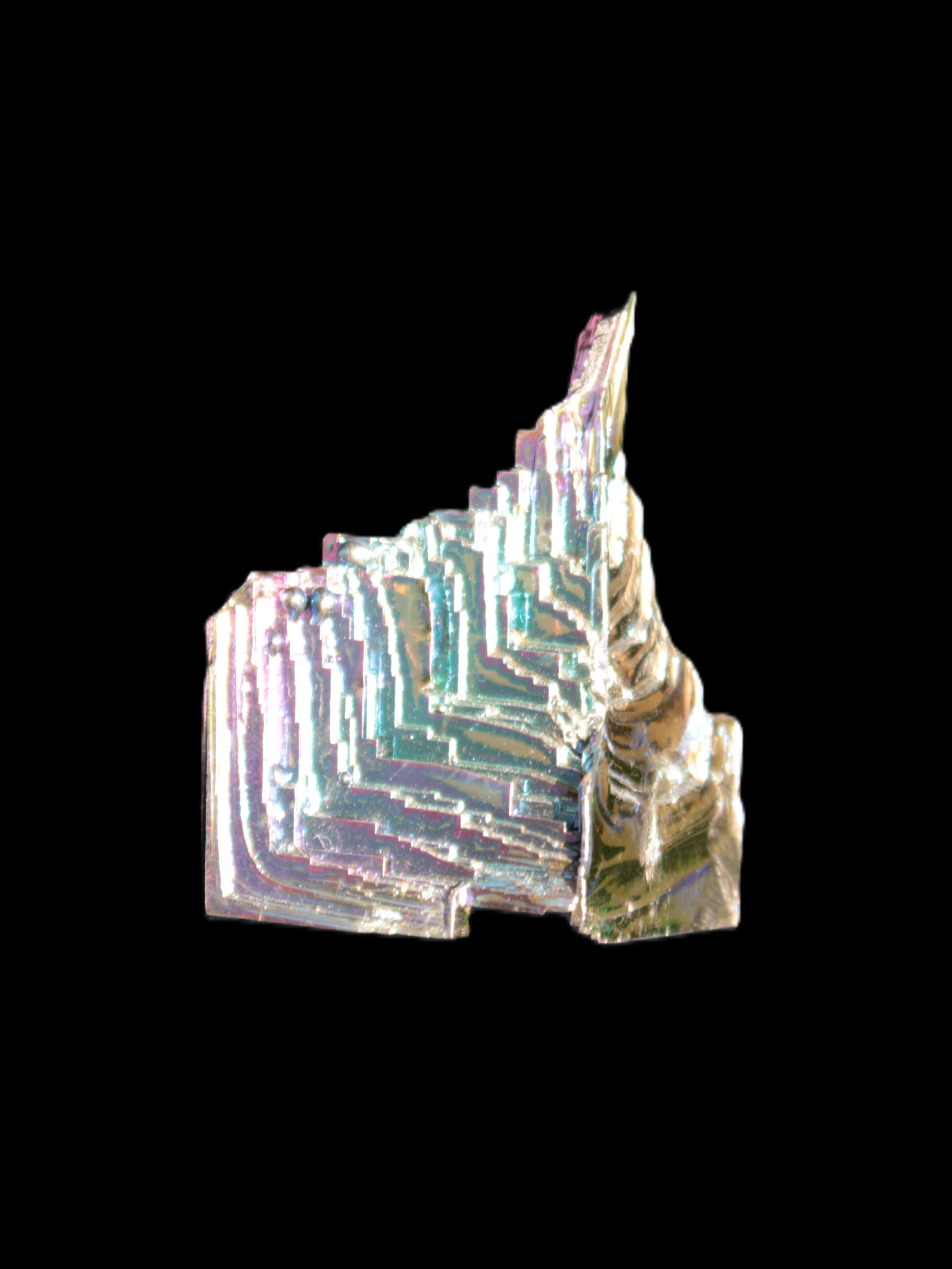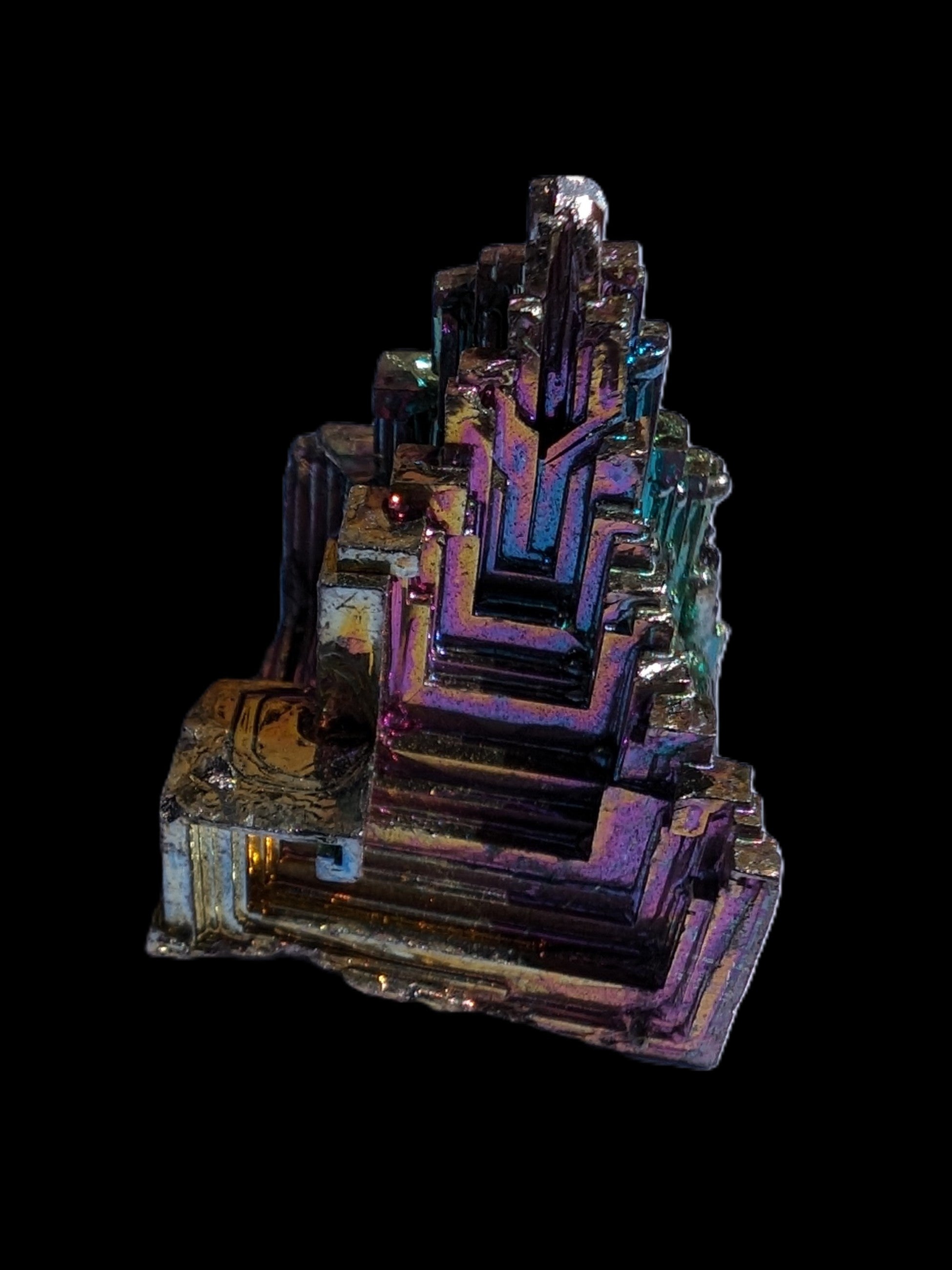 This Bismuth castle crystal 26-41g selection features this amazing metalloid with its crystal formation. Bismuth is a crystalline, brittle metalloid, number 83 on the Periodic Table. It is silvery-white with an iridescent hue. These Bismuth crystals have been lab-created.