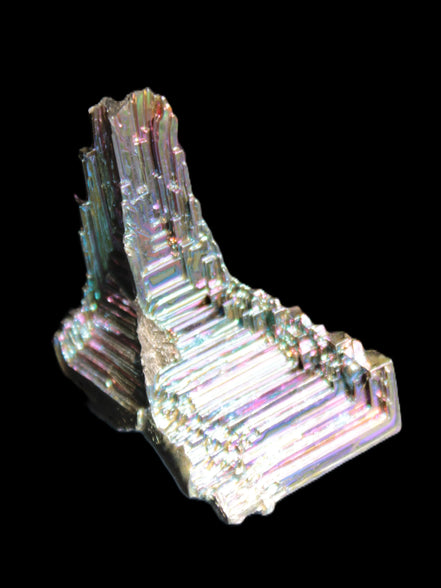 Rainbow coloured Bismuth is a wonderful stone for focus, visualization and shamanic journeying. Bismuth can prevent all your responsibilities overwhelming you, while increasing your energy levels to deal with them at the same time. Bismuth relieves feelings of isolation or loneliness. It is a stone of transformation and change, helping you to adapt to change with calm and assurance. In interpersonal relationships, Bismuth encourages cohesiveness. This can make it very helpful for working through group and/or relationship dynamics.
