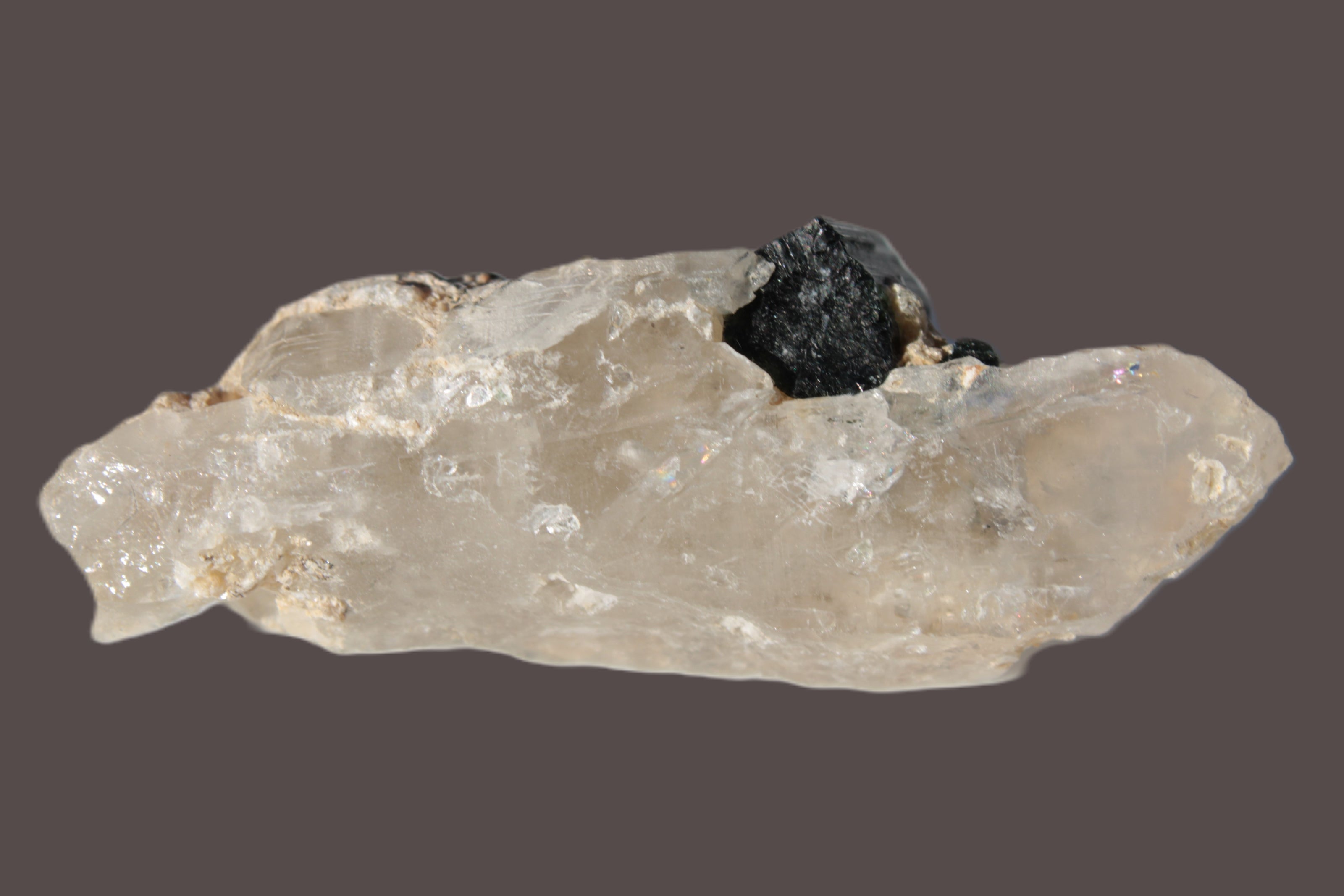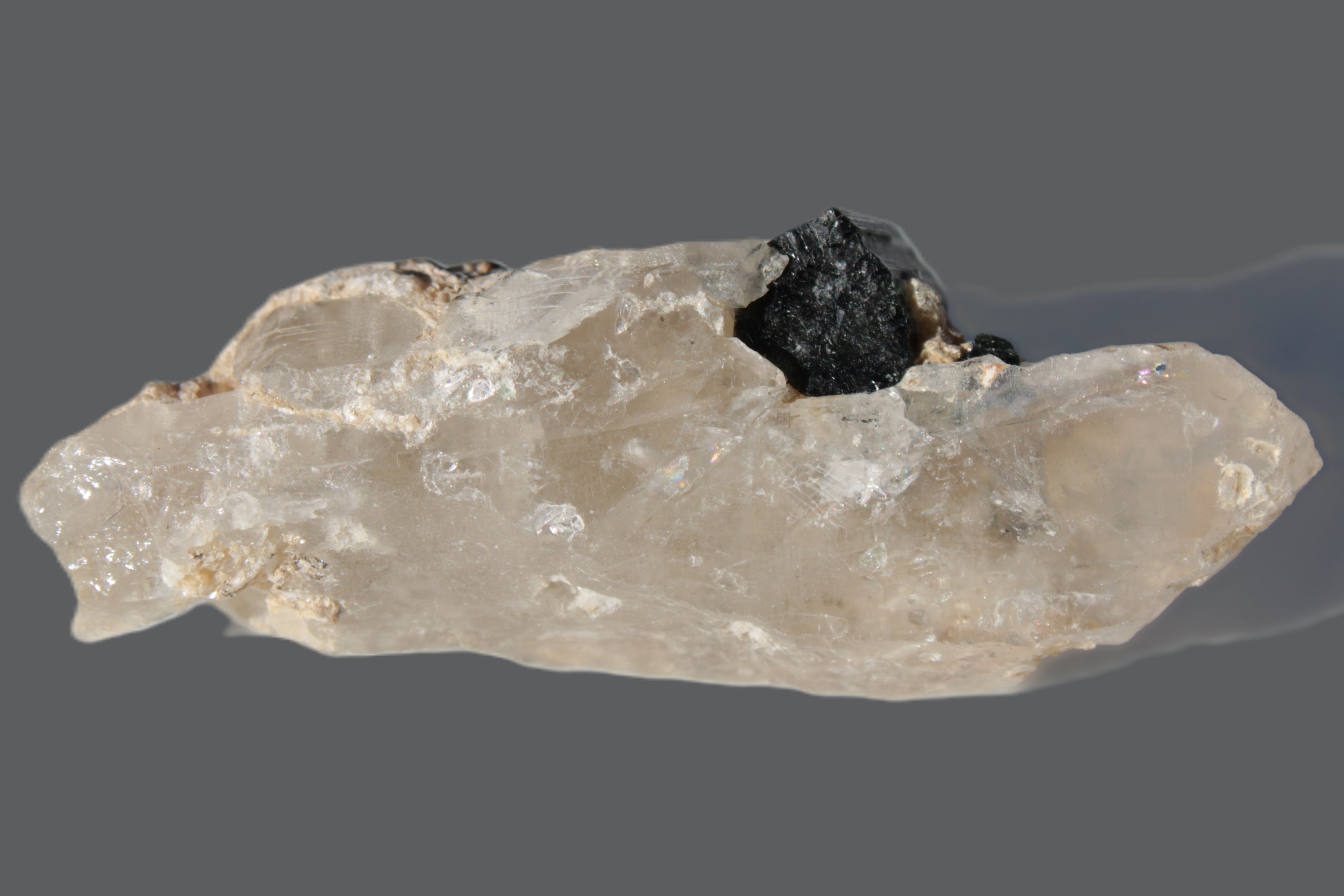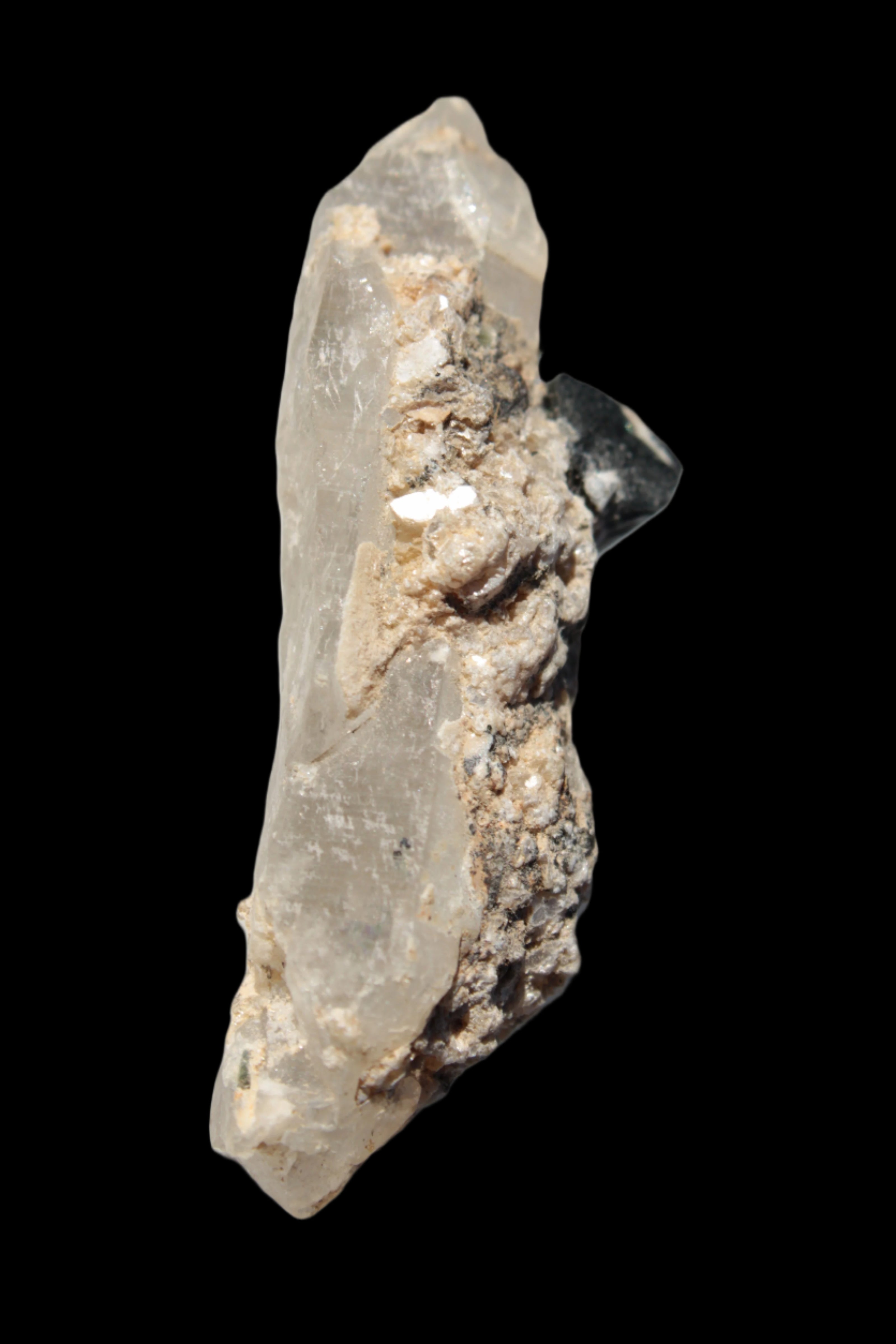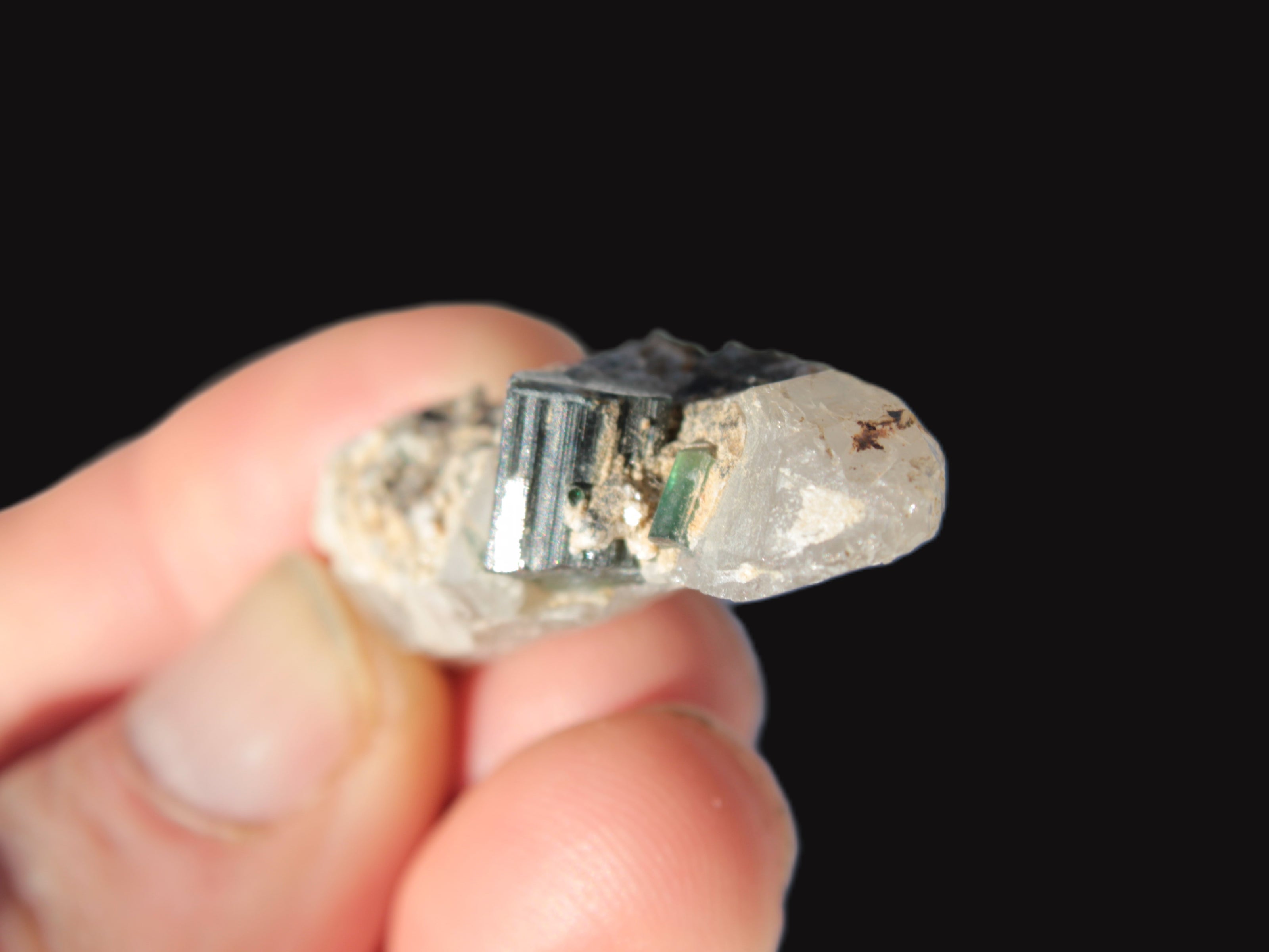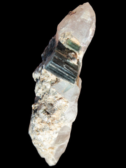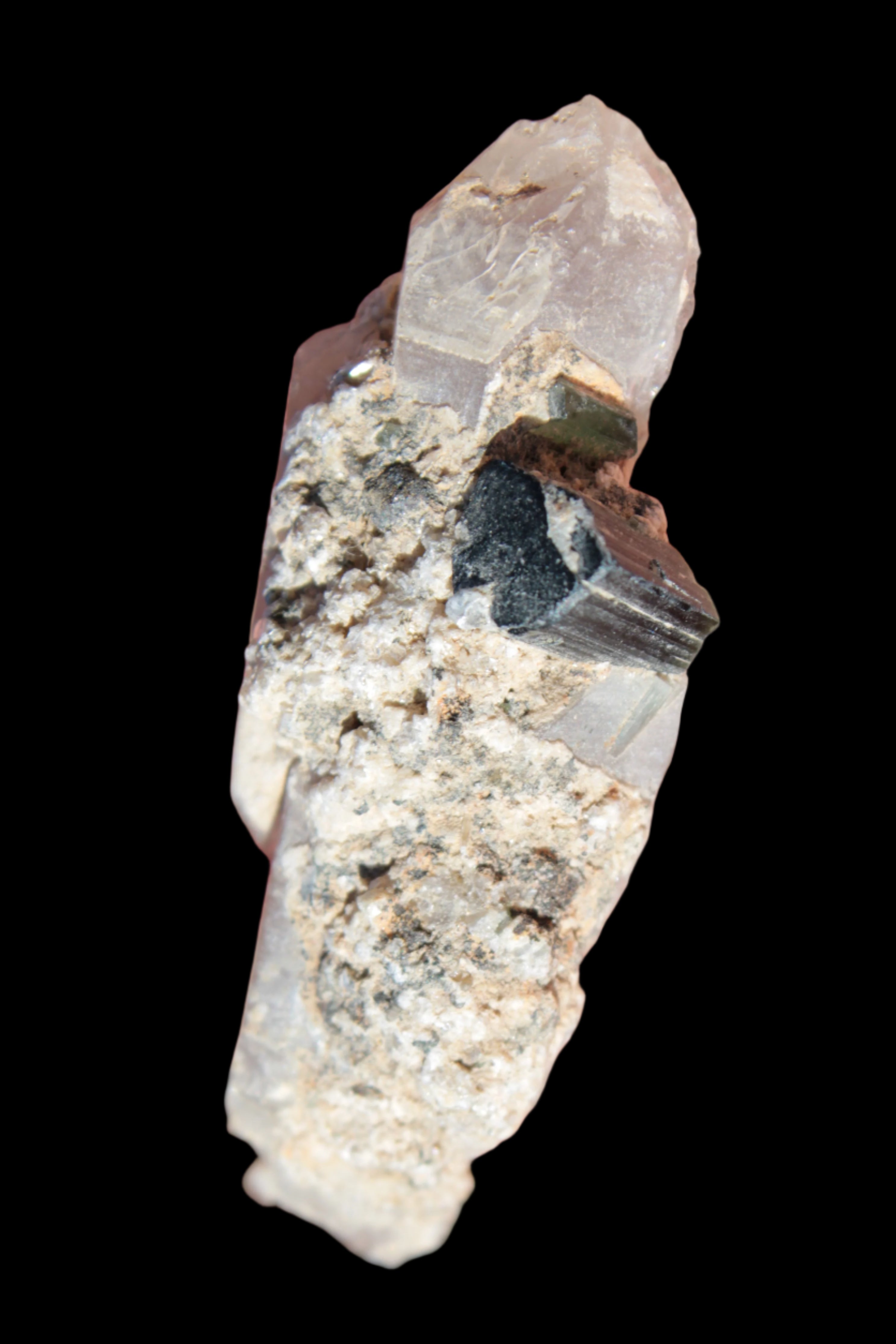 Black & Green Tourmaline on elestial Smoky Quartz crystal with Calcite, Afghanistan 13.4g