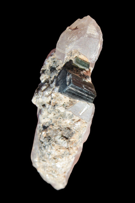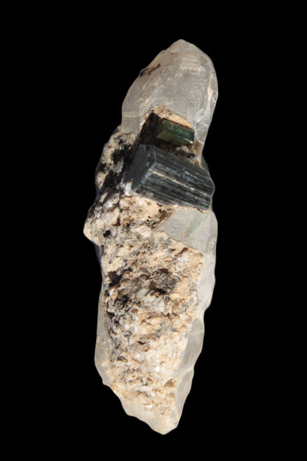 Black & Green Tourmaline on elestial Smoky Quartz crystal with Calcite from Afghanistan 67.3ct 13.4g - Rocks and Things Store