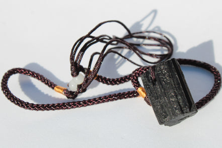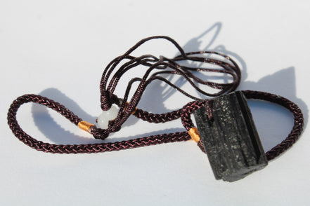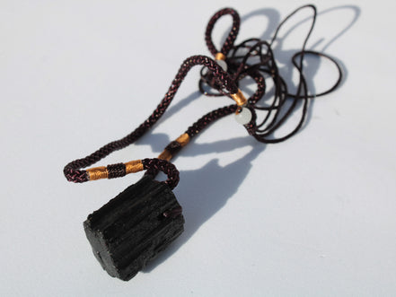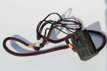 This Black Tourmaline pendant necklace adjustable selection weighs 15-20g. These are perfect if you are looking to take Tourmaline's protection with you. It is a well-made adjustable pendant from India.