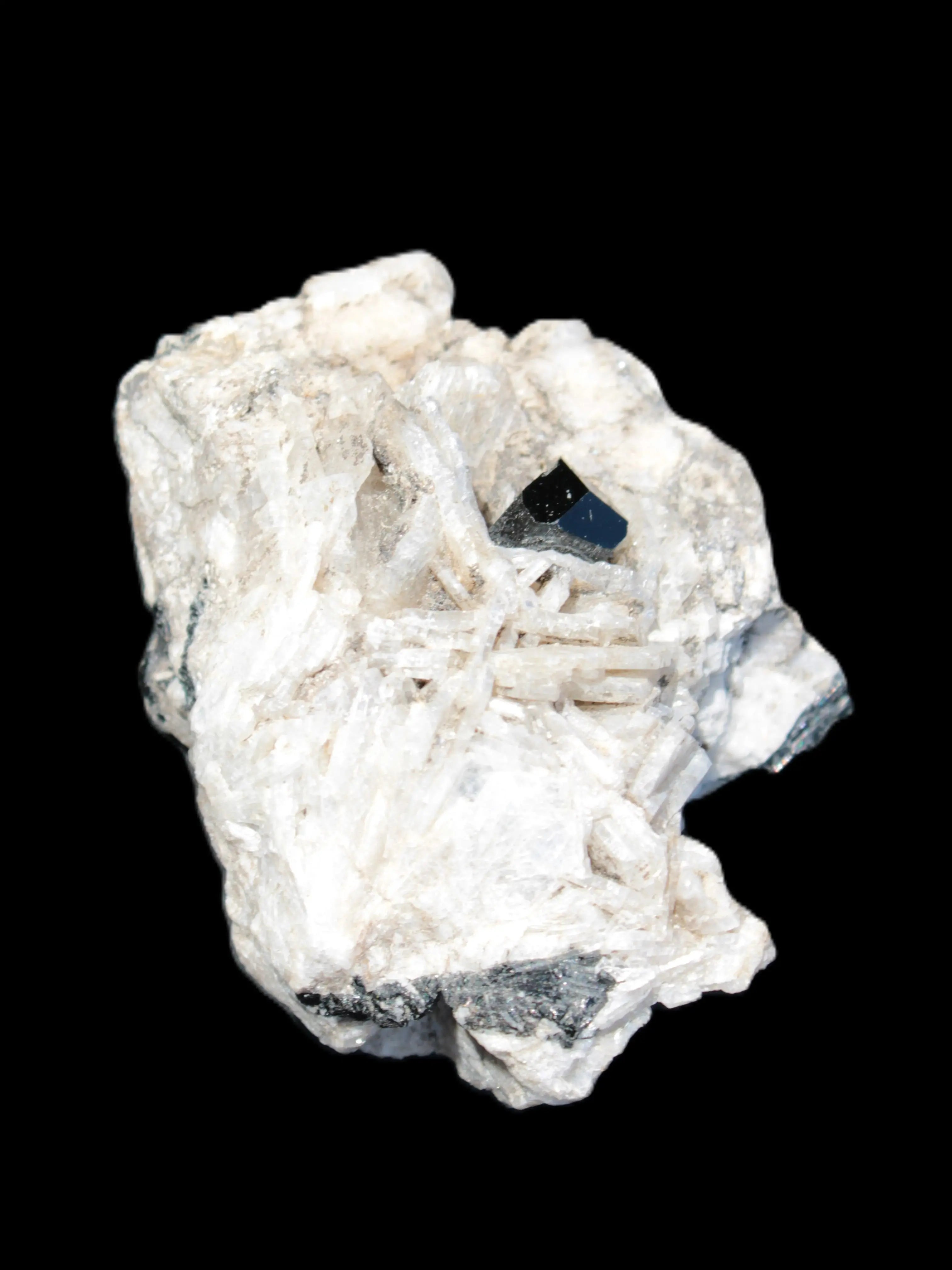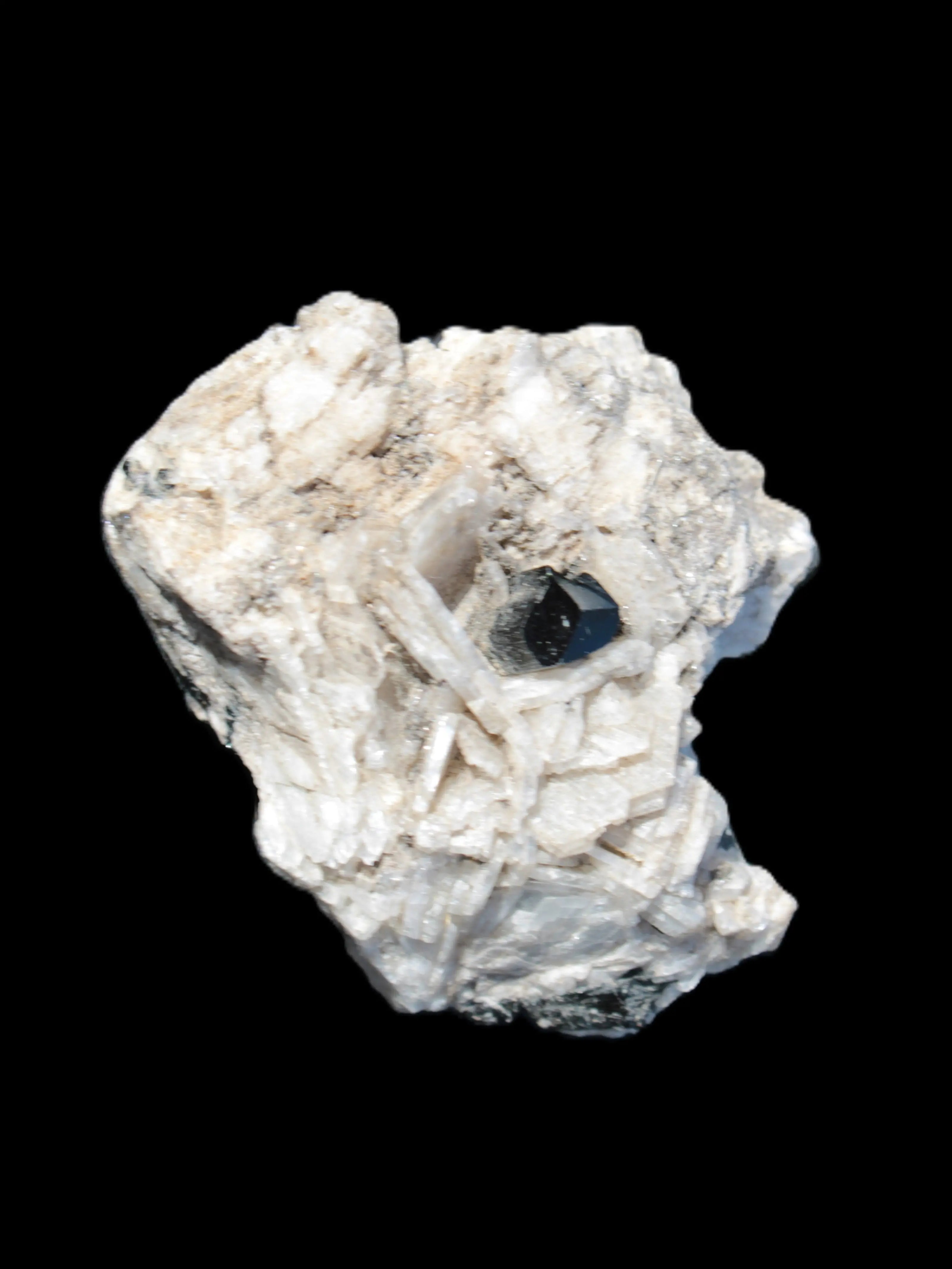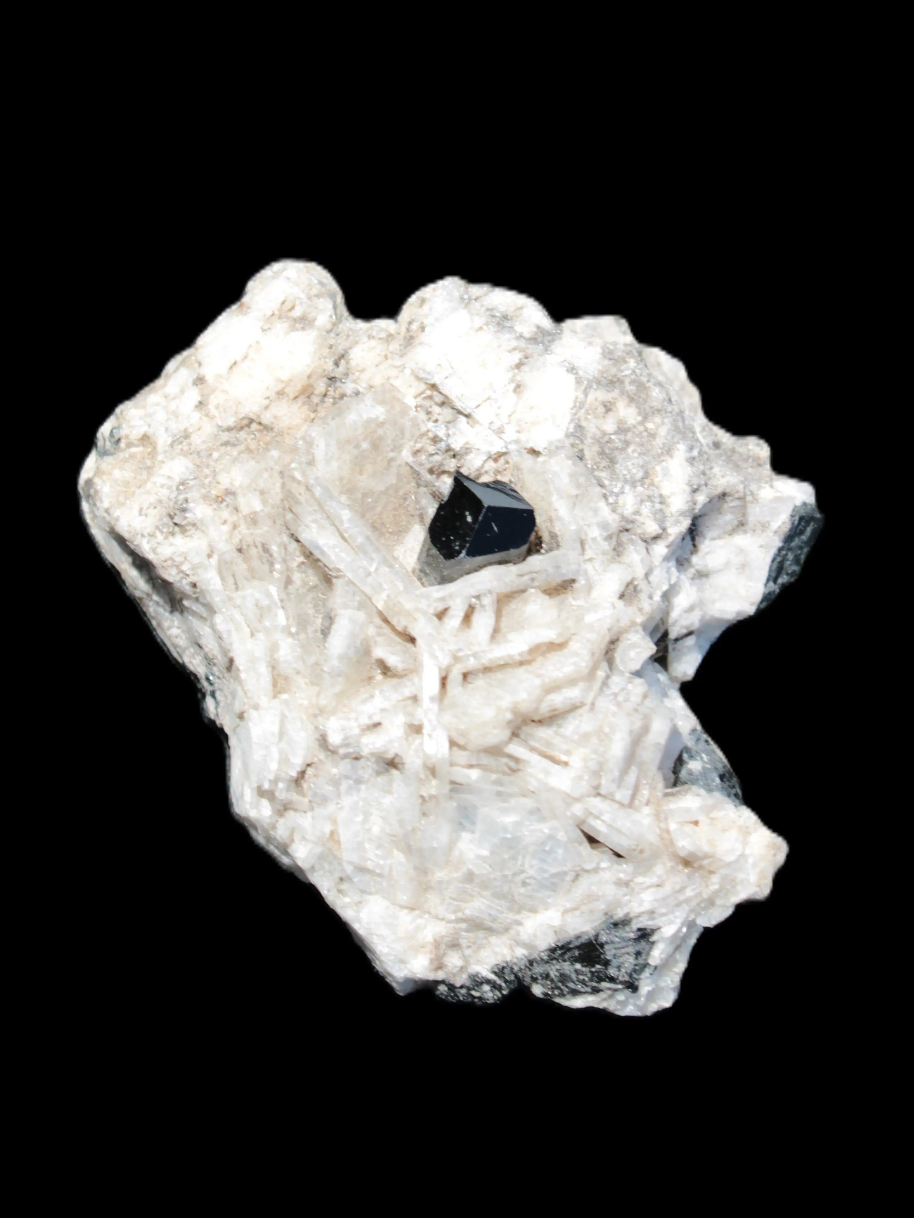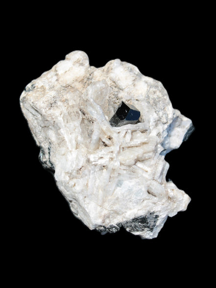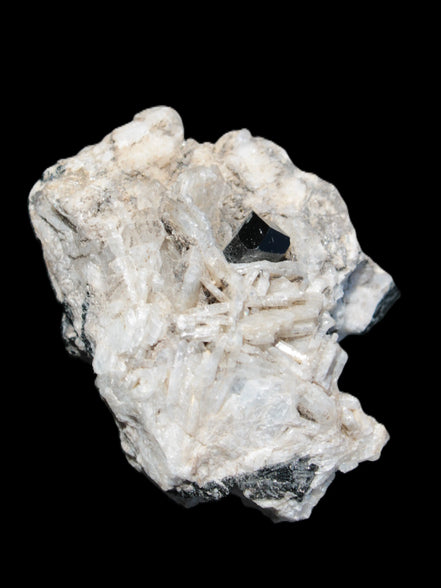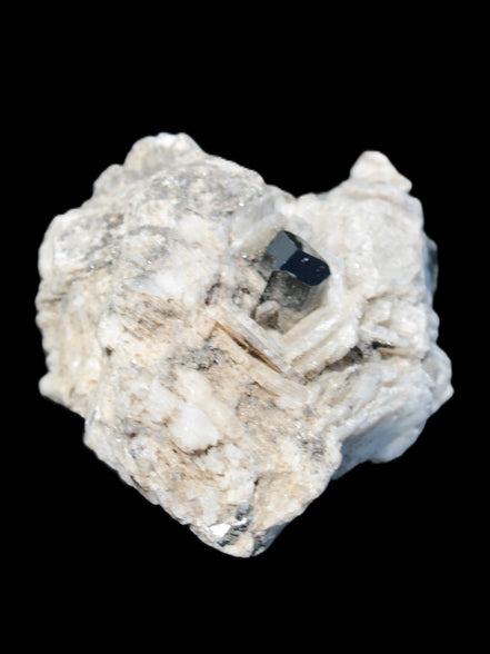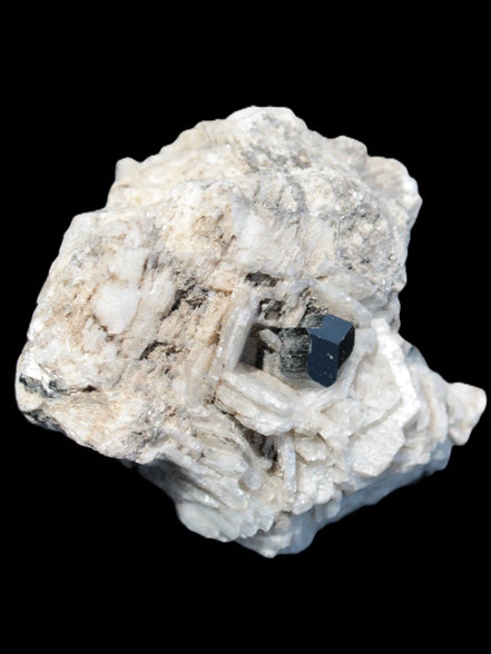 This Black Tourmaline pyramidal terminated crystal in Mica, Feldspar matrix 144.7g is from Skardu, Pakistan. This amazing specimen was obtained locally in Pakistan for Rocks and Things Store by our partner, Lawrence Handicrafts.