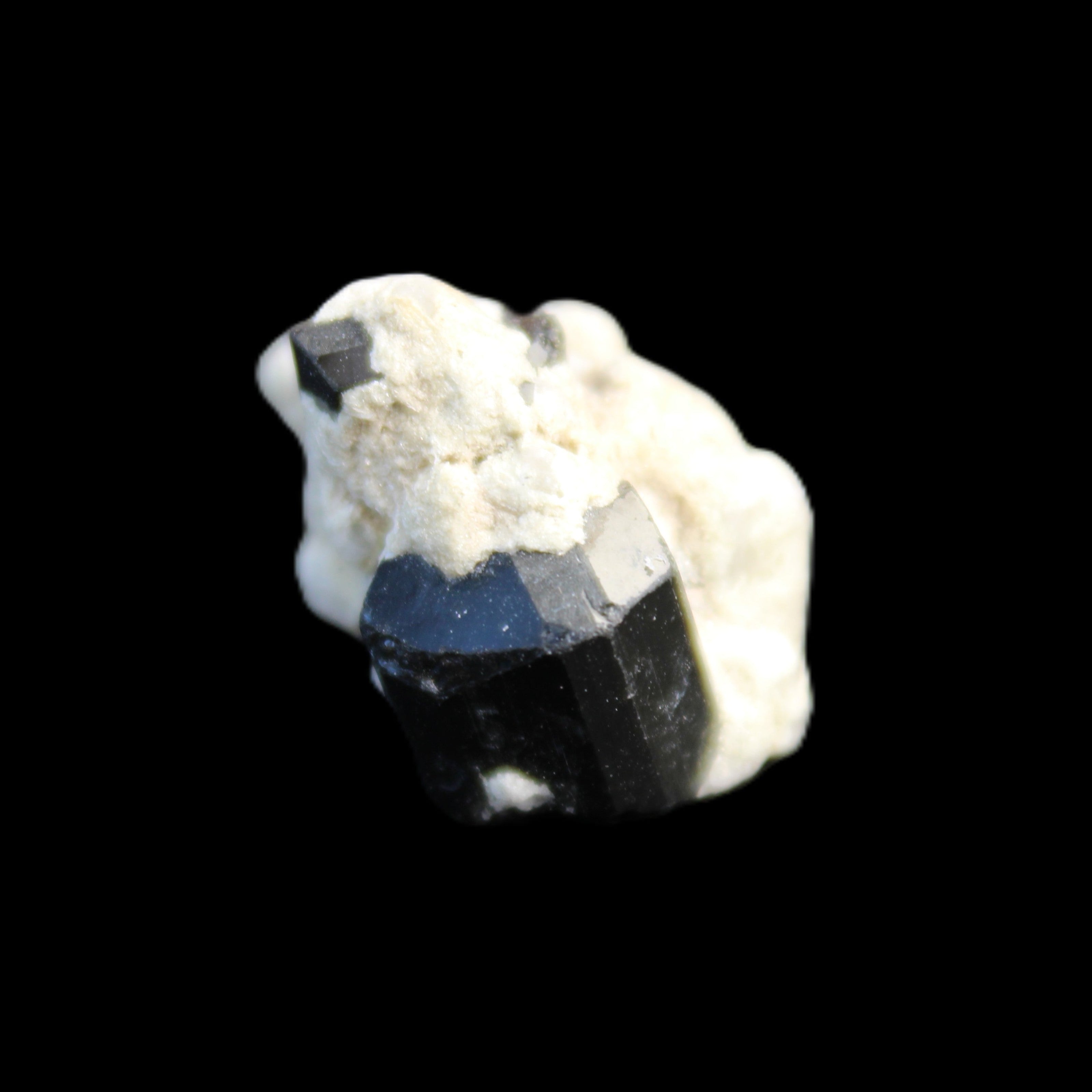 This Black Tourmaline terminated crystal cluster in matrix weighs 6.7g. This great terminated crystal specimen from Pakistan features beautiful rainbow Black Tourmaline. The mineral name for this popular metaphysical stone is Schorl. Black Tourmaline is always a solid black and unlike other tourmaline minerals it is never translucent or transparent. It has a distinctive appearance with glossy long striated crystals.