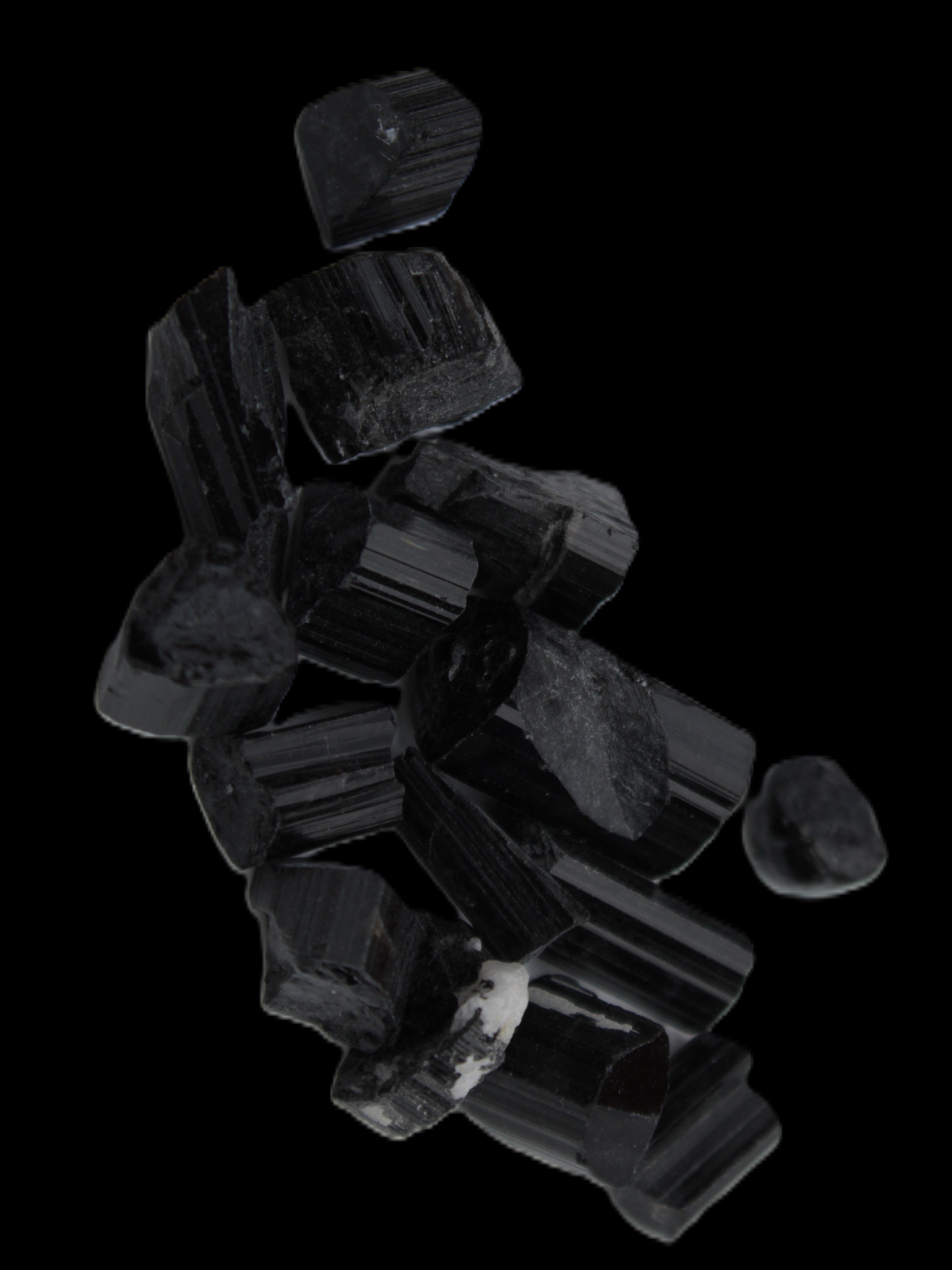Black Tourmaline is one of the most popular metaphysical stones and is one of the key crystals for a healing kit. The mineral name is Schorl. It is an igneous rock that mostly forms in granite pegmatites. Black Tourmaline is always a solid black. Unlike other tourmaline minerals, it is never translucent or transparent. It has a distinctive appearance with glossy long striated crystals. This structure and its other properties generate a strong piezoelectric effect, with electrically charged poles at the crystal’s poles. It is also pyroelectric, generating an electric charge through temperature changes. As a result, Black Tourmaline is a highly protective stone, able to block, repel and transmute negative energies.
