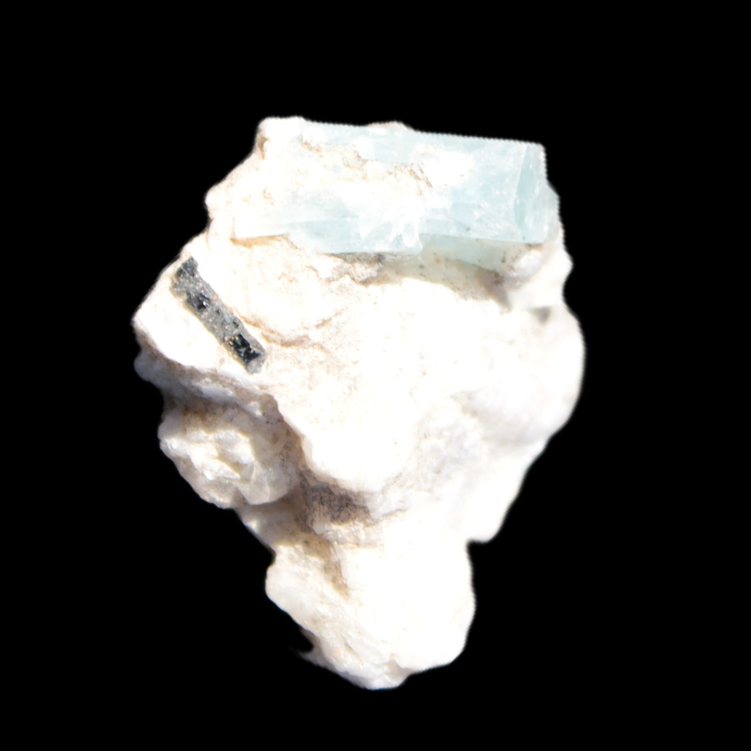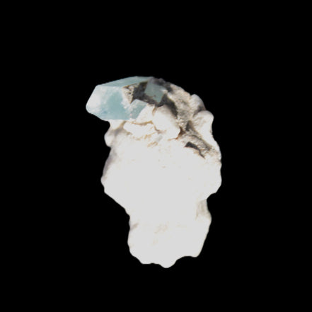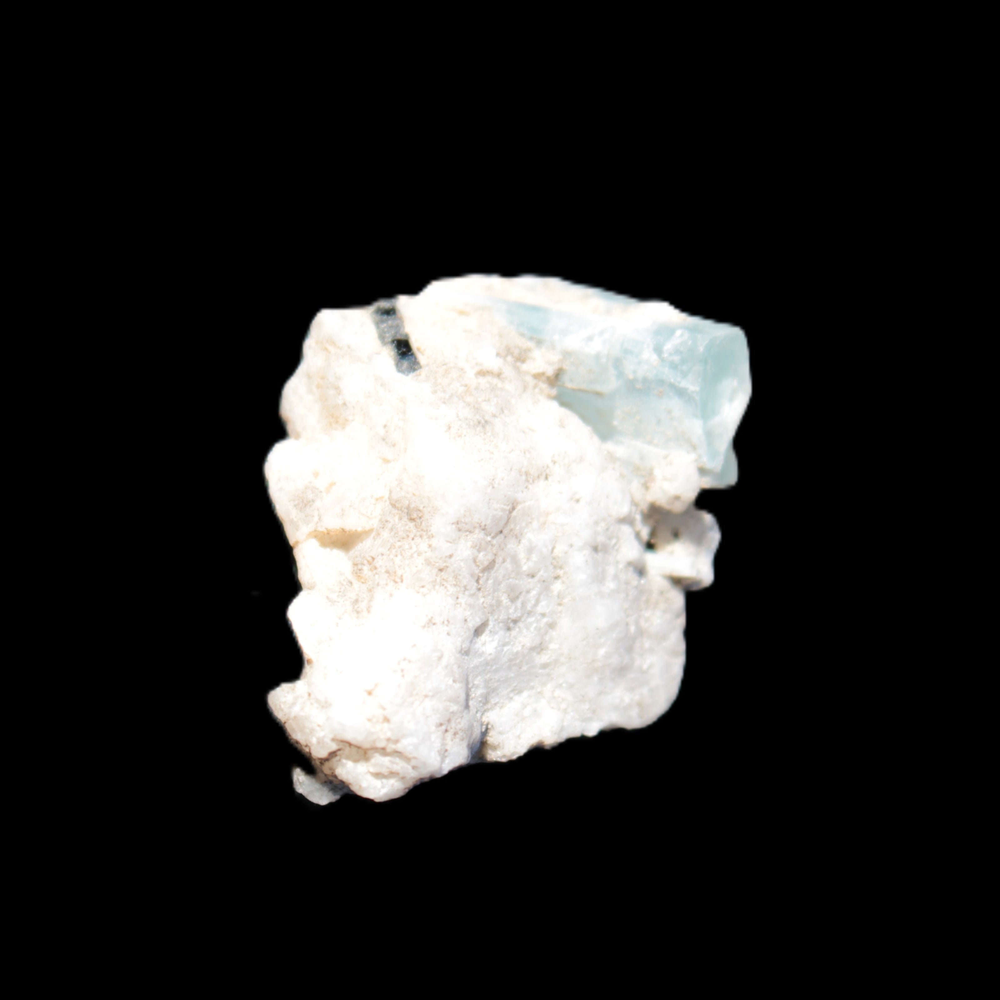This Blue Aquamarine crystal on Mica and Feldspar matrix was sourced in Afghanistan. Our Karachi based partner makes yearly trips to the gem-fields there for Rocks and Things Store. It weighs 8.5g. This specimen is UV reactive.