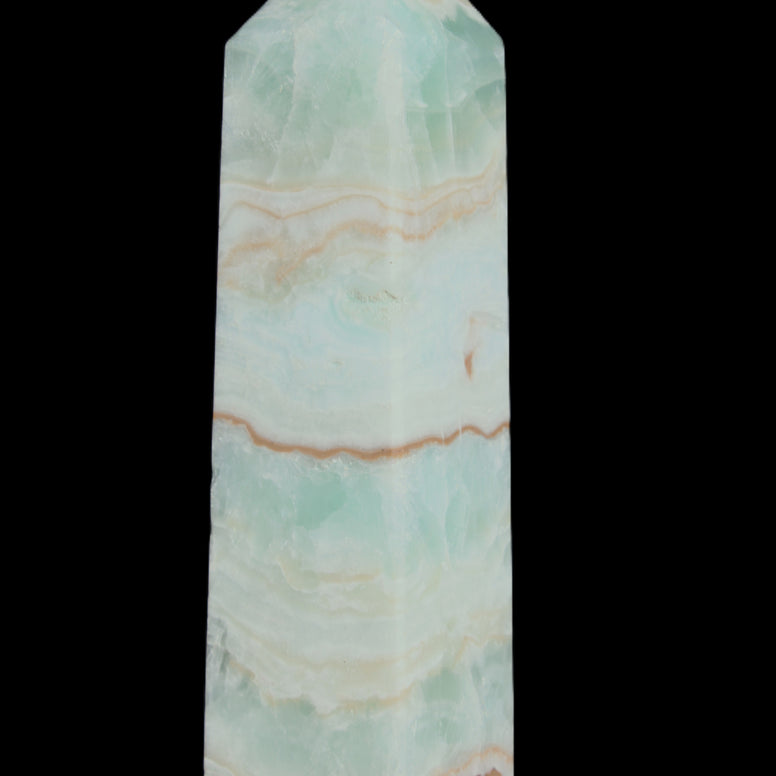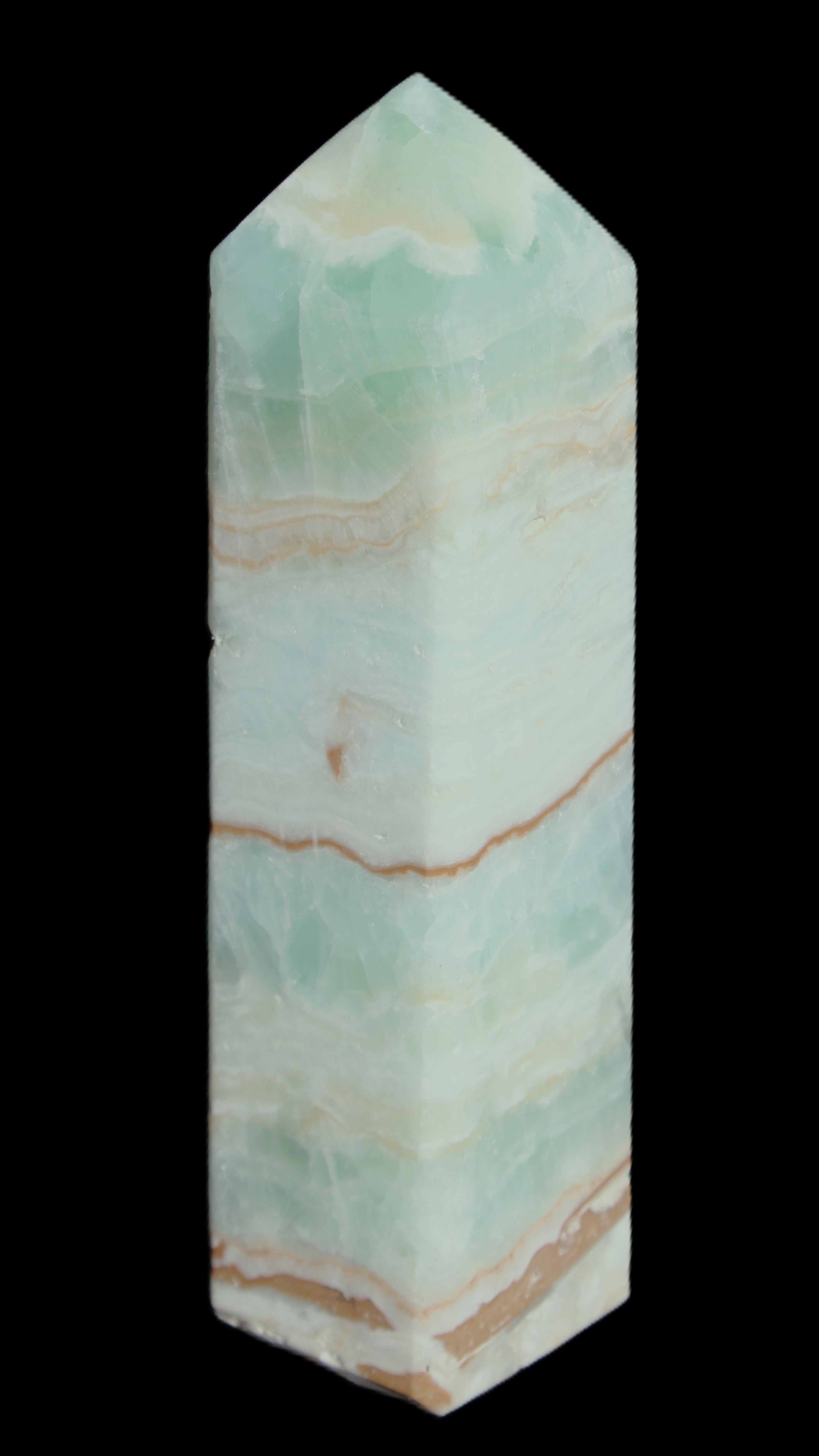 This Blue Aragonite Caribbean Calcite obelisk 140*36*34mm 395g is a lovely example of this wonderful aqua-blue stone. Aragonite is a calcium carbonate mineral, formed in limestone caves and around hot springs.