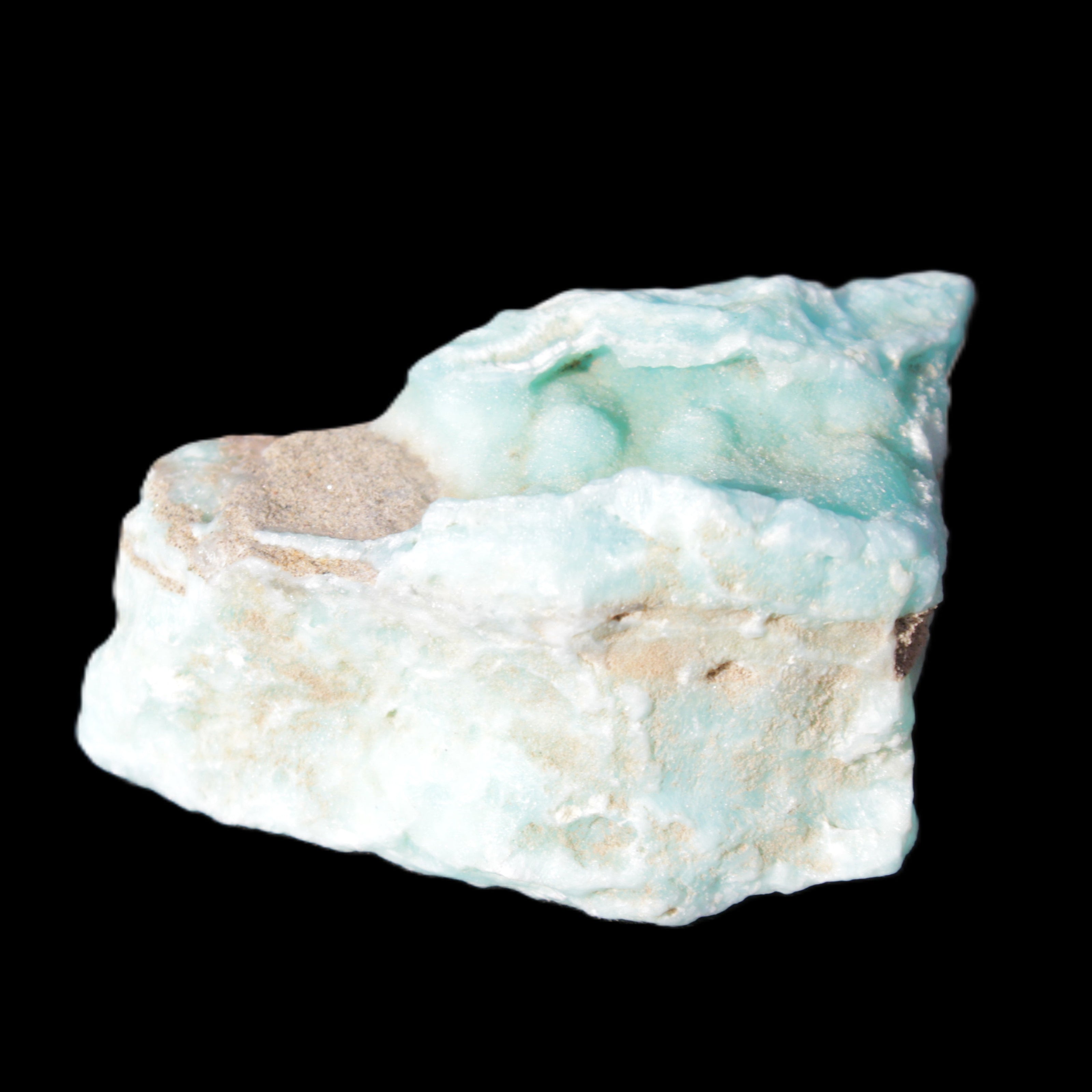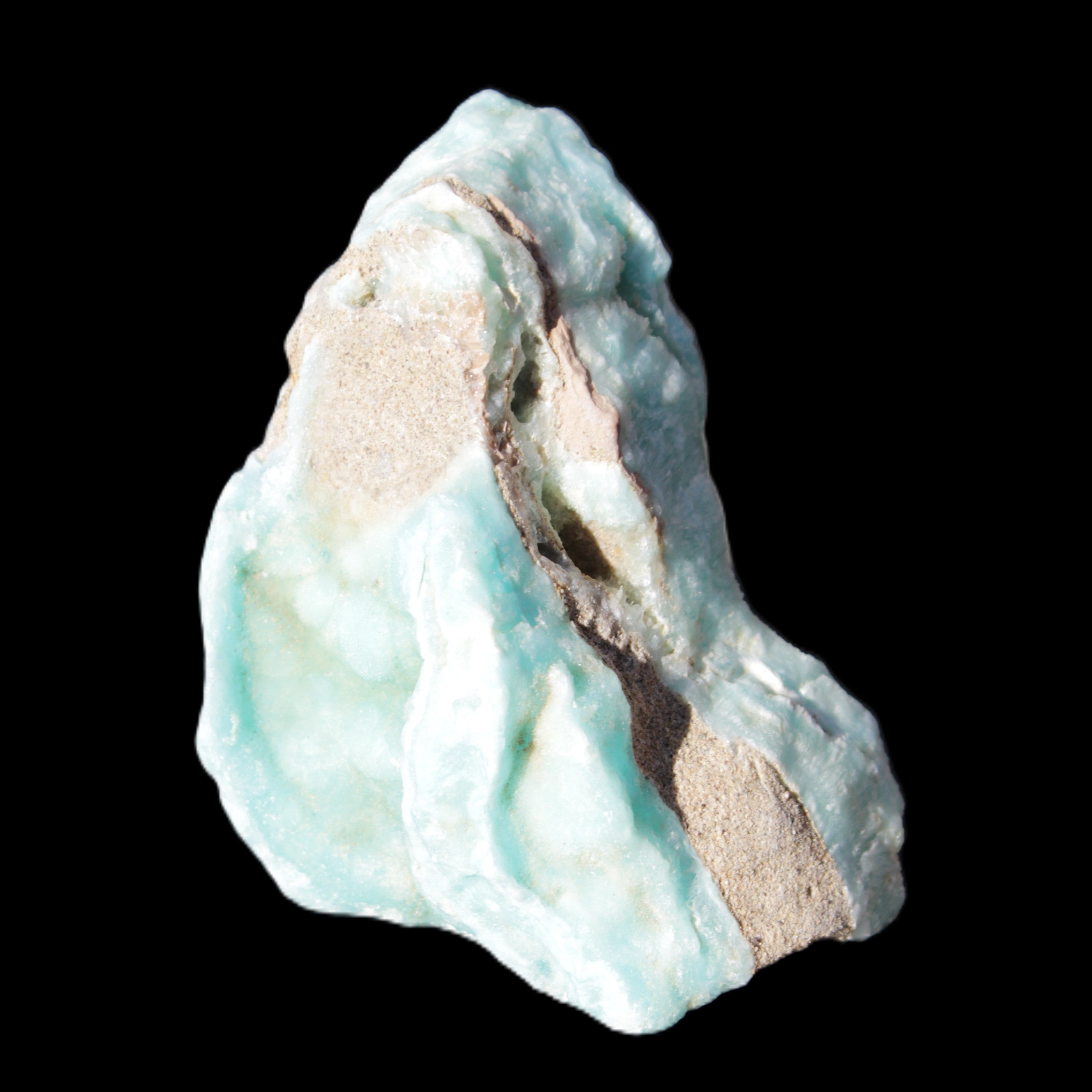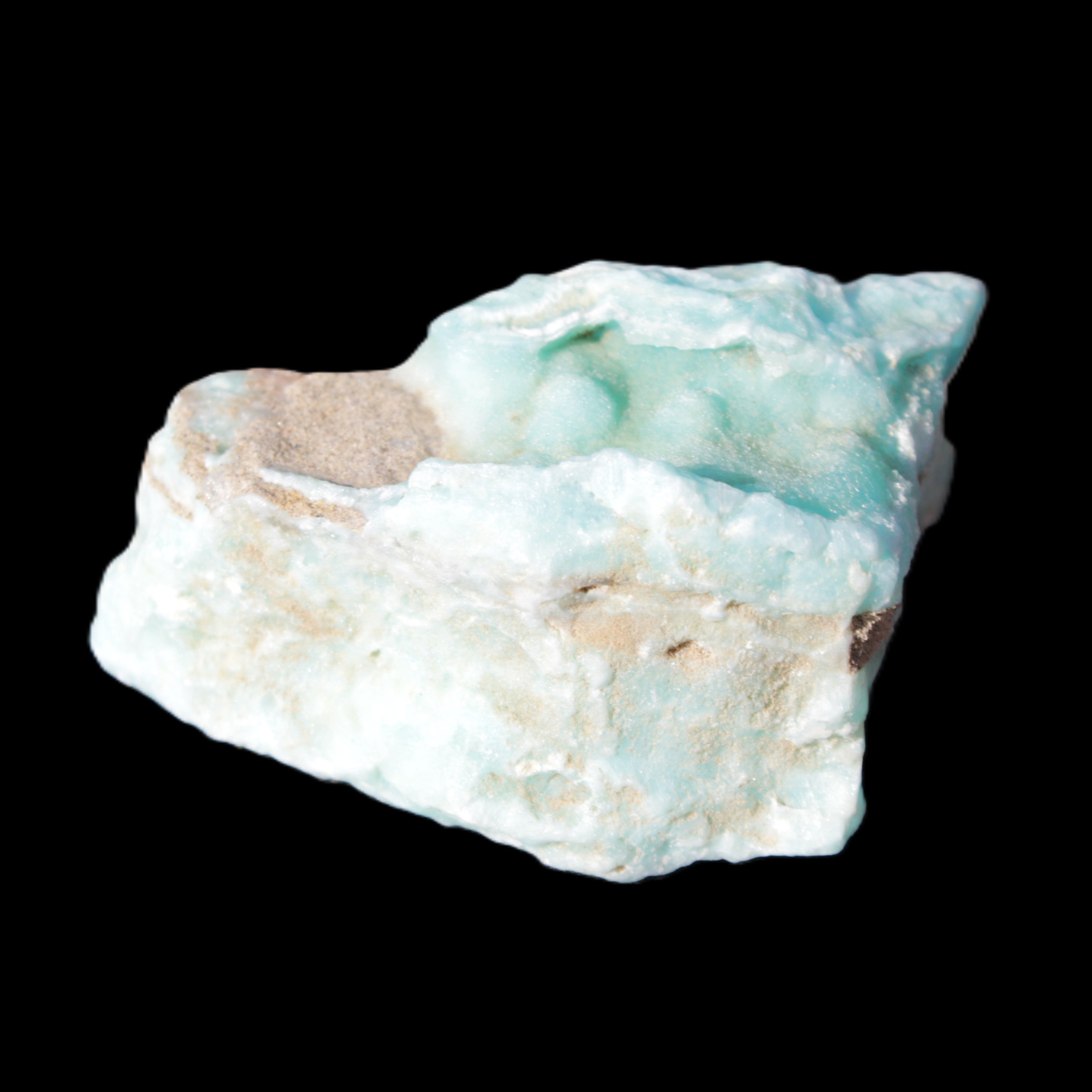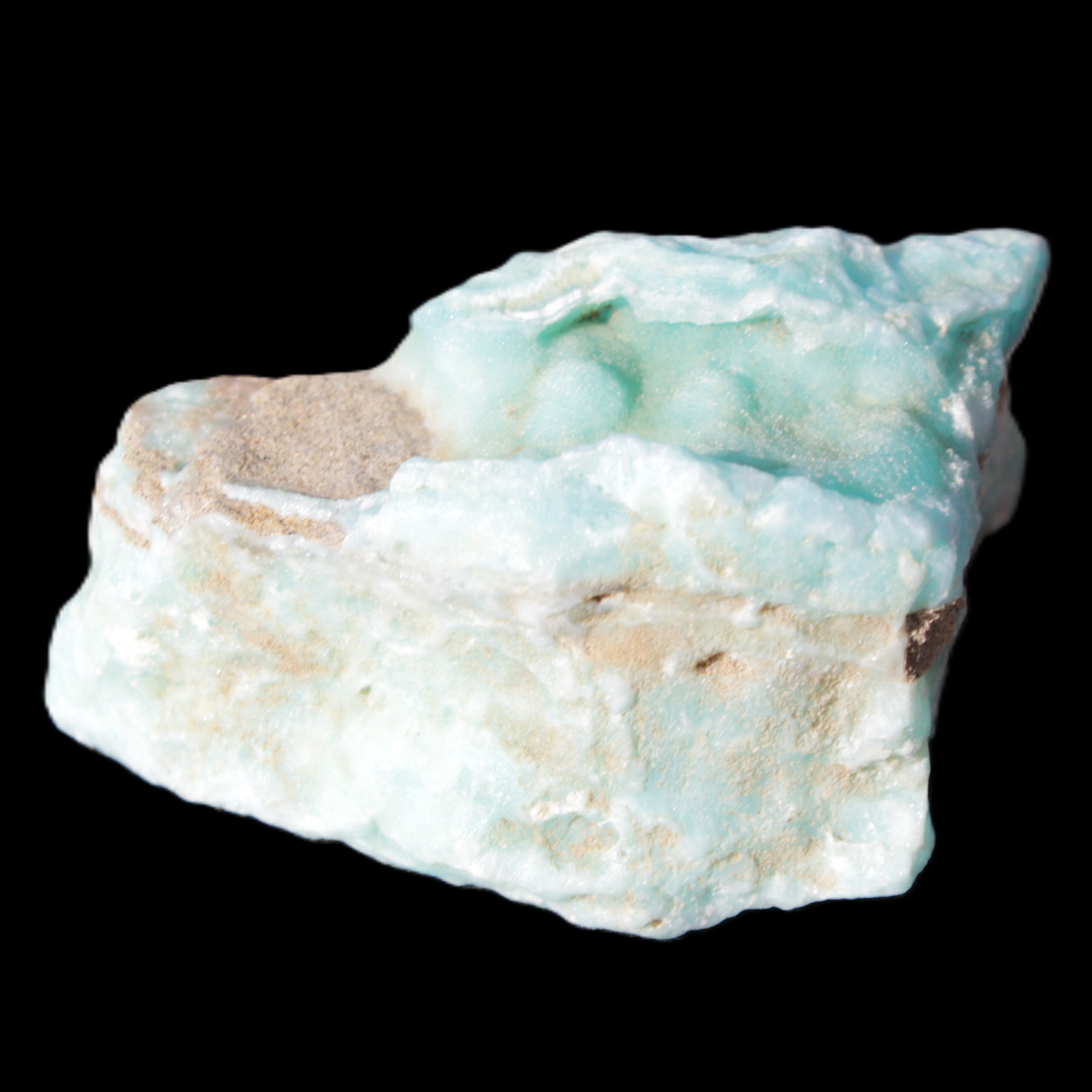 This amazing Blue Aragonite specimen 65*38*48mm weighs 141g. Blue Aragonite, also sometimes called Caribbean Calcite, is a form of Aragonite.