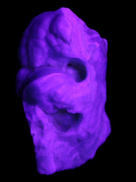 Aragonite is a calcium carbonate mineral, which forms in limestone caves and around hot springs. It has the same composition as Calcite, with a more compact structure. It is often recognised as a twinned pseudo-hexagonal prismatic crystal. Twinning results from interruptions during the growth of the crystal.