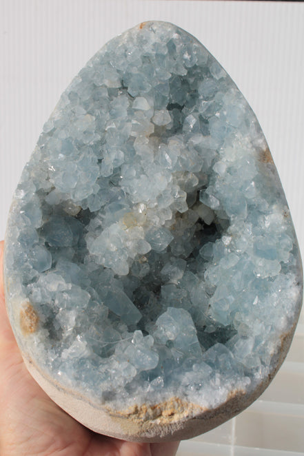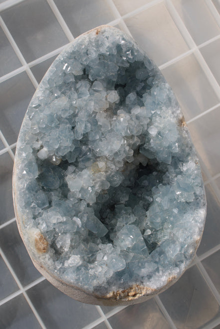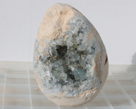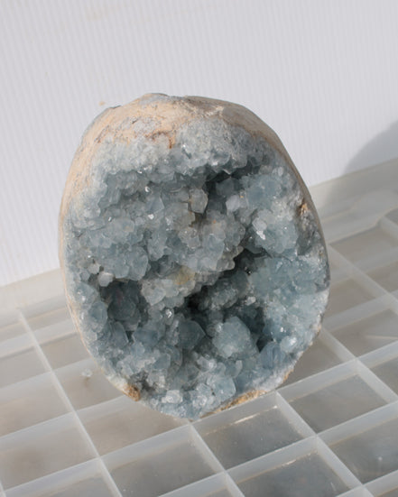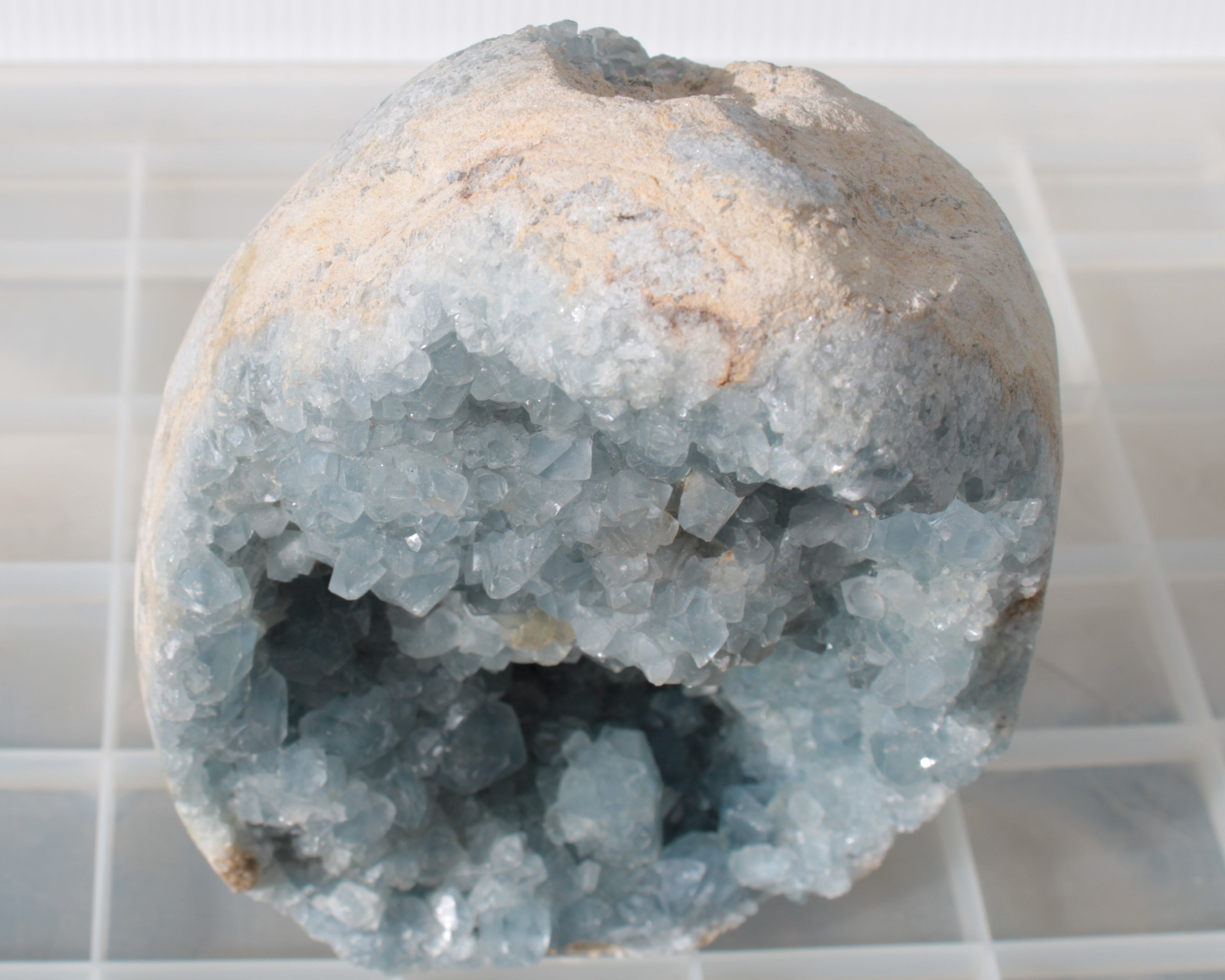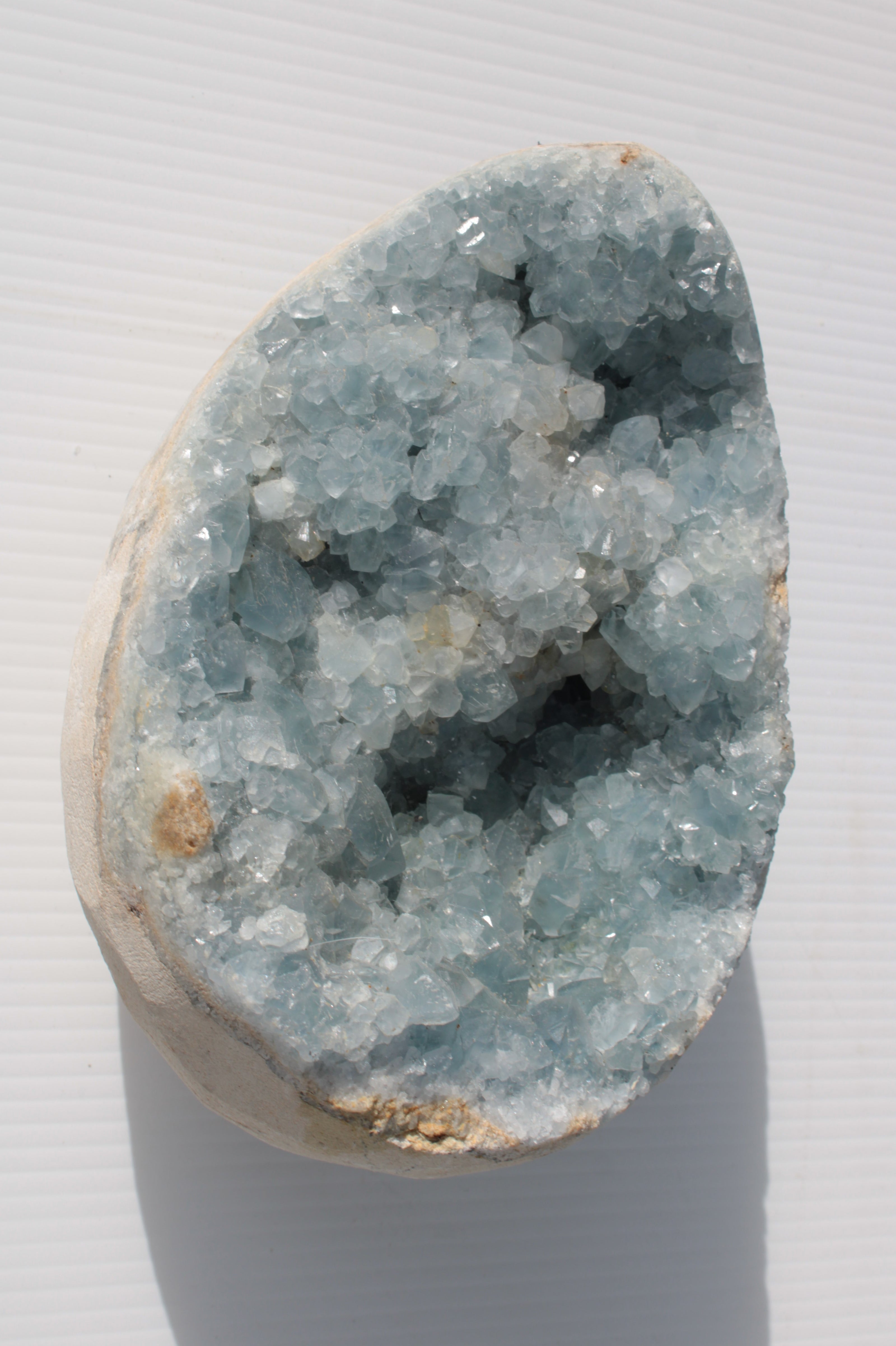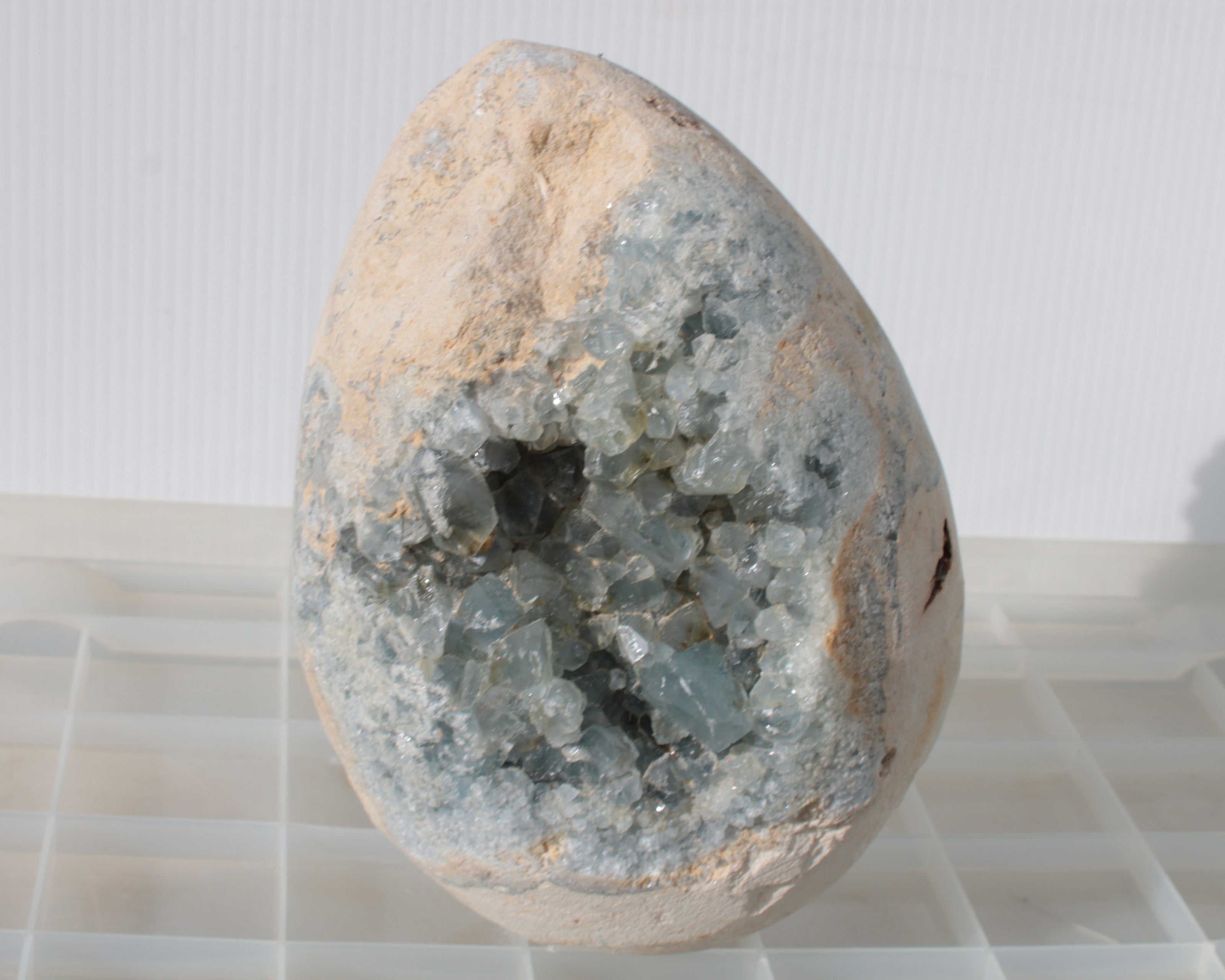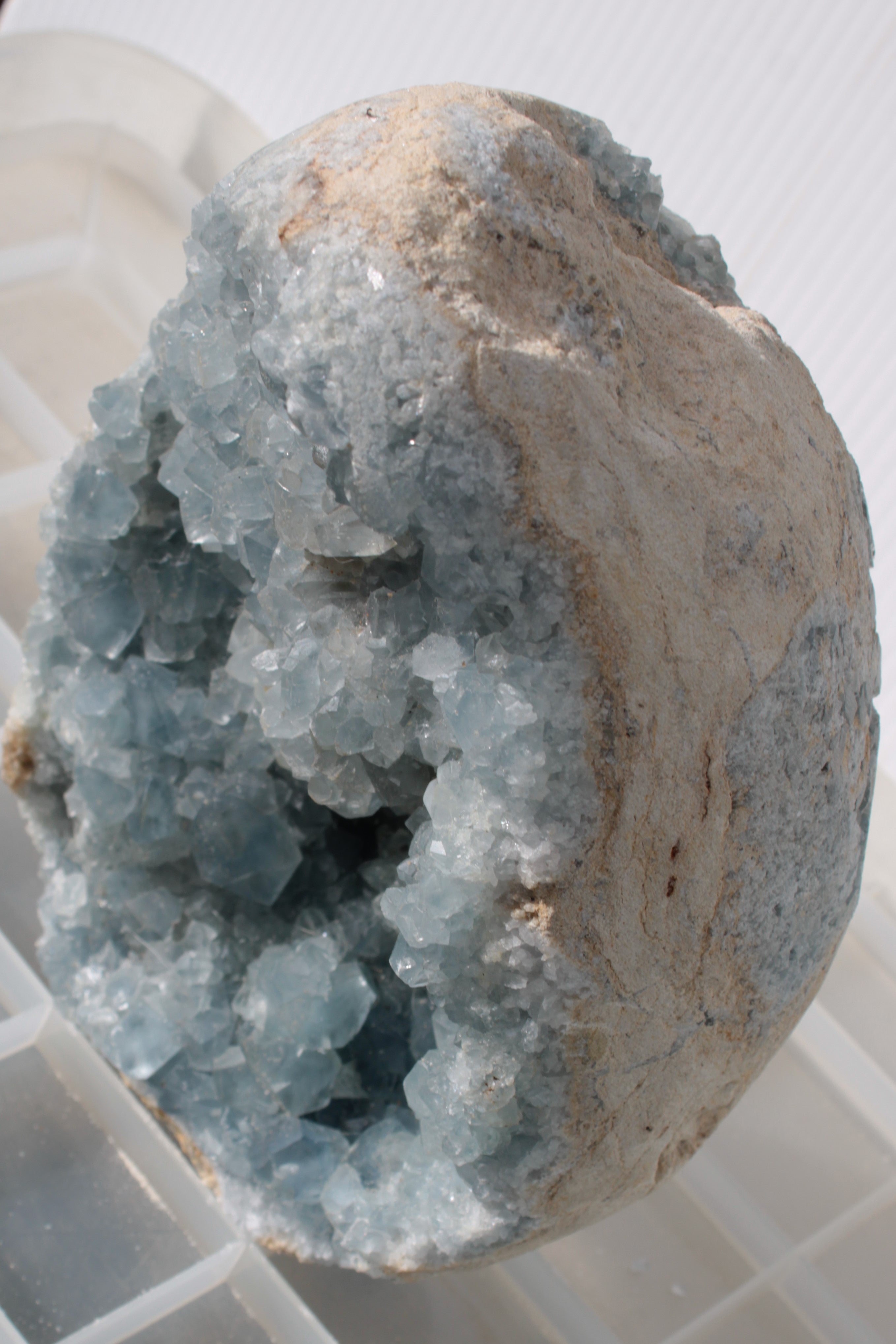 Blue Celestite geode 4990g in sunshine - Rocks and Things Store