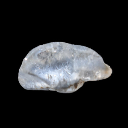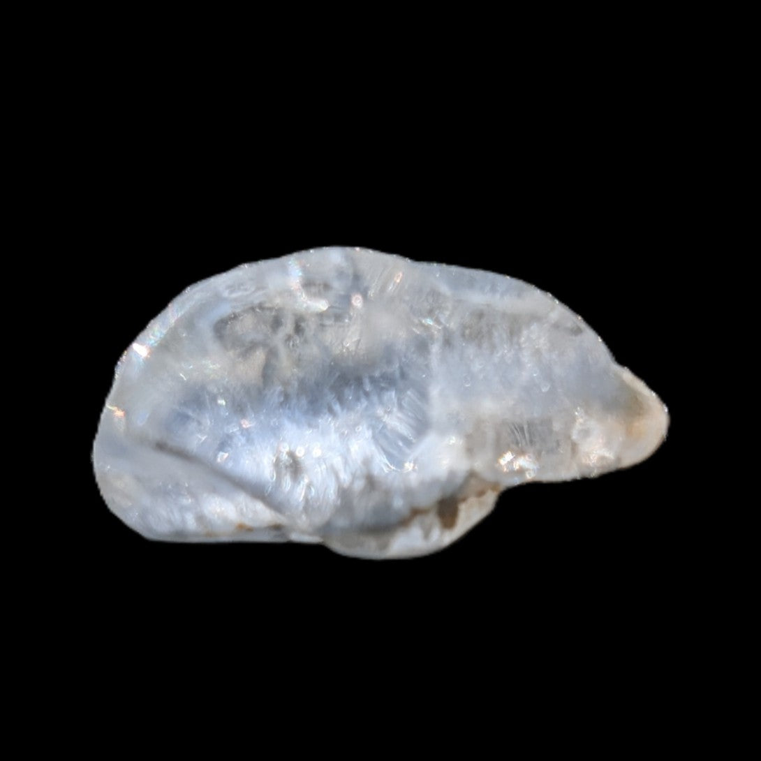 This tiny Blue Dumortierite in polished Quartz crystal weighs only 2.1ct. The fibrous Dumortierite is there, but hard to see in such a tiny crystal.