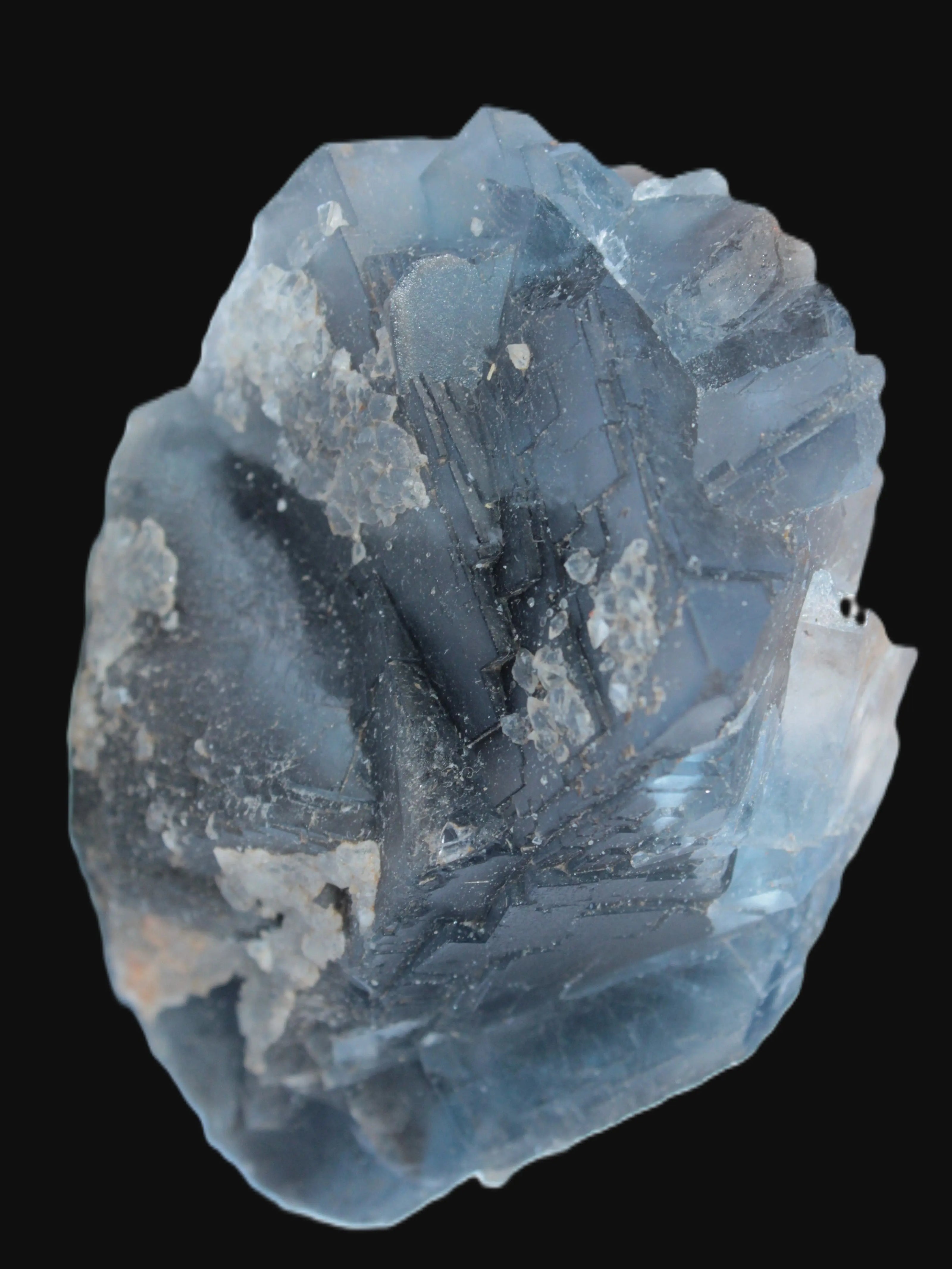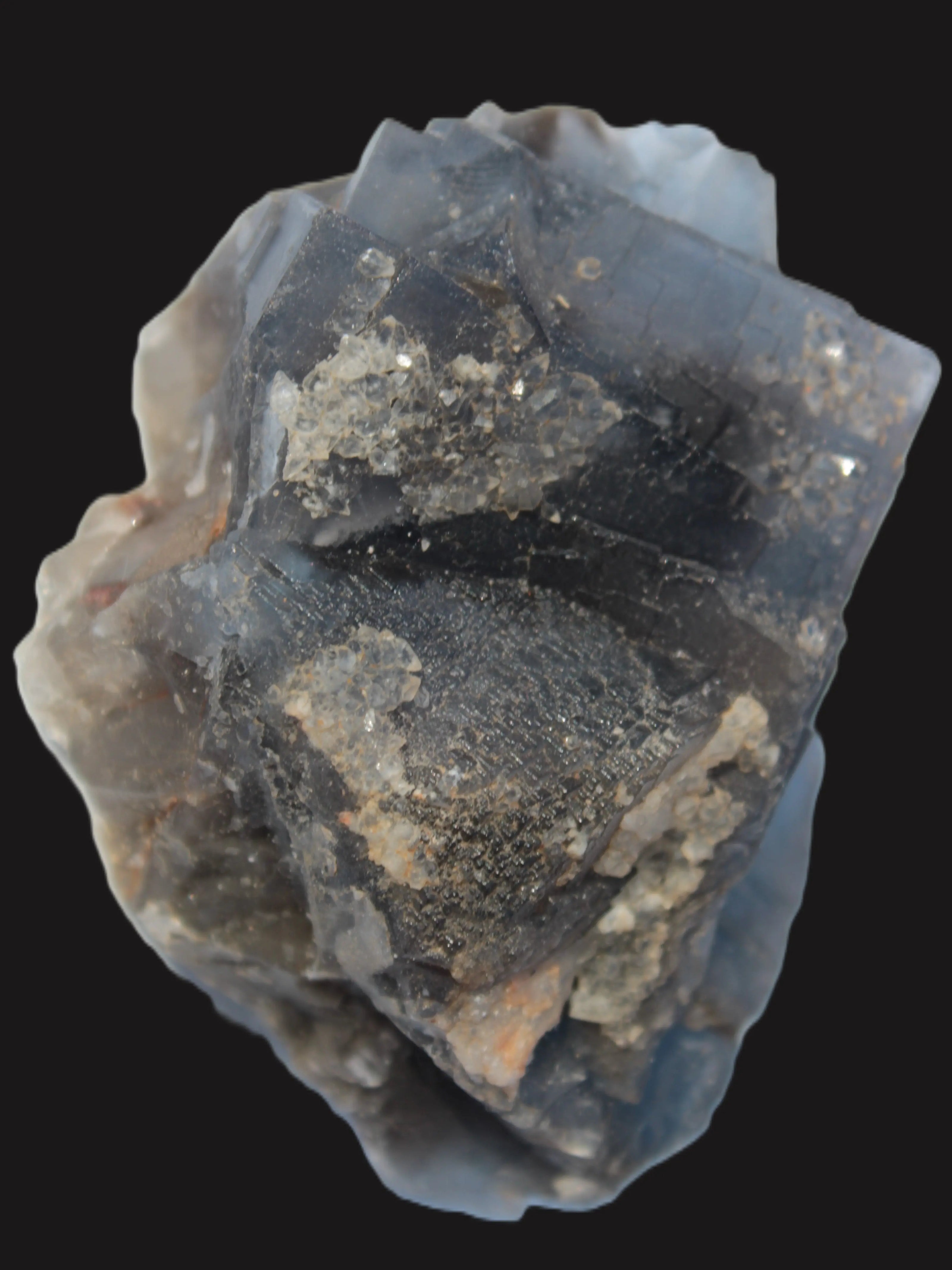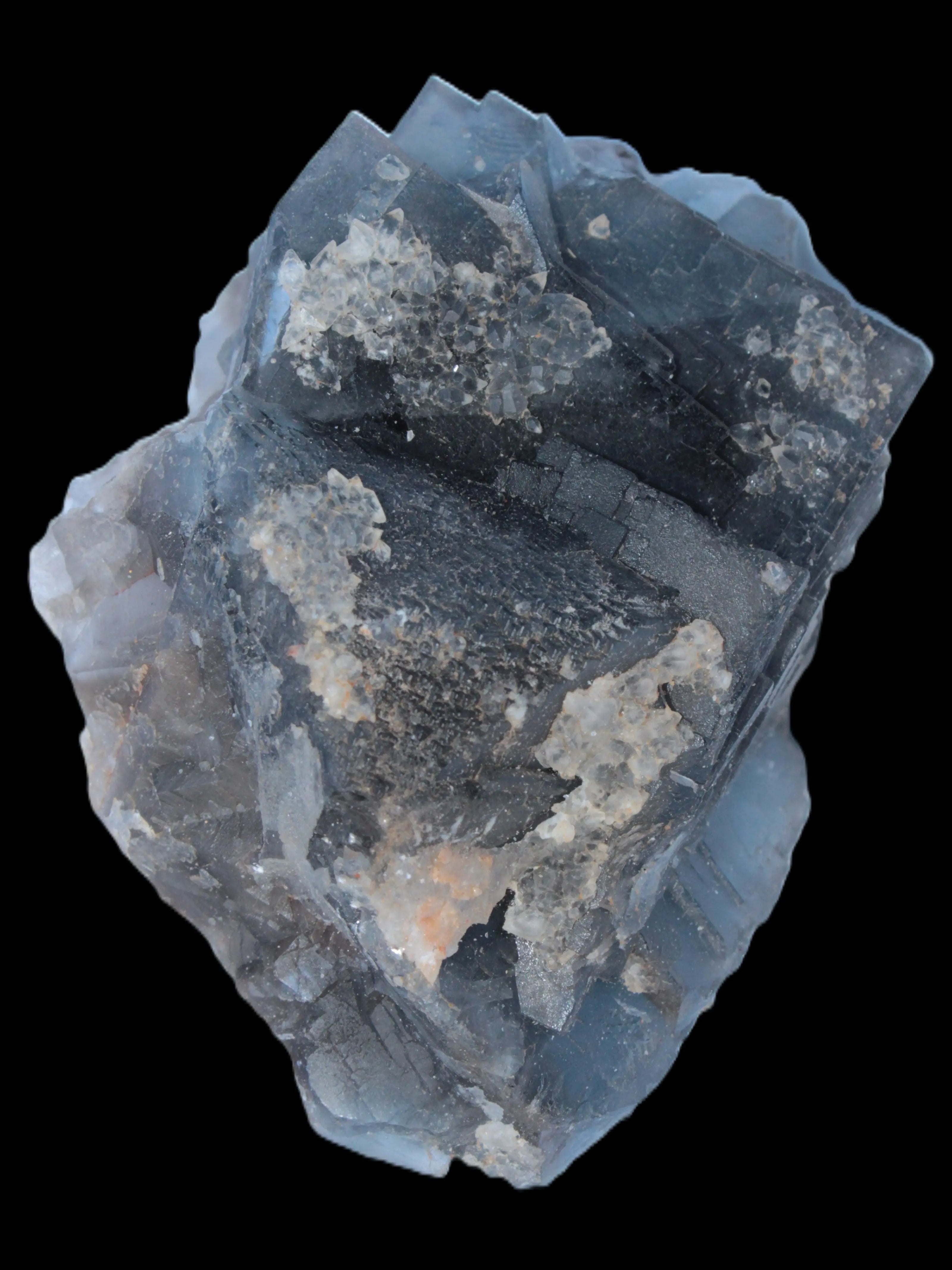 Blue Fluorite cubic cluster with Clear Calcite 168.8g