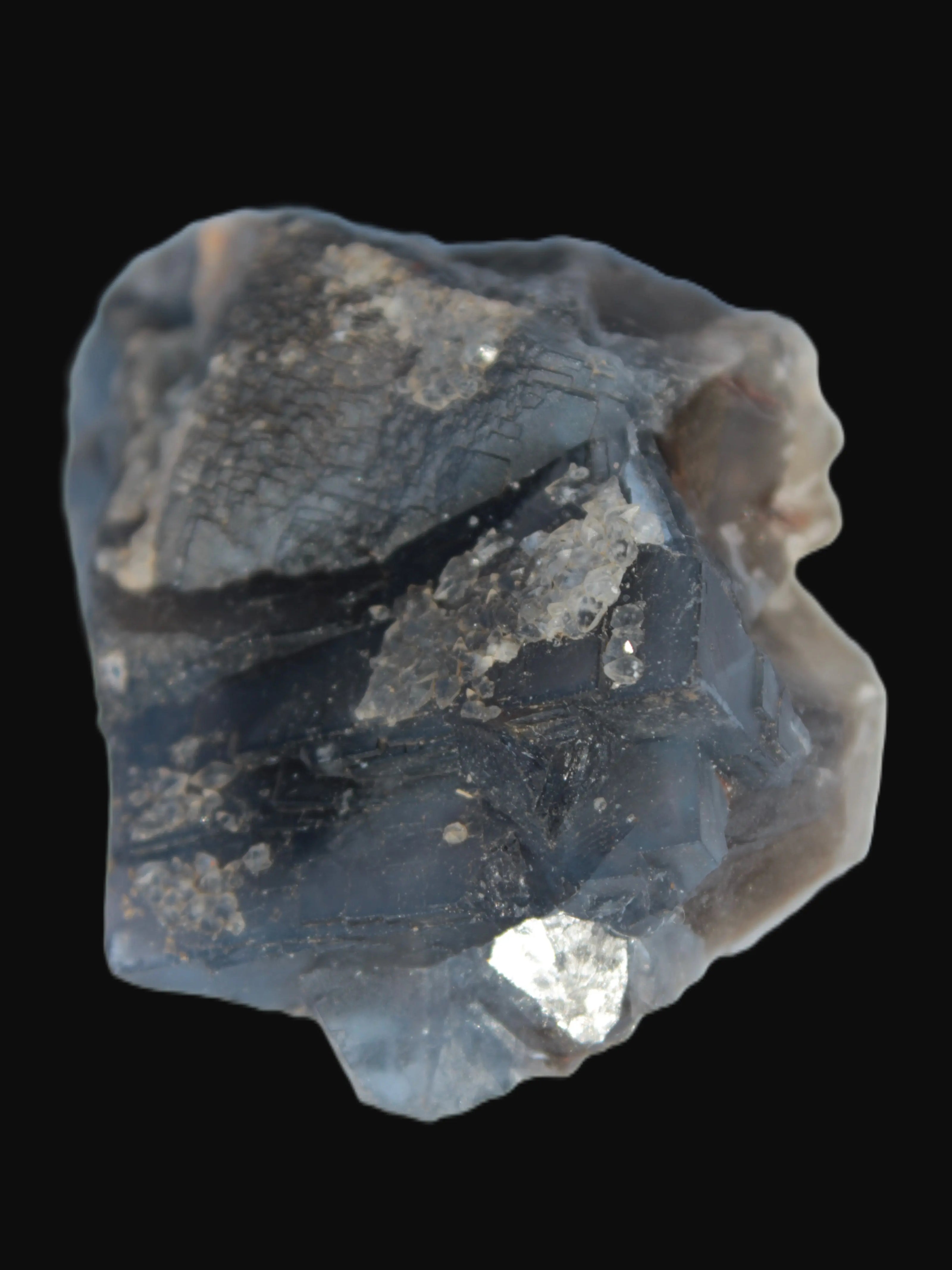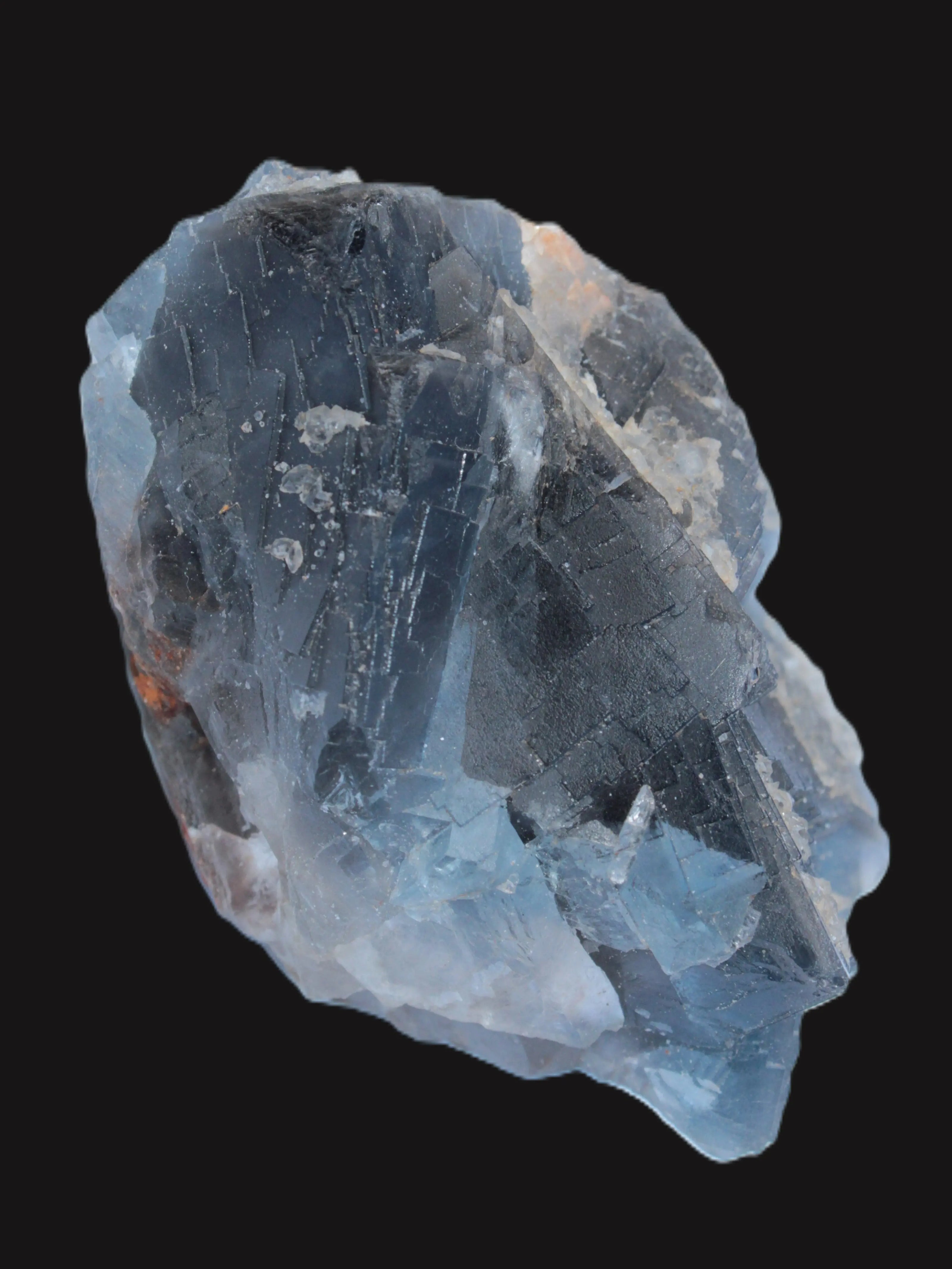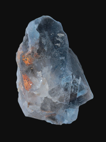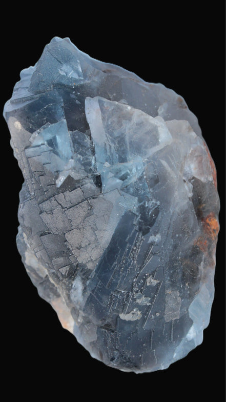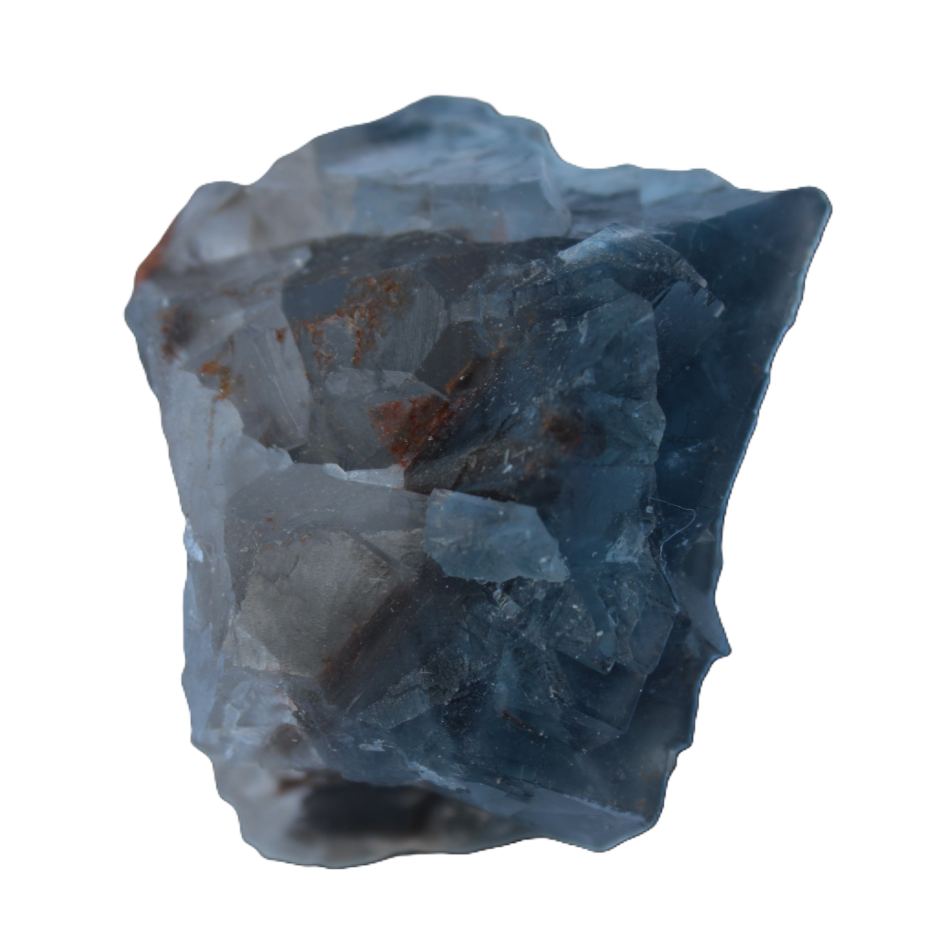This thick Blue Fluorite cubic cluster with Clear Calcite weighs 168.8g. It measures 54*68*44mm. This specimen was sourced locally in Pakistan for Rocks and Things Store.